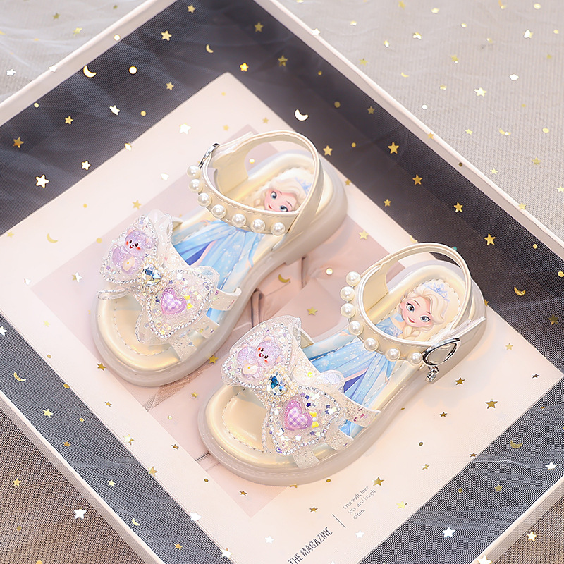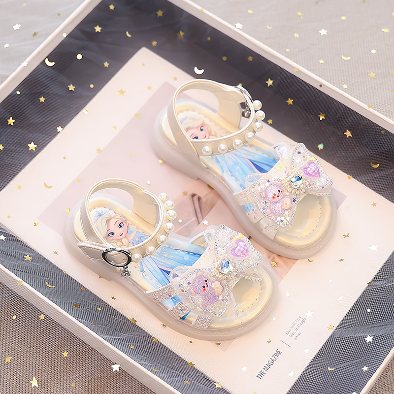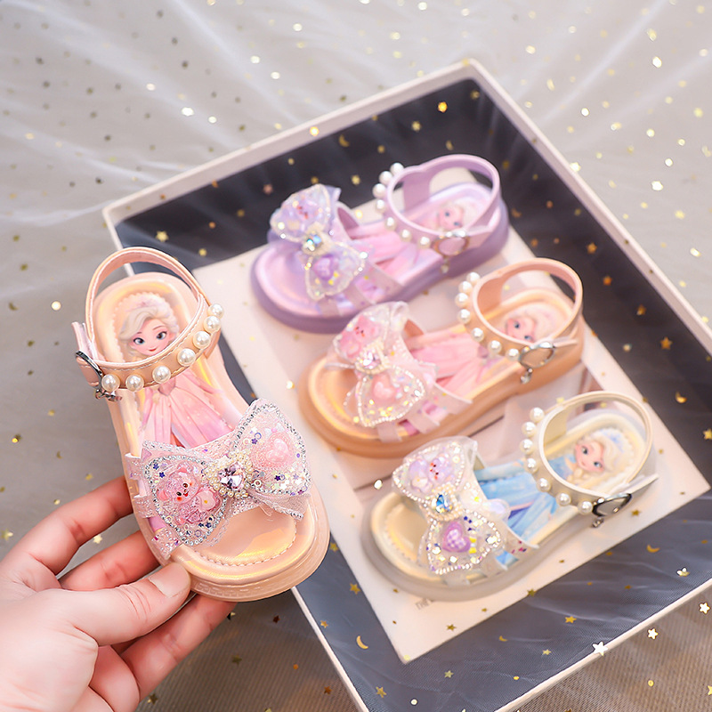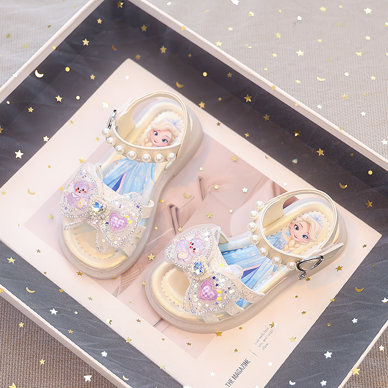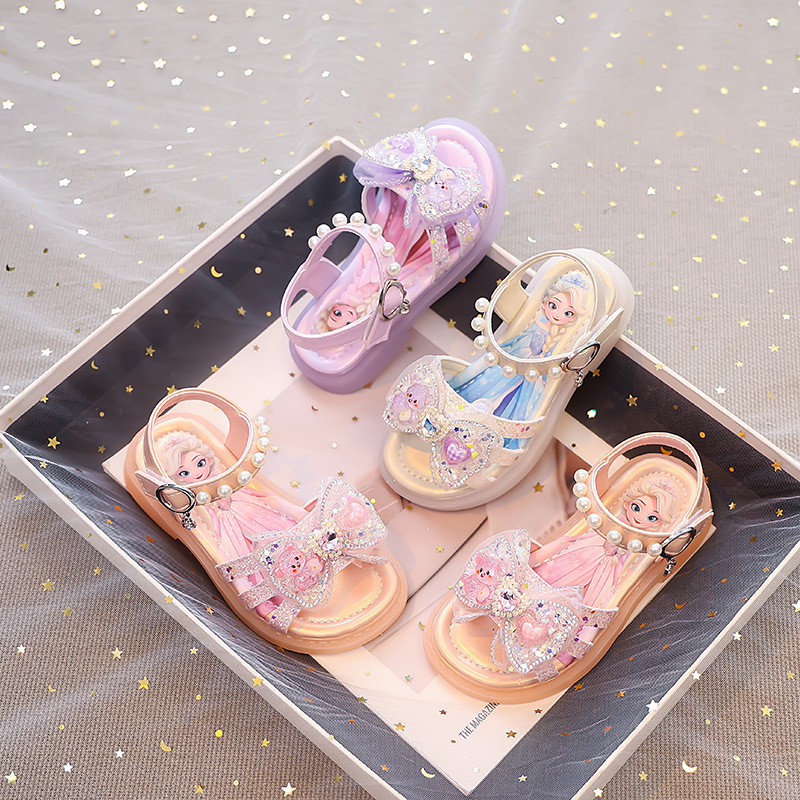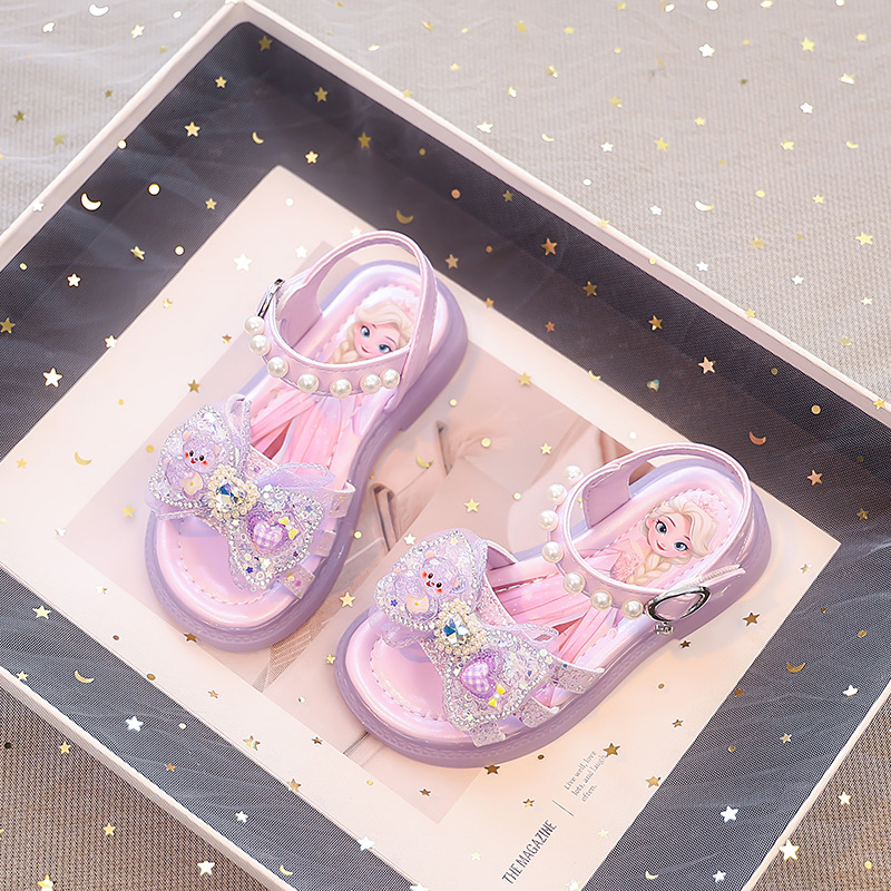 여자 샌들 새로운 만화 소녀 크리스탈 샌들 부드러운 단독 어린이 신발 3-8 년 된 해변 신발 귀여운 공주 신발스토어 가기