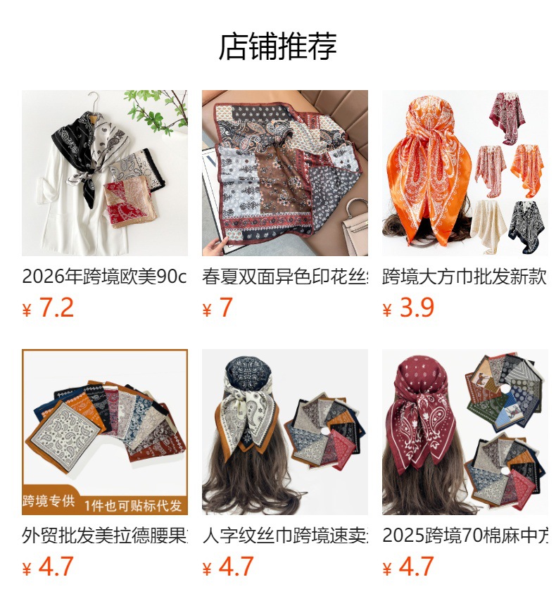 빨간 캐슈 꽃 스카프 70 모방 실크 작은 광장 스카프 여성 복고풍 예술 여름 스카프 목 스카프 도매스토어 가기