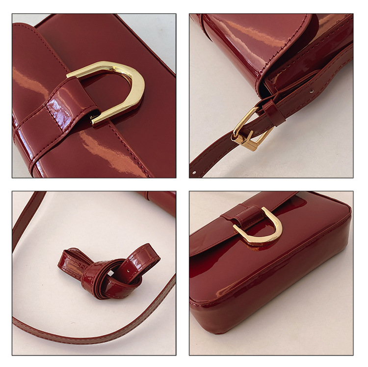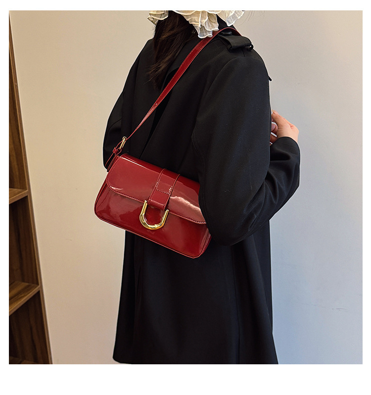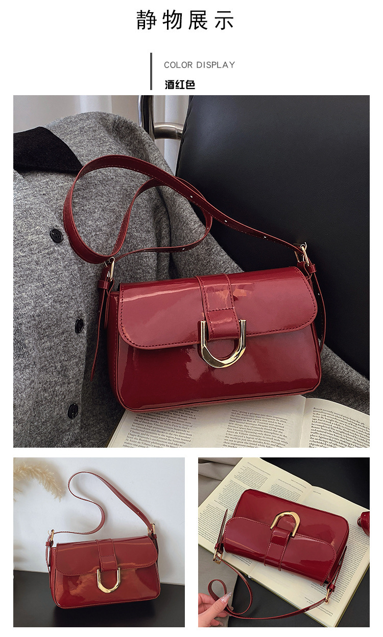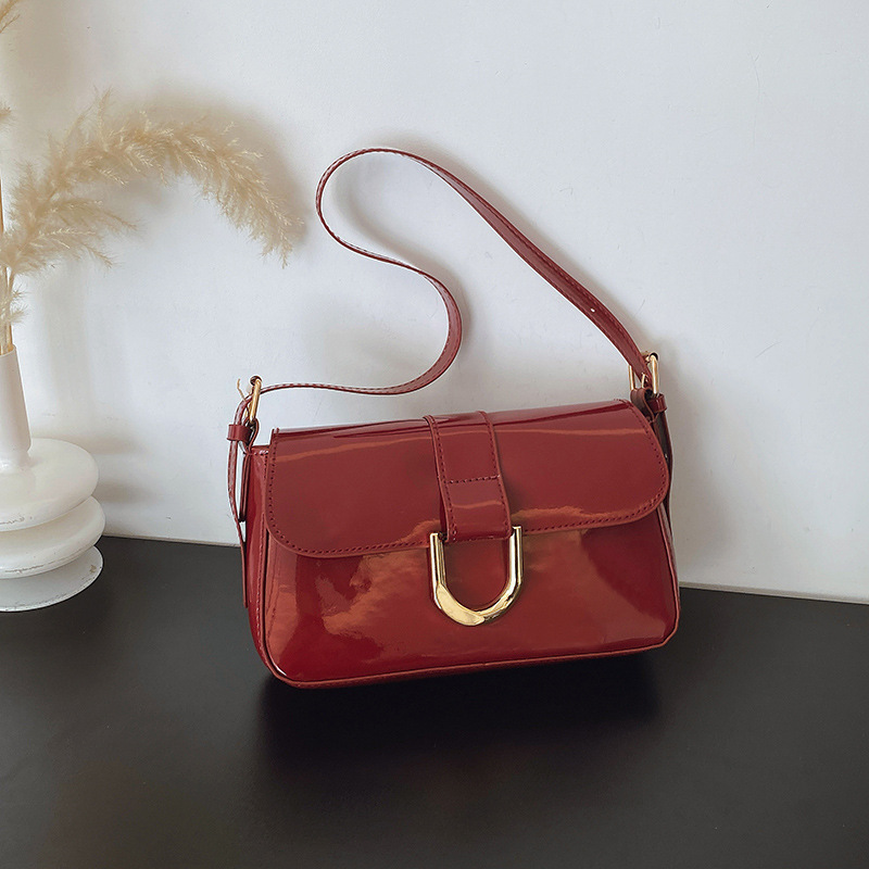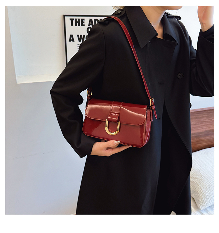 2025 한국식 하이 엔드 가방 여성 레트로 버건디 말굽 버클 유행 휴대용 언더암 가방 숄더 크로스 바디 백스토어 가기