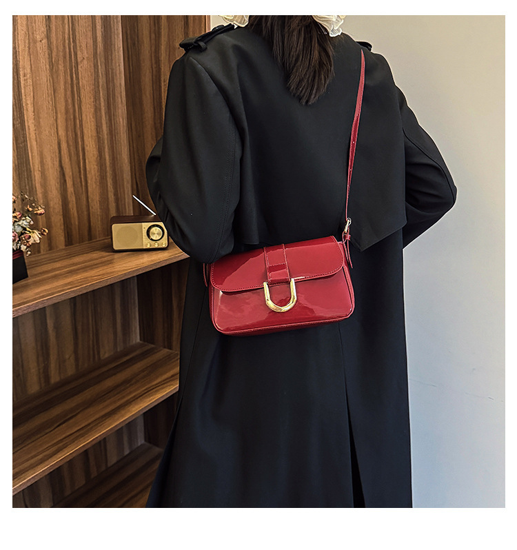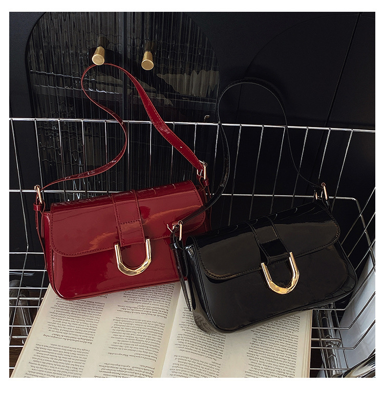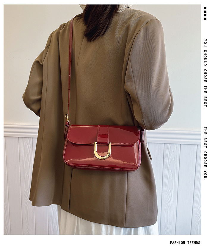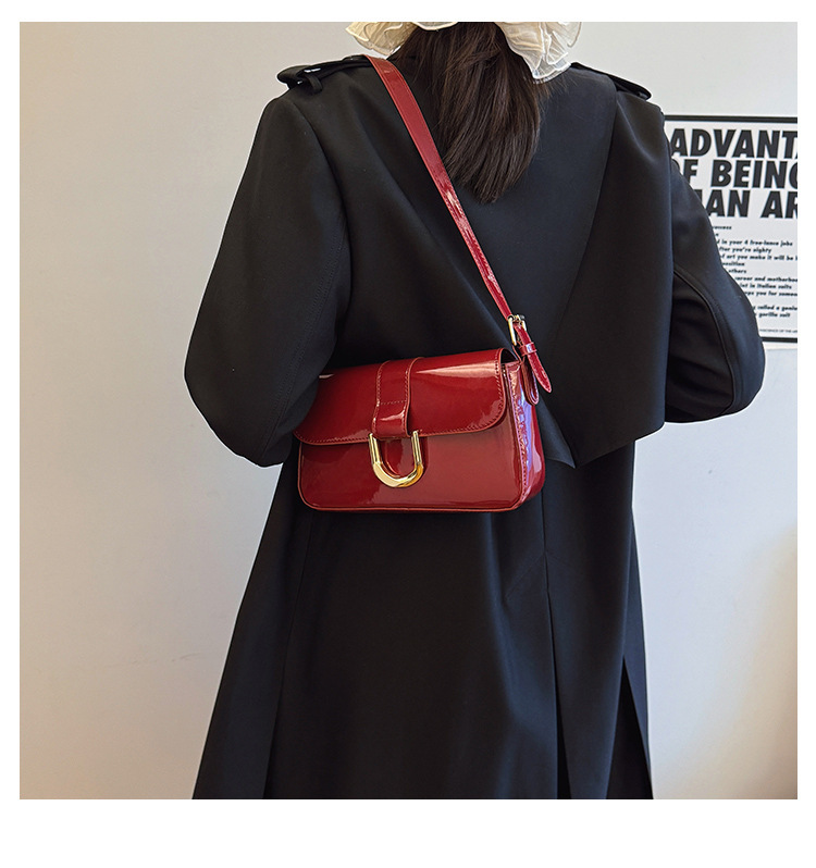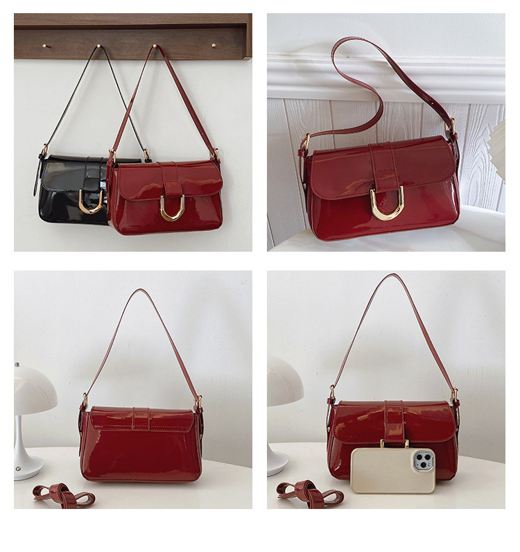 2025 한국식 하이 엔드 가방 여성 레트로 버건디 말굽 버클 유행 휴대용 언더암 가방 숄더 크로스 바디 백스토어 가기