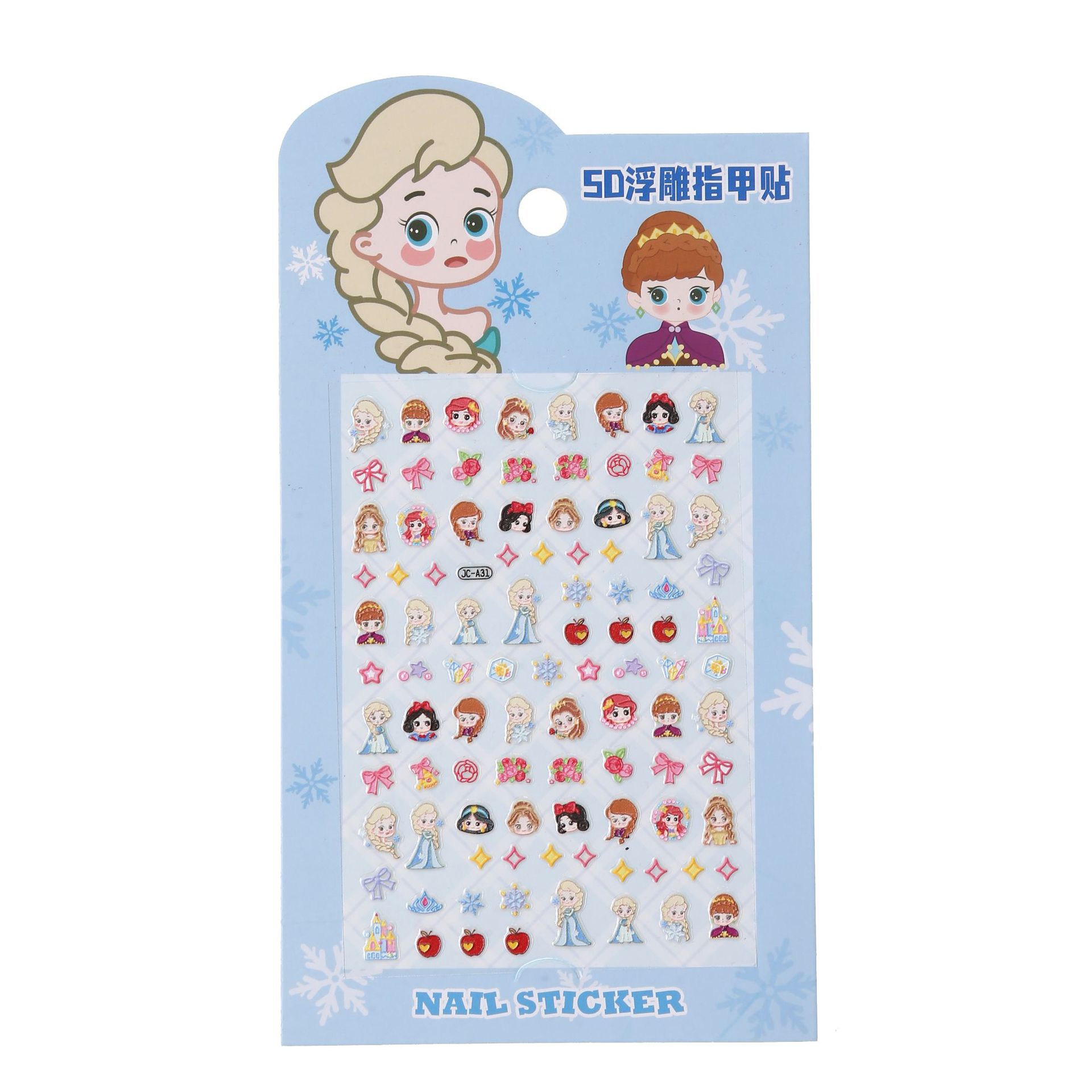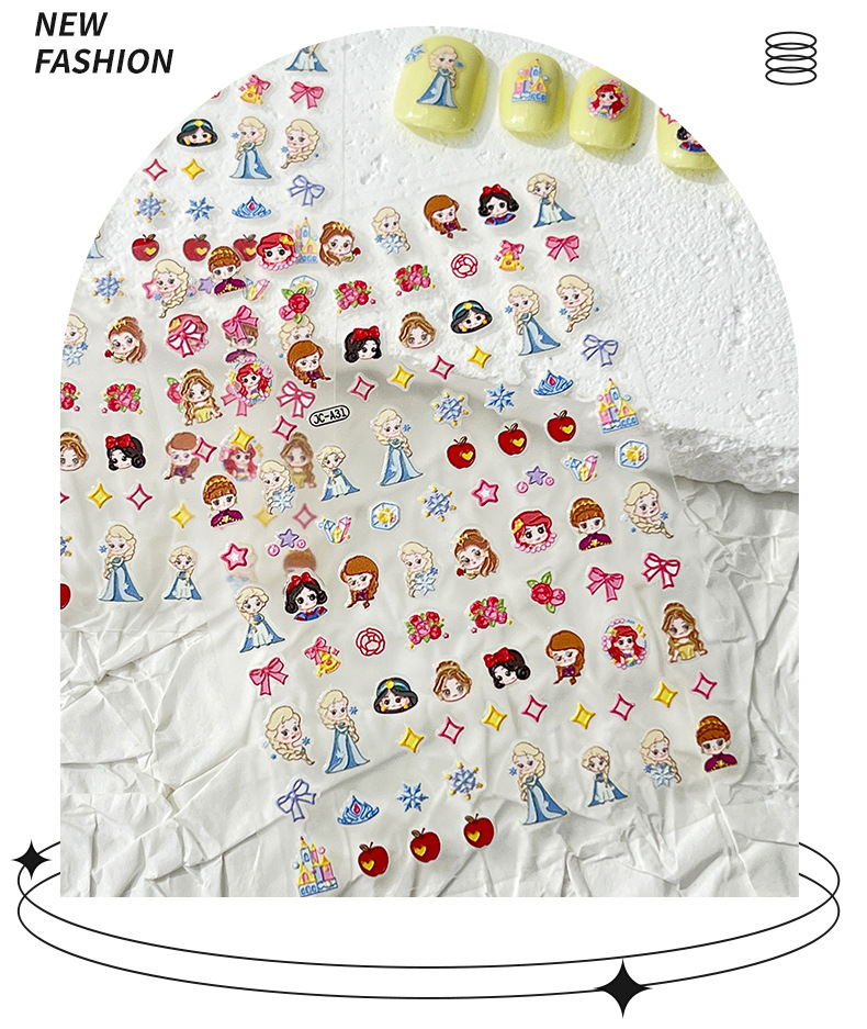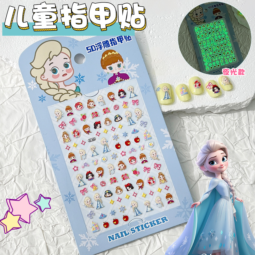 5D 빛나는 귀여운 얼음과 눈 공주 네일 아트 스티커 어린이 만화 양각 3 차원 diy 카메라 네일 스티커 액세서리스토어 가기