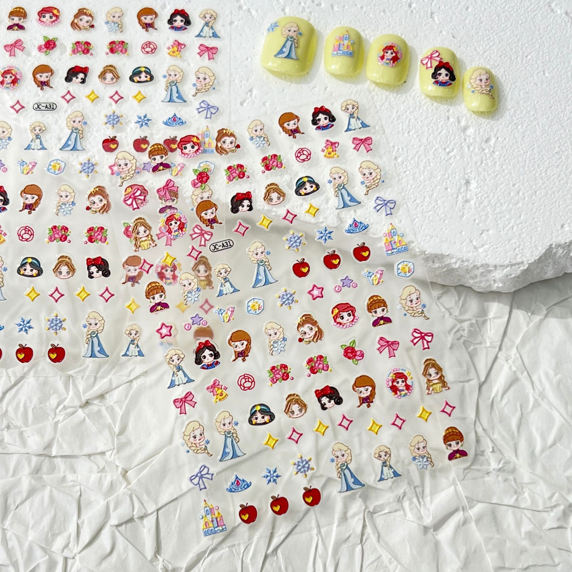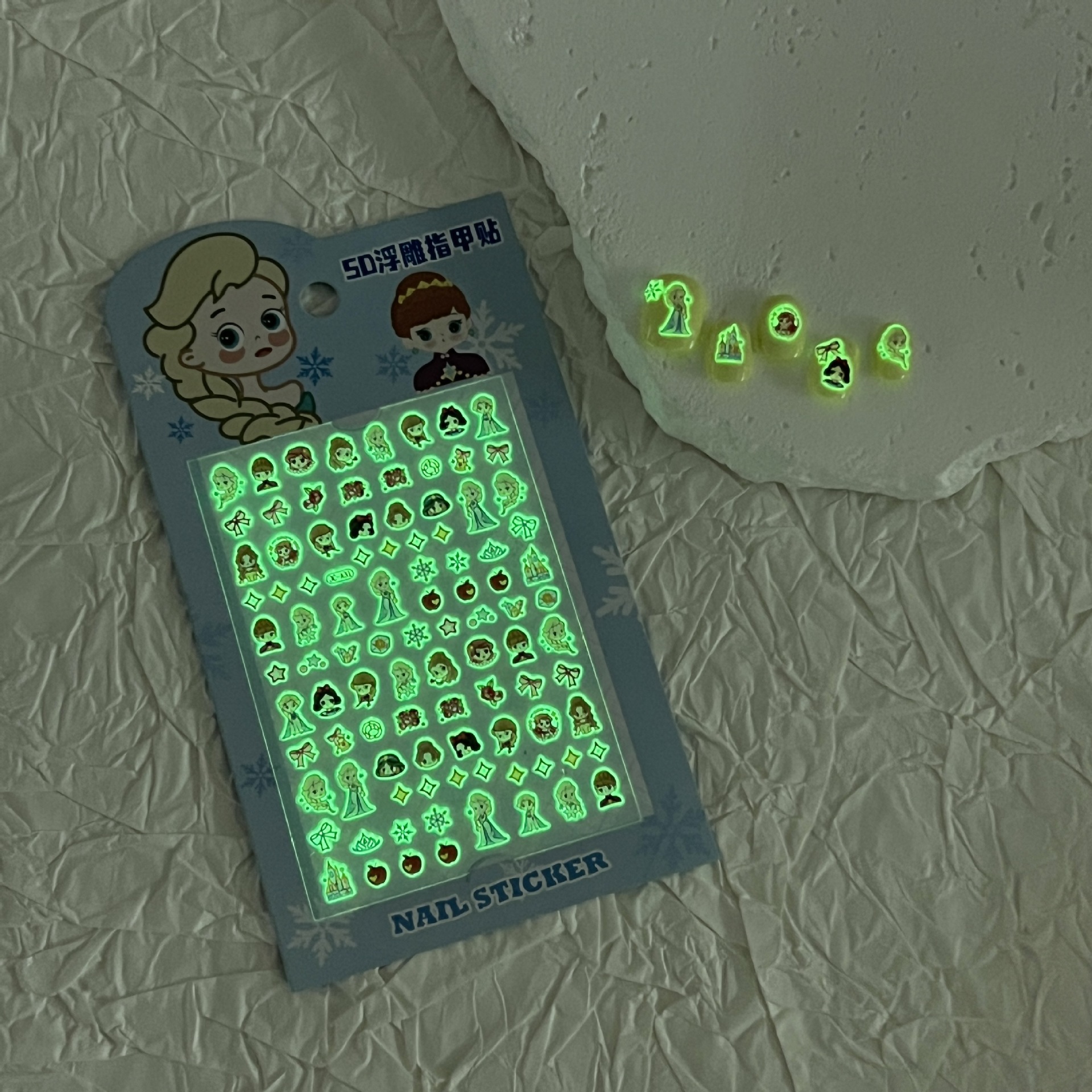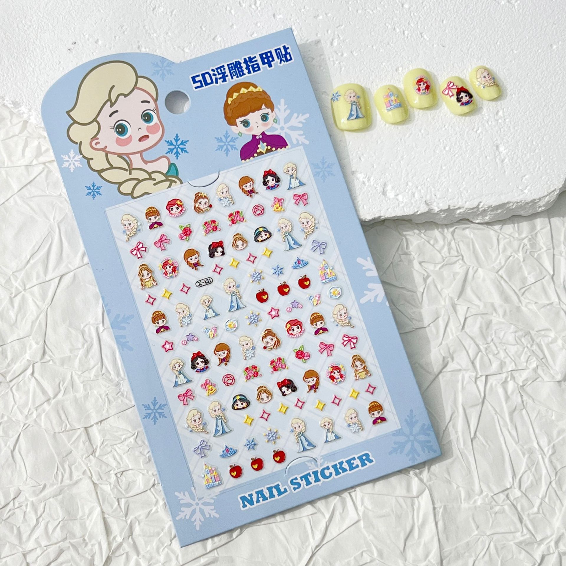 5D 빛나는 귀여운 얼음과 눈 공주 네일 아트 스티커 어린이 만화 양각 3 차원 diy 카메라 네일 스티커 액세서리스토어 가기
