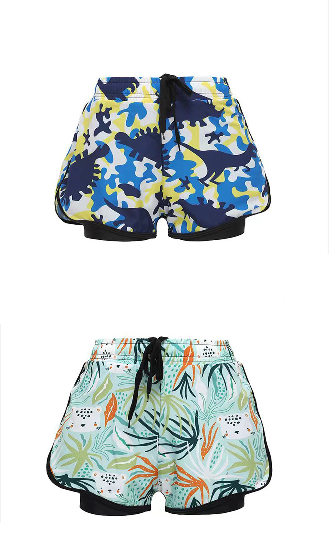 2025 어린이 수영 트렁크, 남성용 및 소년용, 어색함 방지 더블 레이어 수영 트렁크, 여름 만화 해변 수영 트렁크, 수평 각도 풀 세트