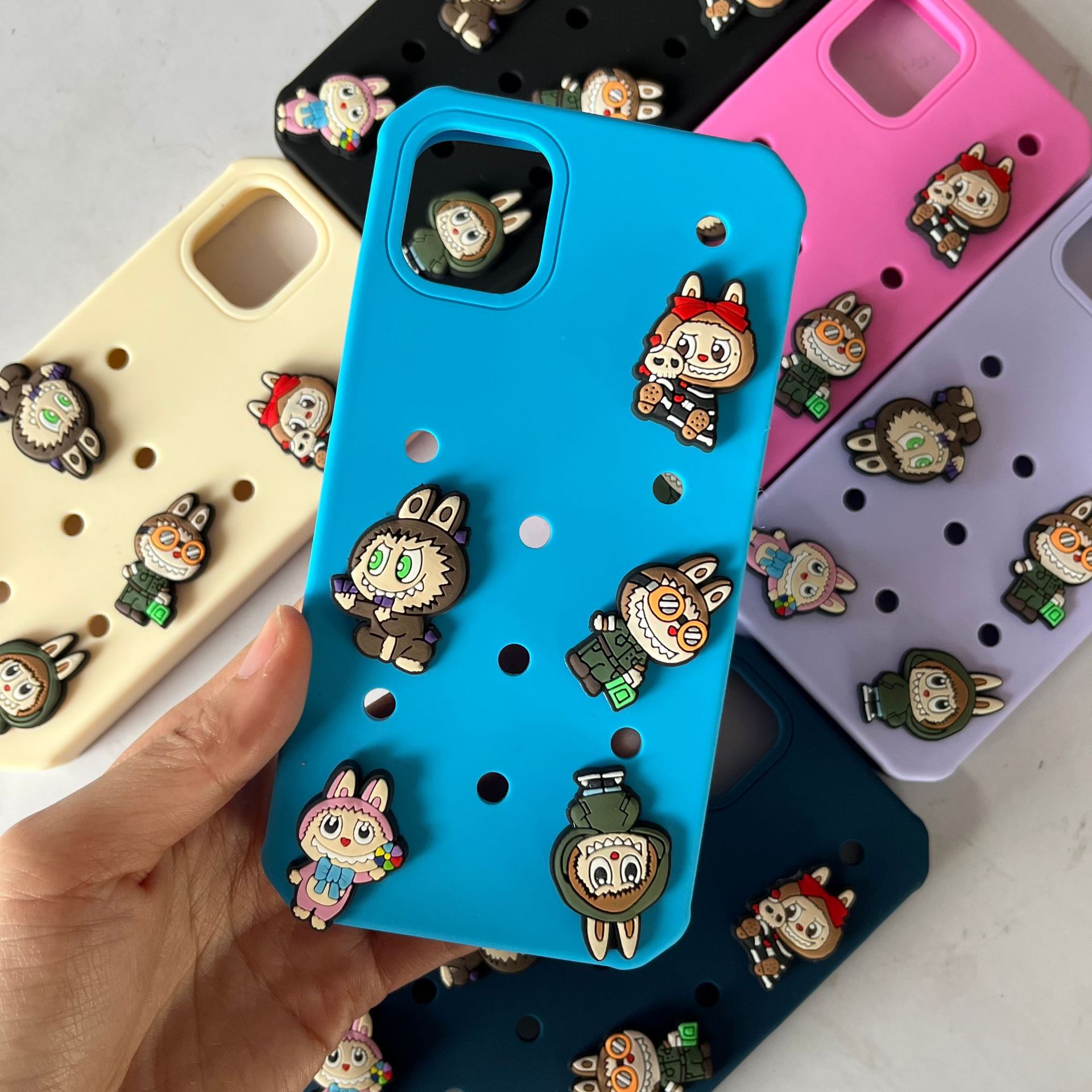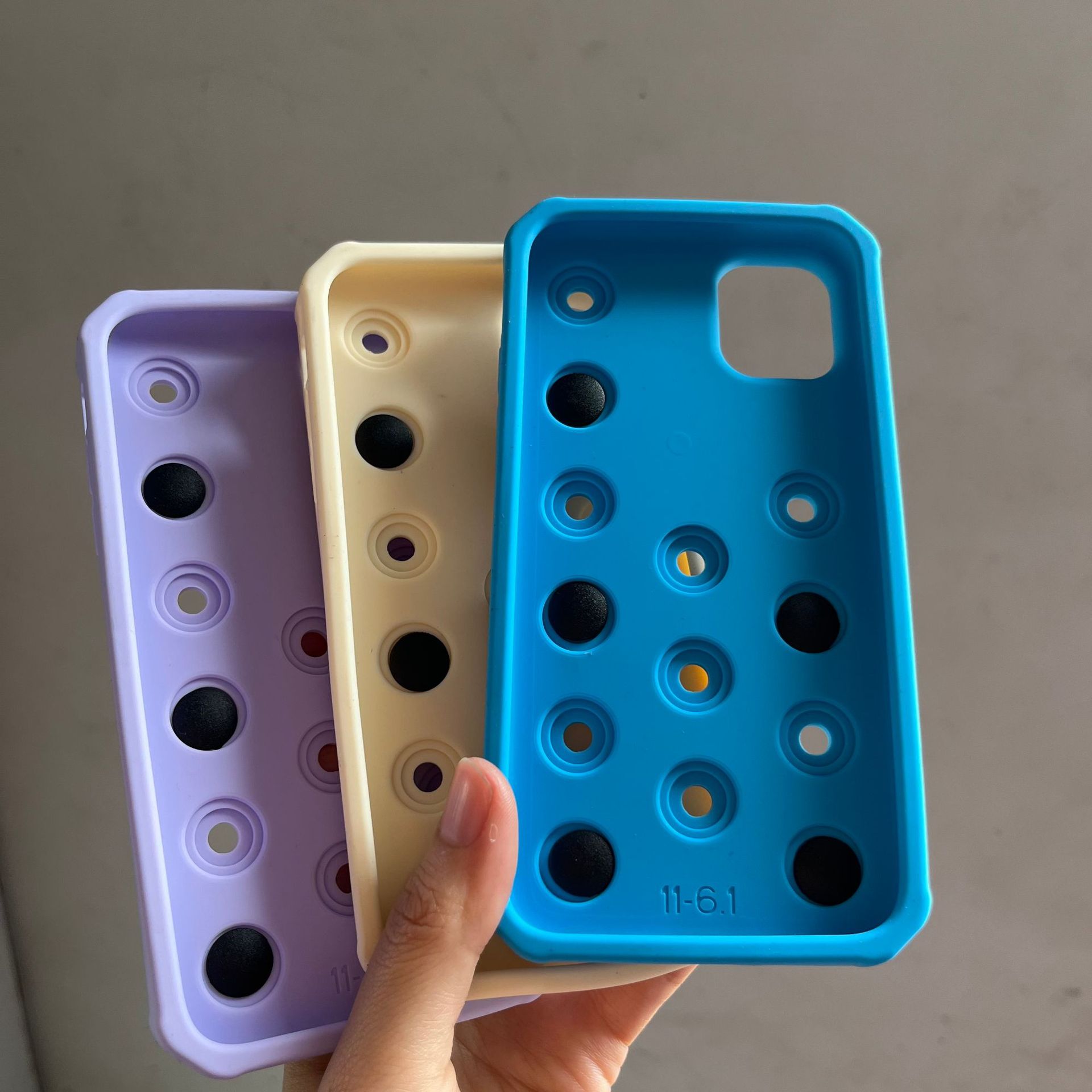 애플 아이폰 11 16 플러스 구멍 DIY 신발 버클 패턴 실리콘 전화 케이스에 대한 대외 무역 국경 핫 세일
