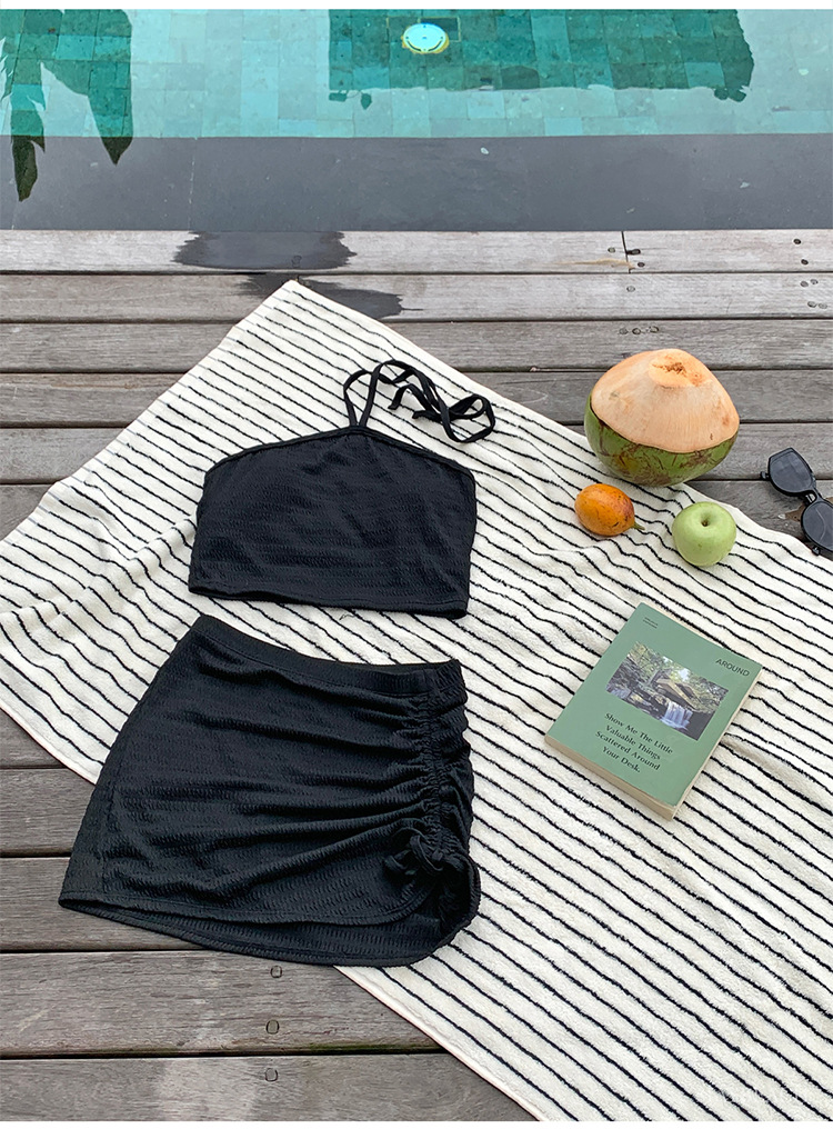 2025년 신형 수영복, 여성용 고급 스플릿 트라이앵글 스카프 홀터넥 비키니, 순수한 욕망 스타일, 온천 휴가