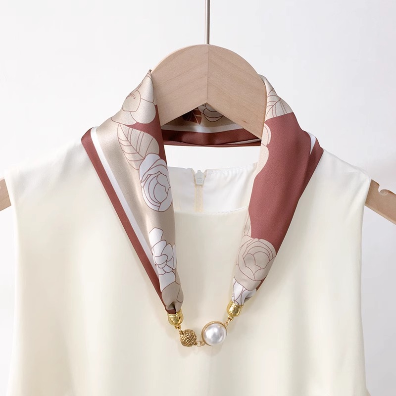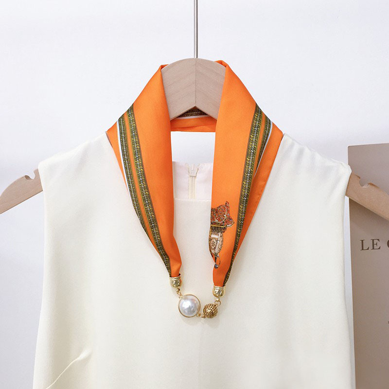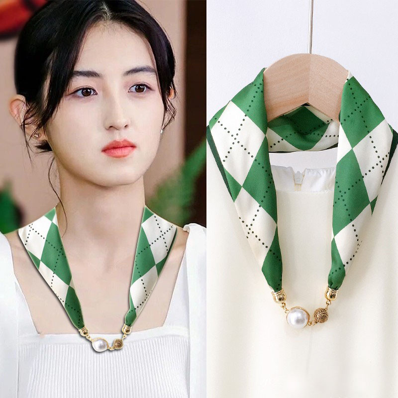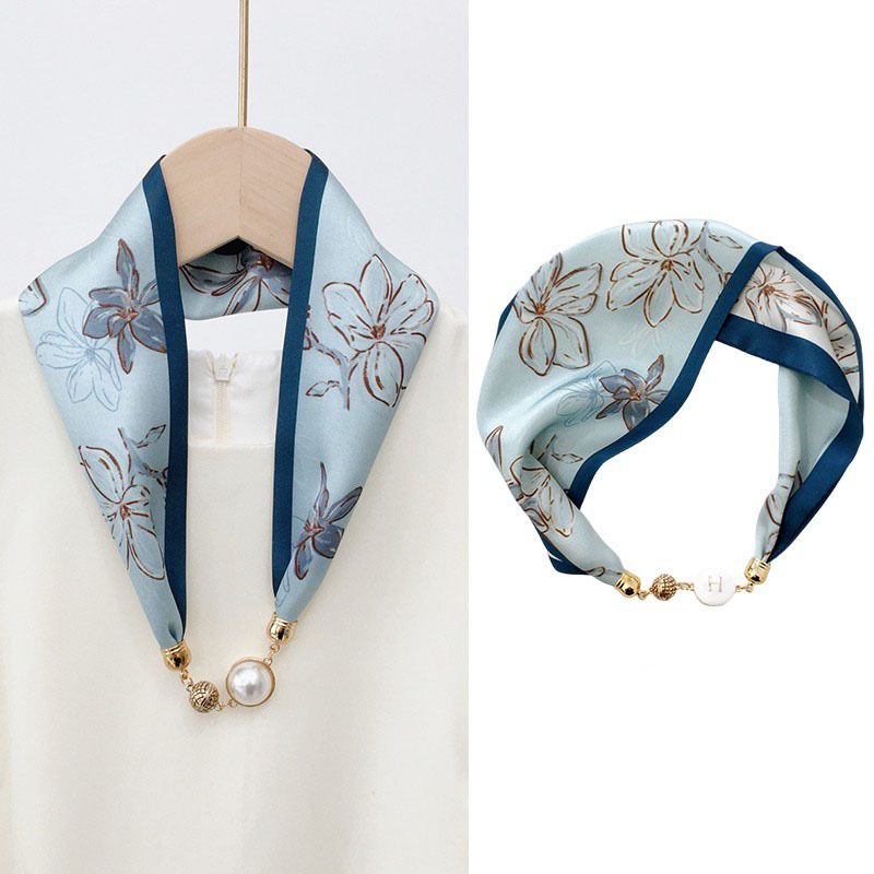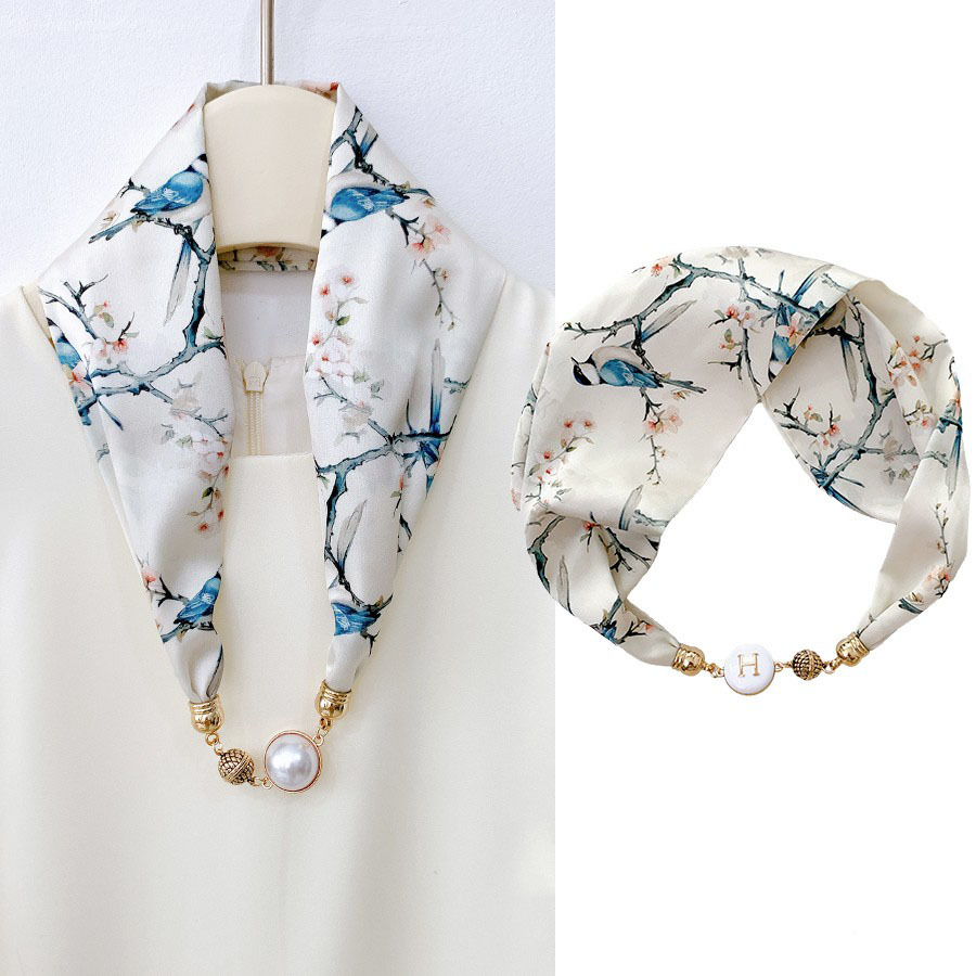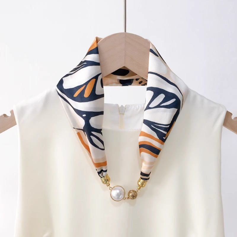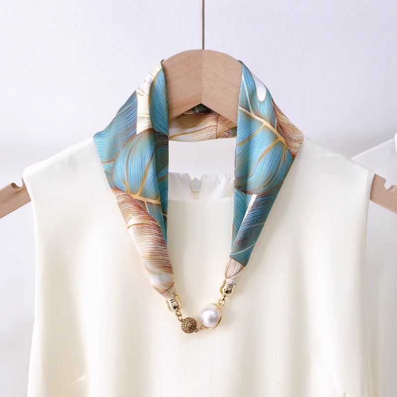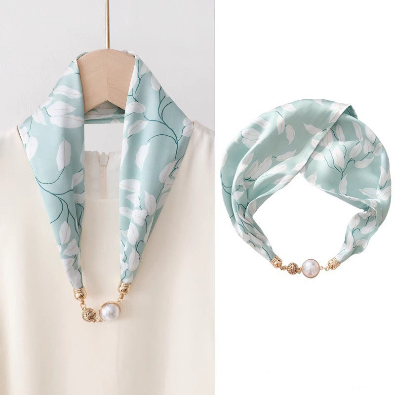 새로운 진주 자석 버클 긴 목걸이 작은 스카프 여성의 간단한 여름 장식 스카프 봄과 가을 빈티지 올 매치 스카프