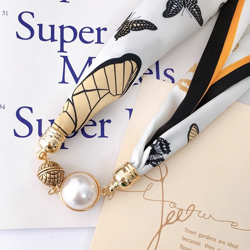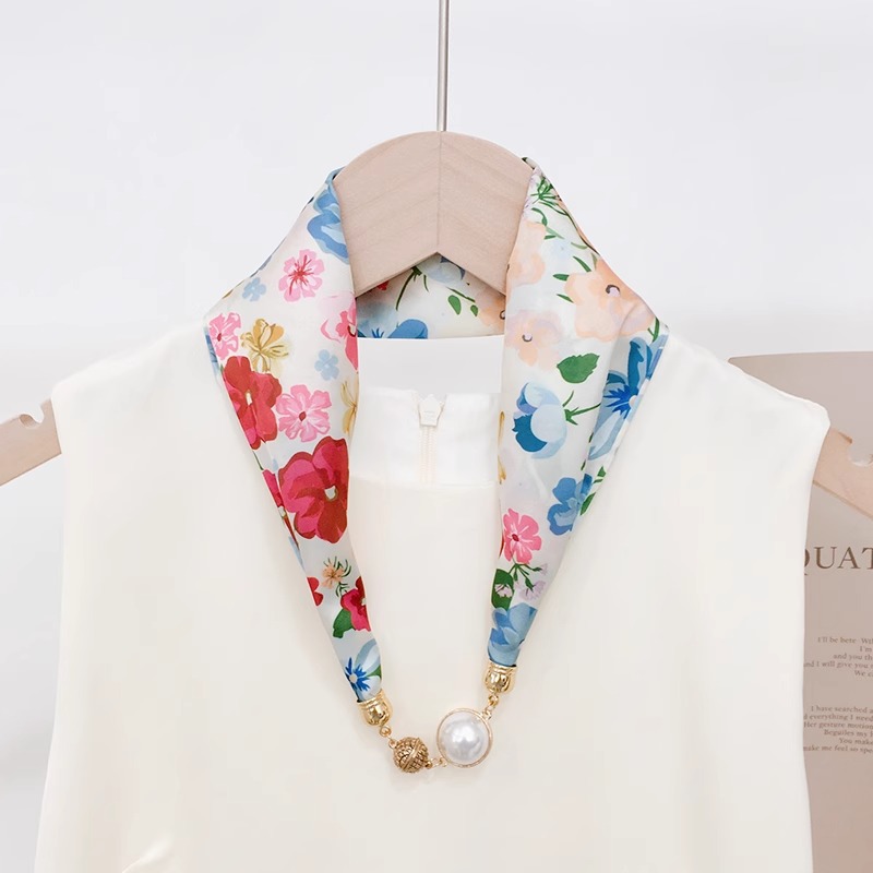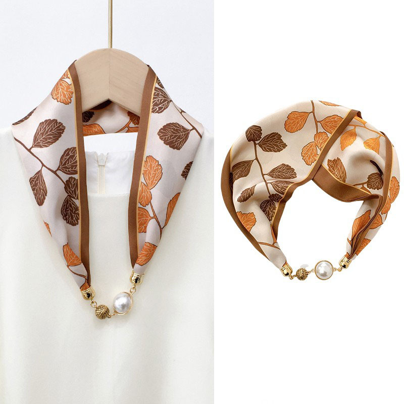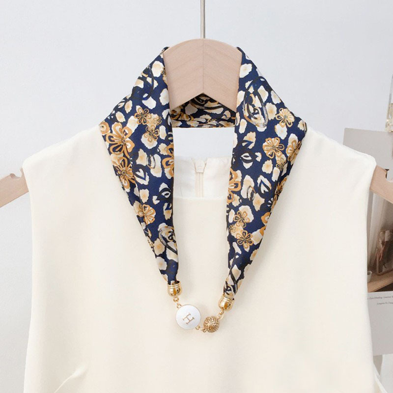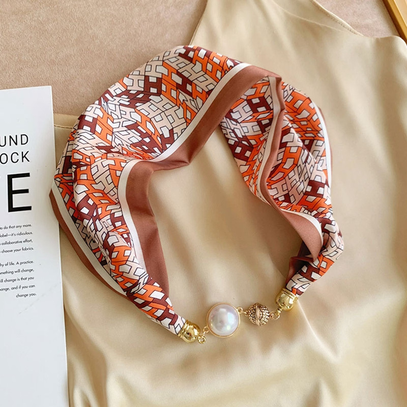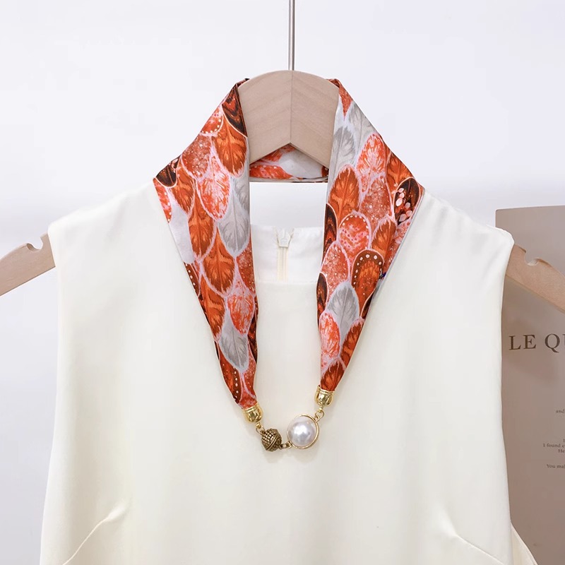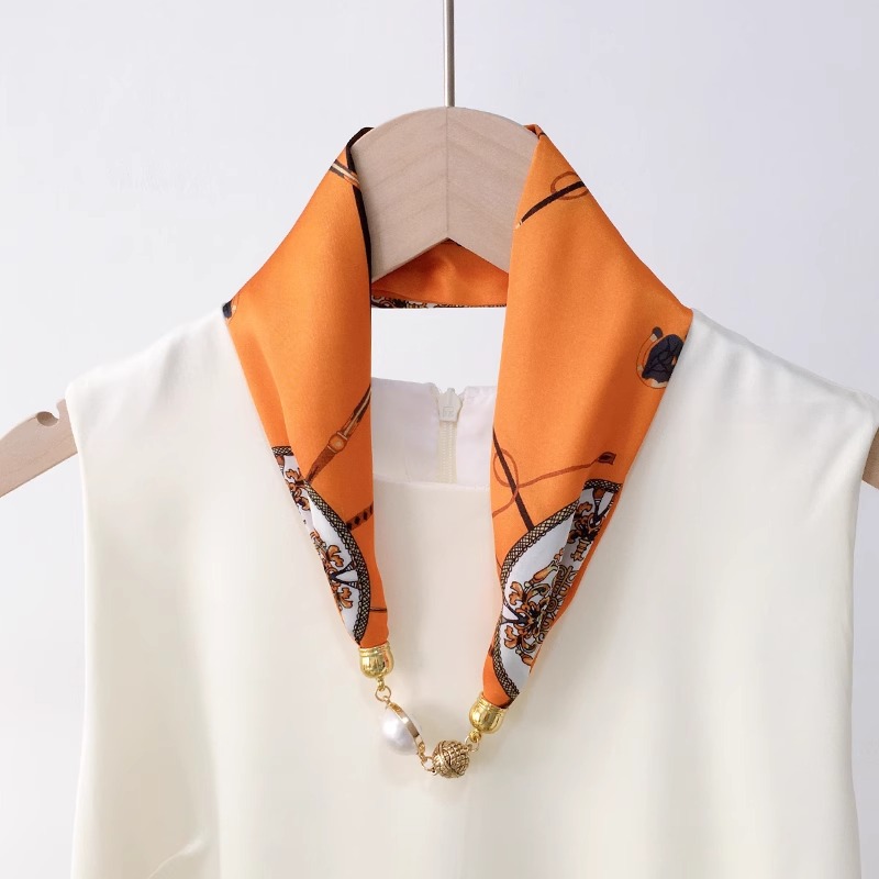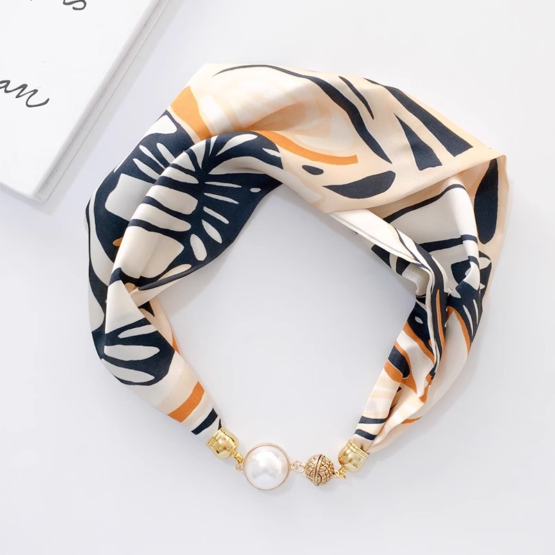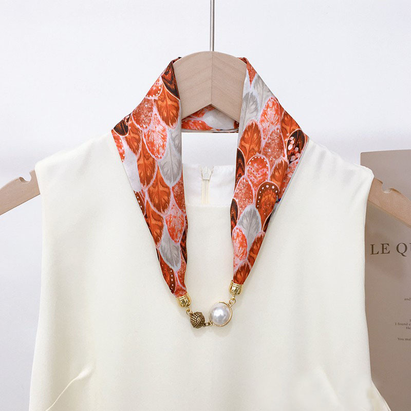 새로운 진주 자석 버클 긴 목걸이 작은 스카프 여성의 간단한 여름 장식 스카프 봄과 가을 빈티지 올 매치 스카프