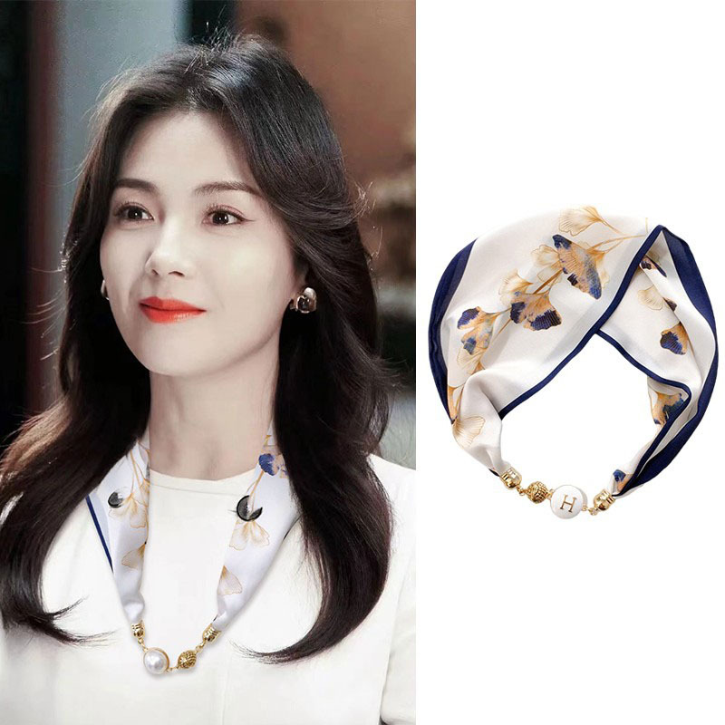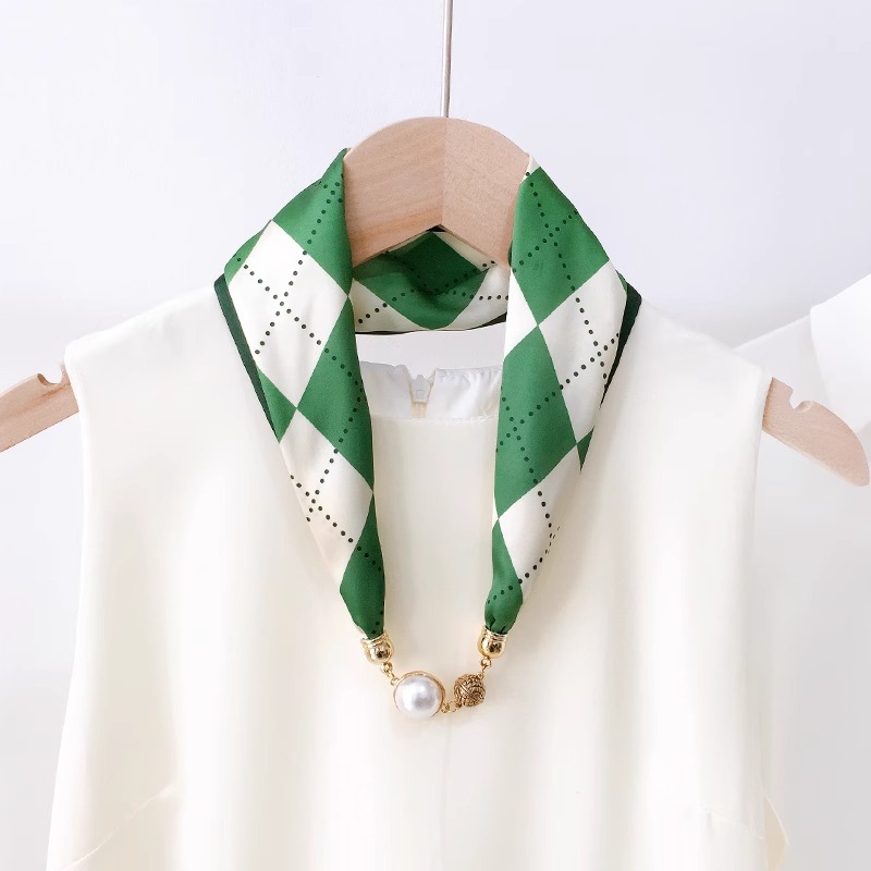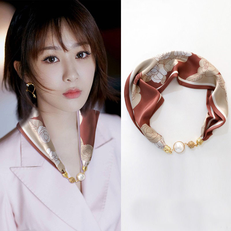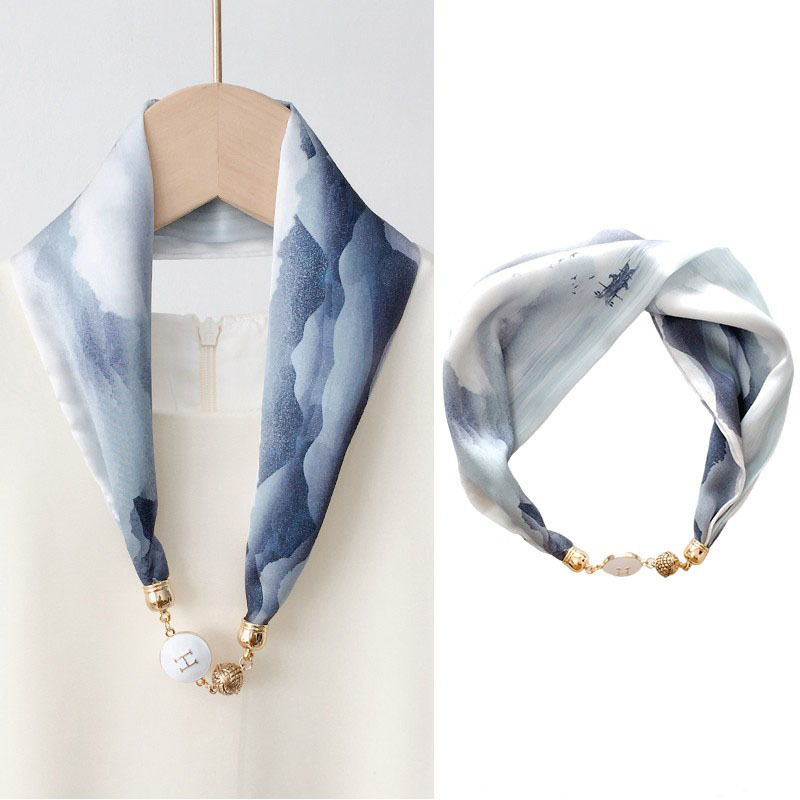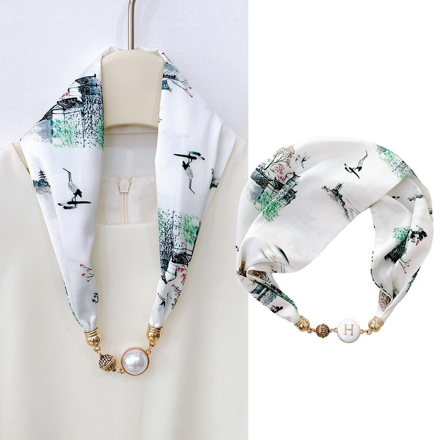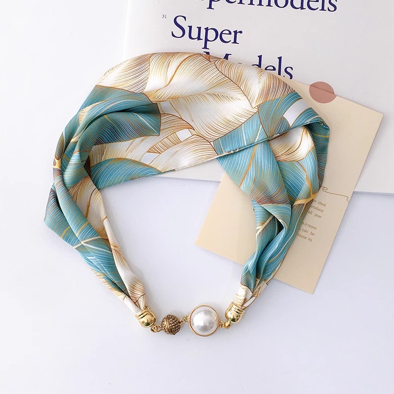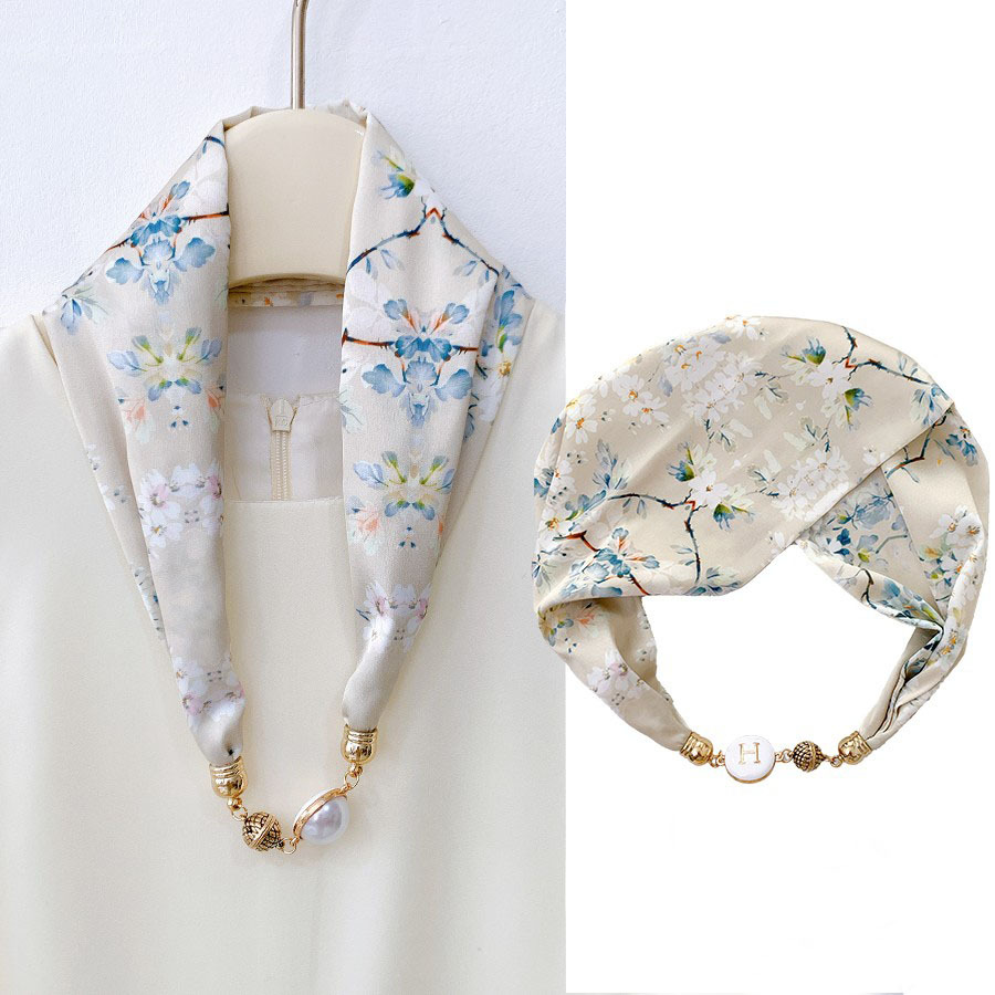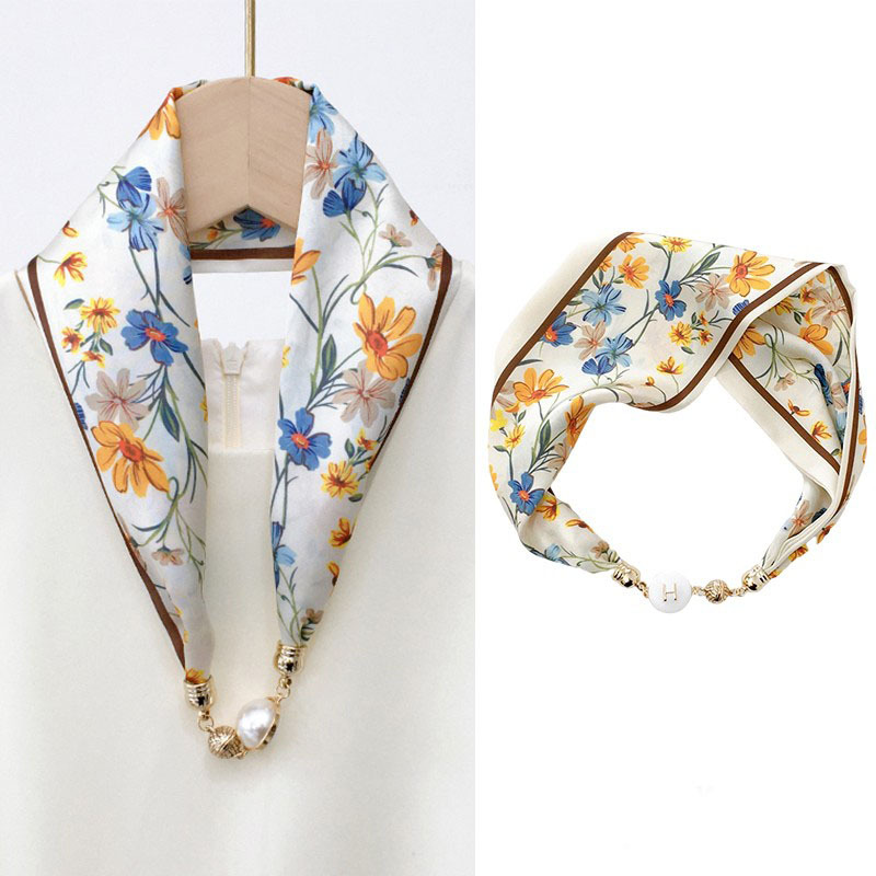 새로운 진주 자석 버클 긴 목걸이 작은 스카프 여성의 간단한 여름 장식 스카프 봄과 가을 빈티지 올 매치 스카프