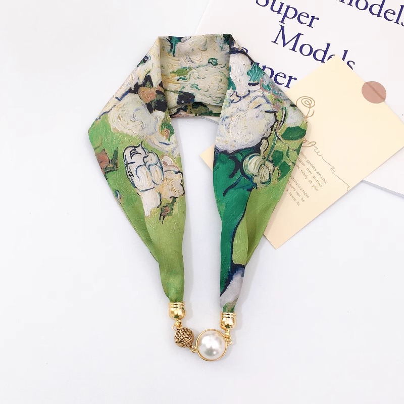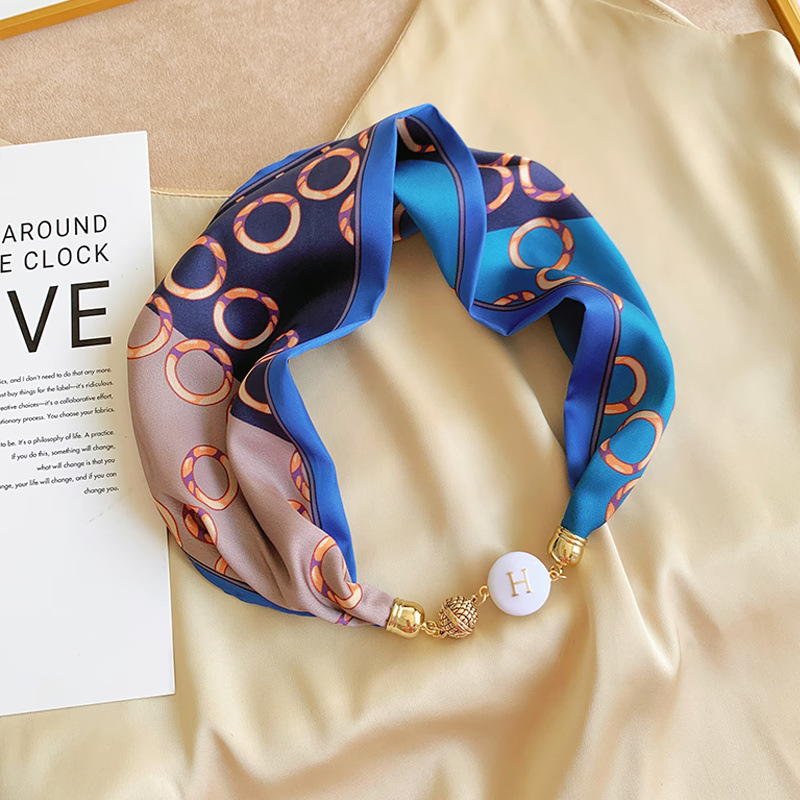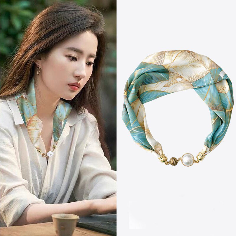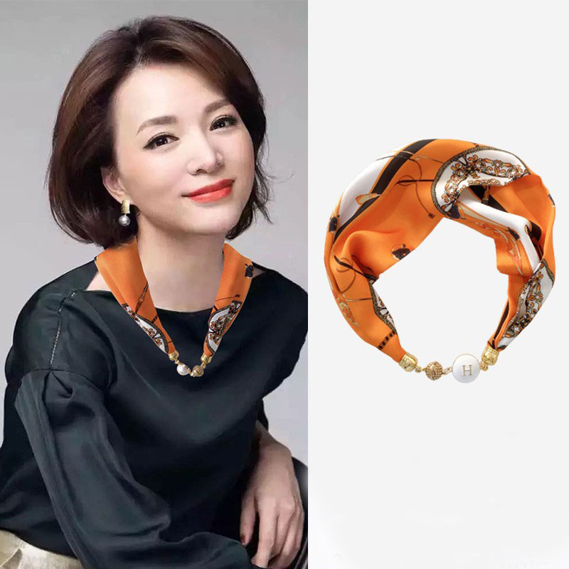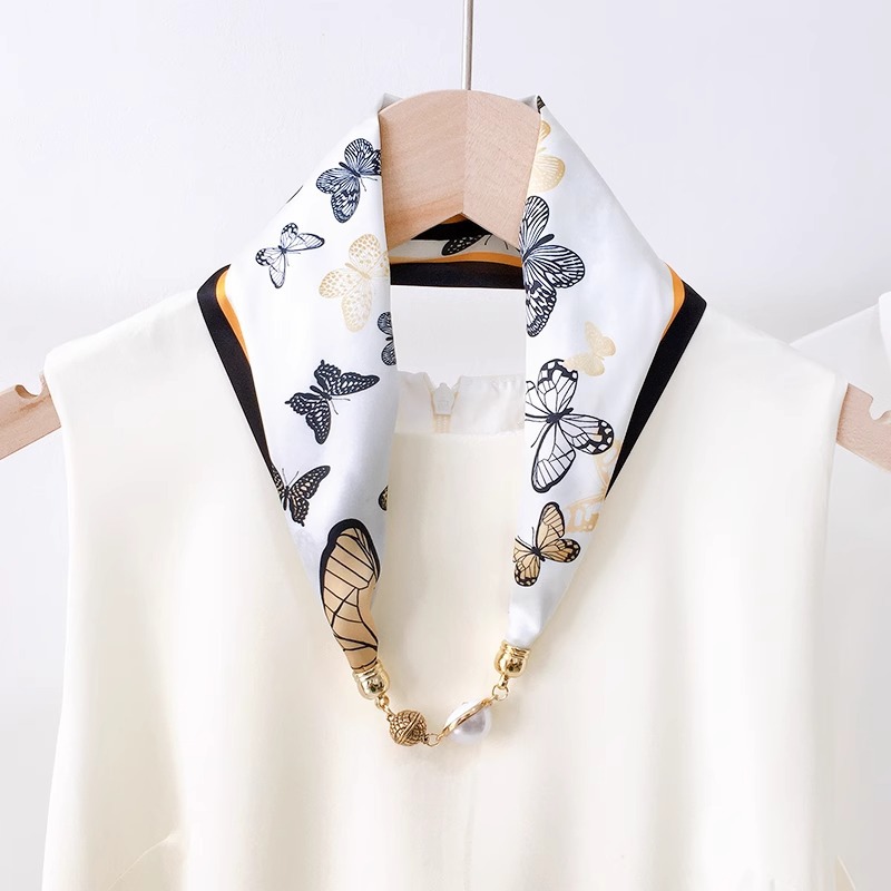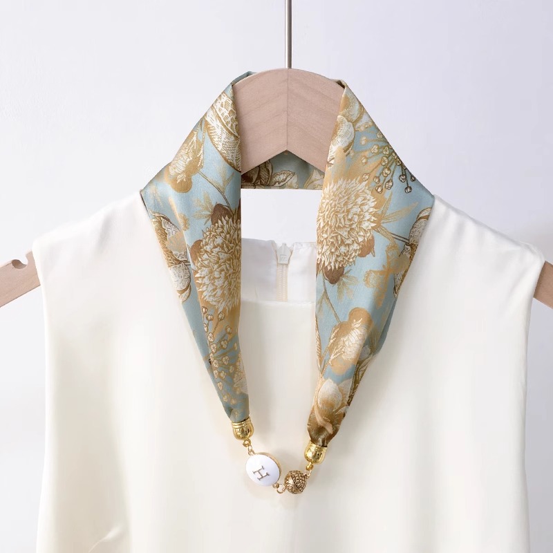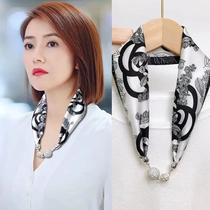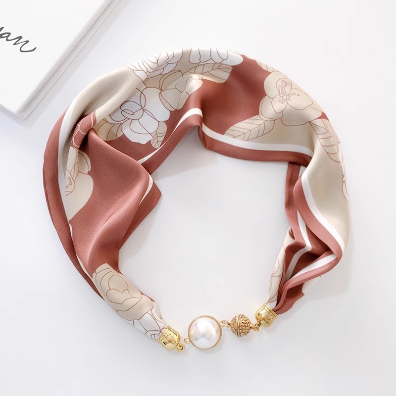 새로운 진주 자석 버클 긴 목걸이 작은 스카프 여성의 간단한 여름 장식 스카프 봄과 가을 빈티지 올 매치 스카프