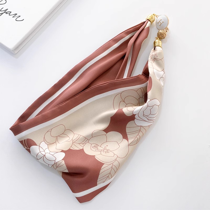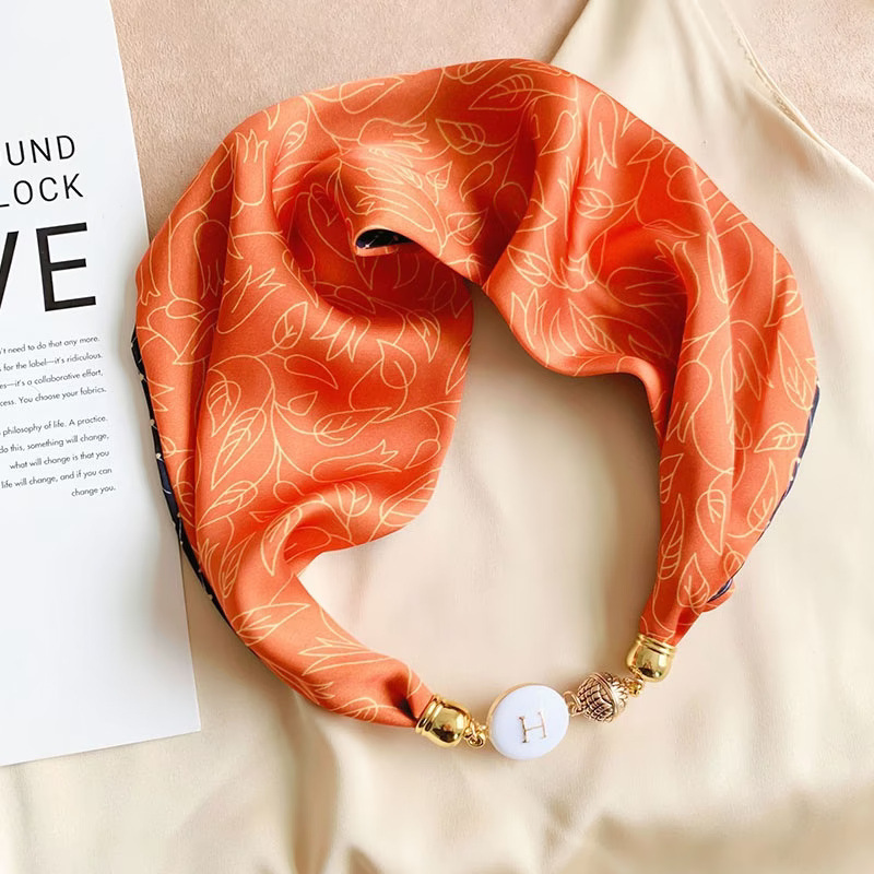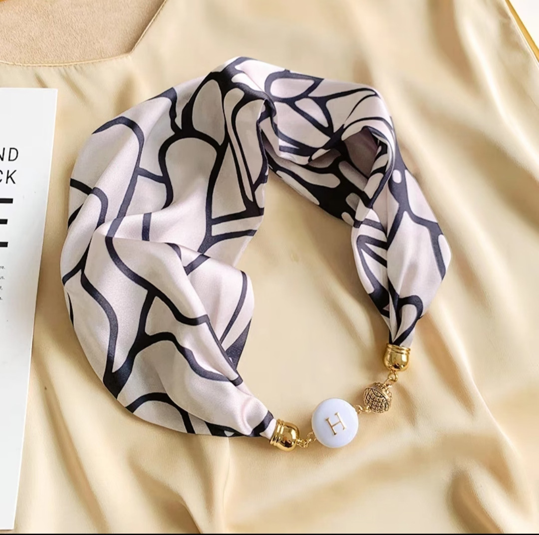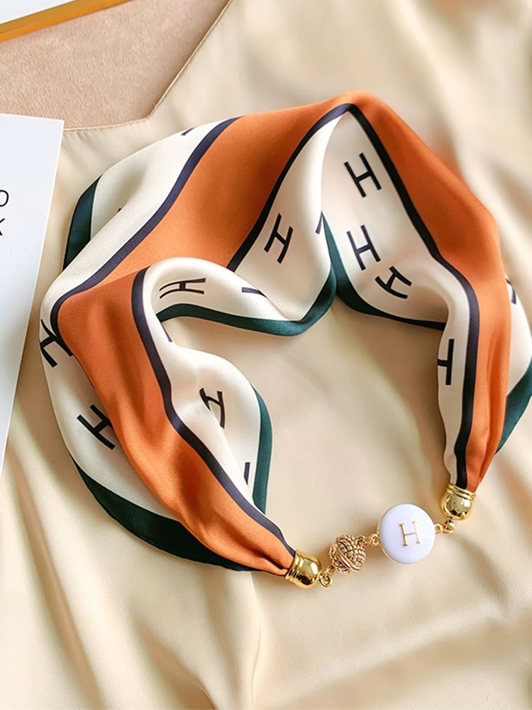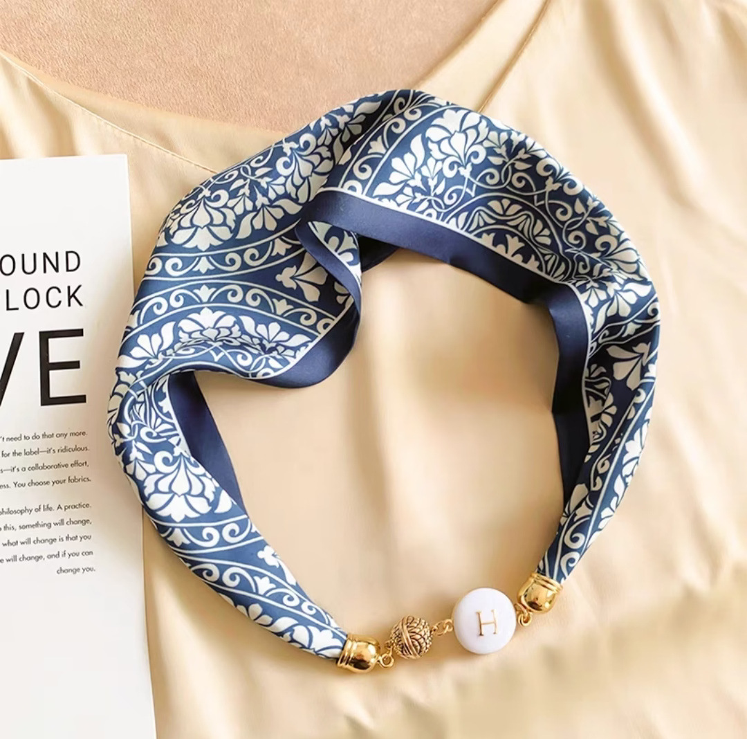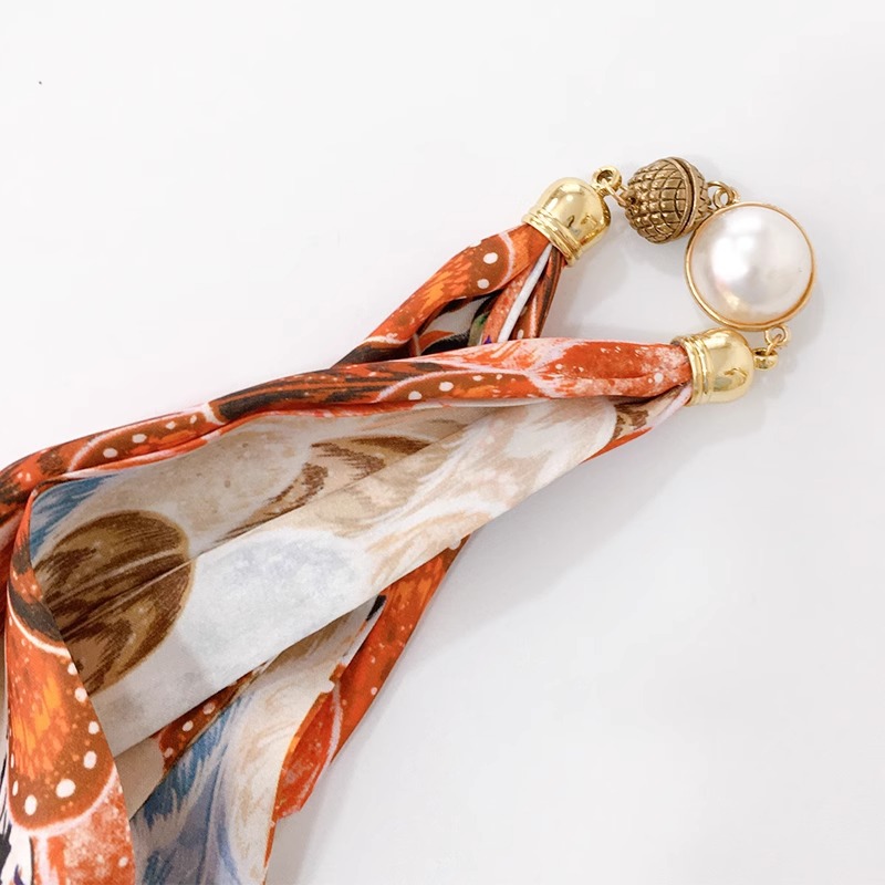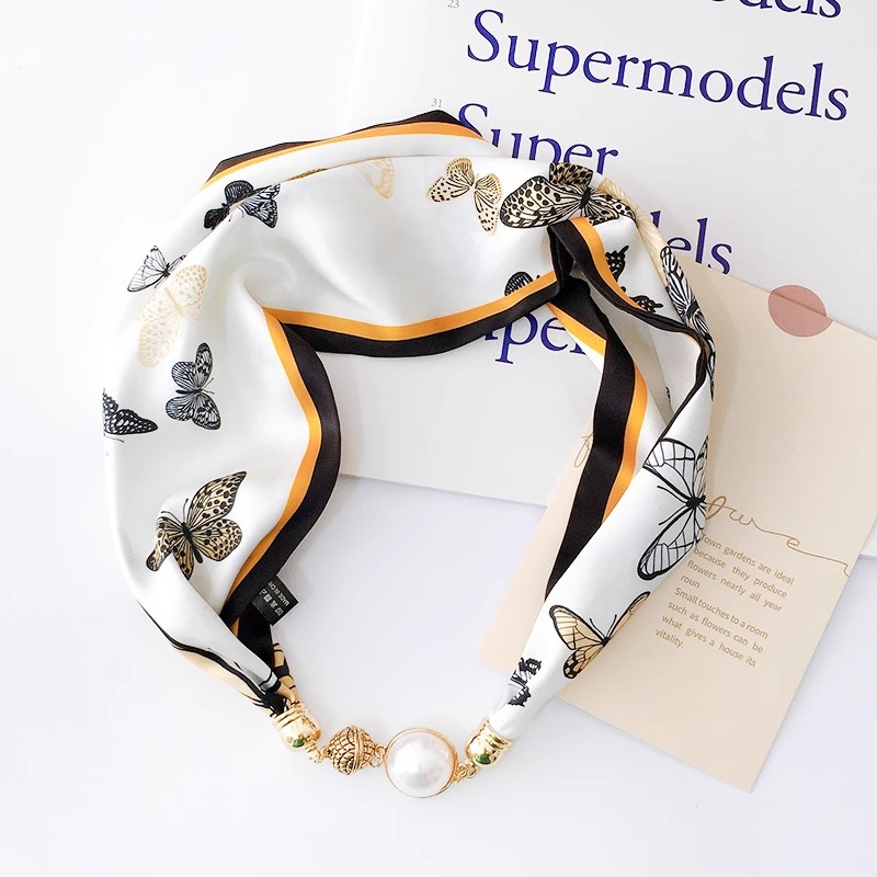 새로운 진주 자석 버클 긴 목걸이 작은 스카프 여성의 간단한 여름 장식 스카프 봄과 가을 빈티지 올 매치 스카프