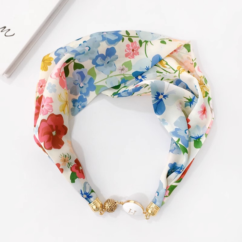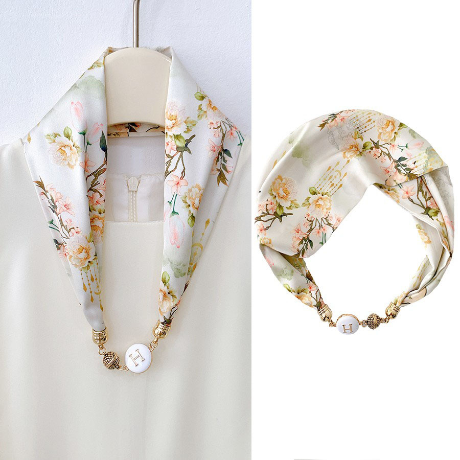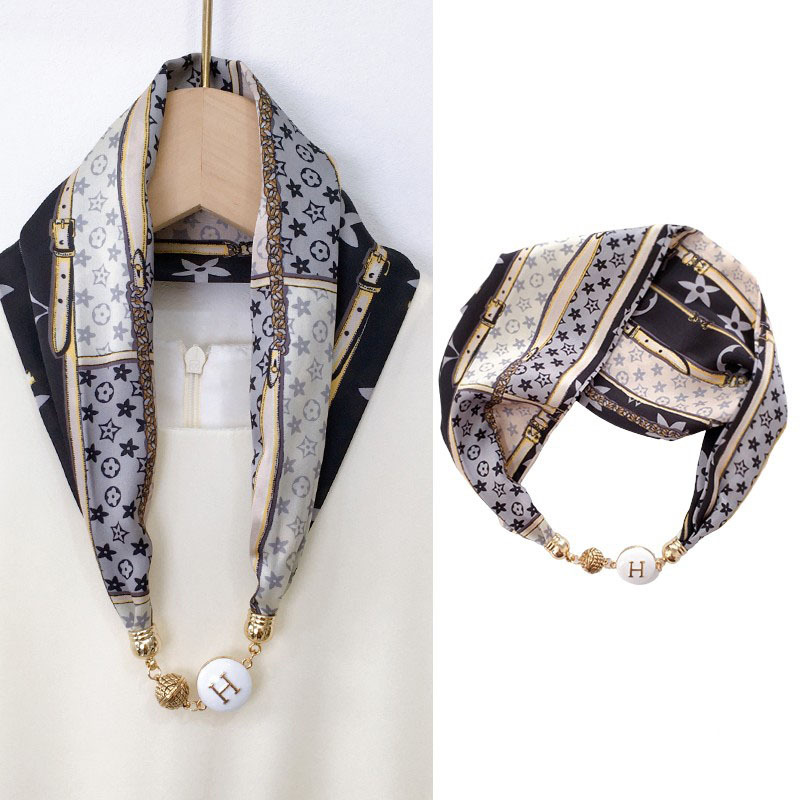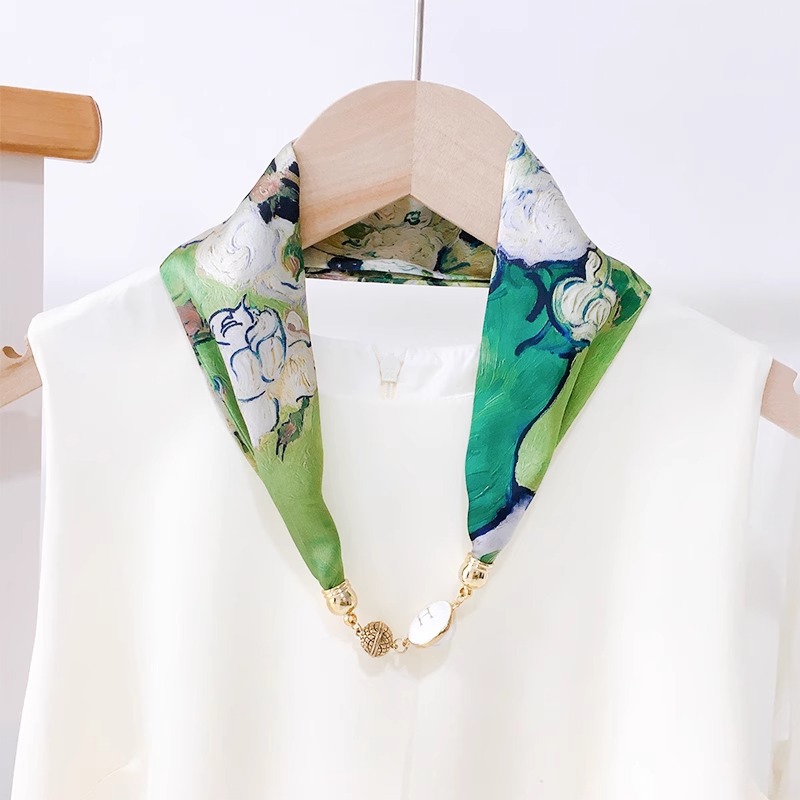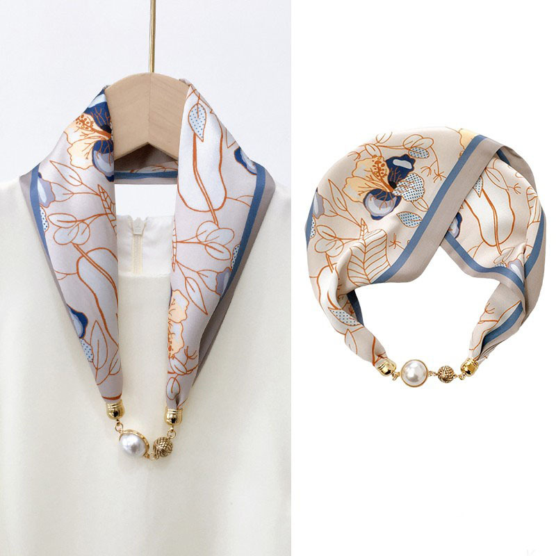 새로운 진주 자석 버클 긴 목걸이 작은 스카프 여성의 간단한 여름 장식 스카프 봄과 가을 빈티지 올 매치 스카프스토어 가기
