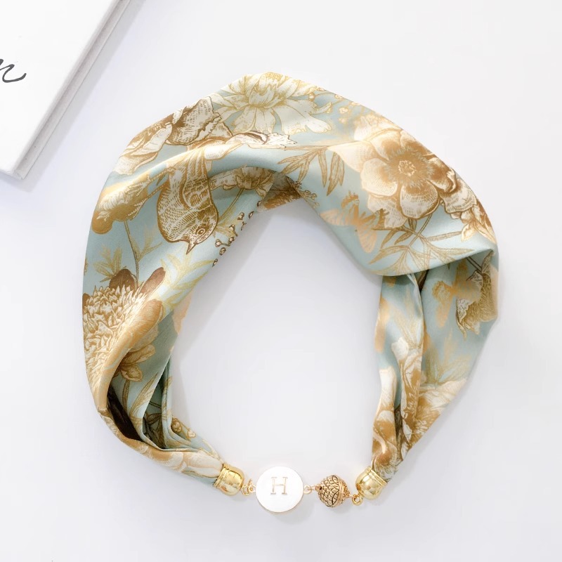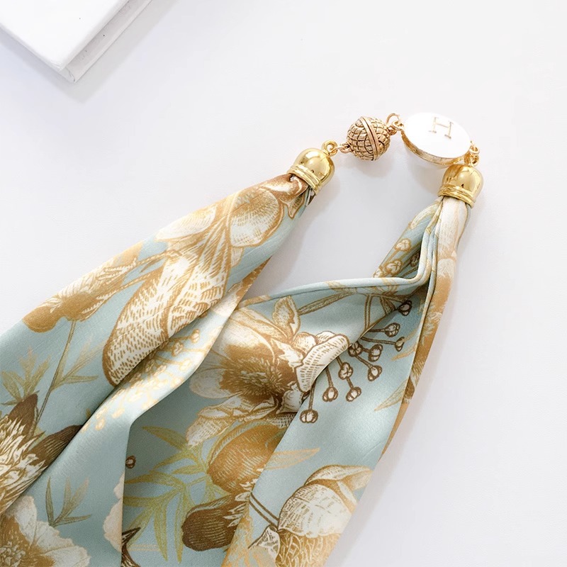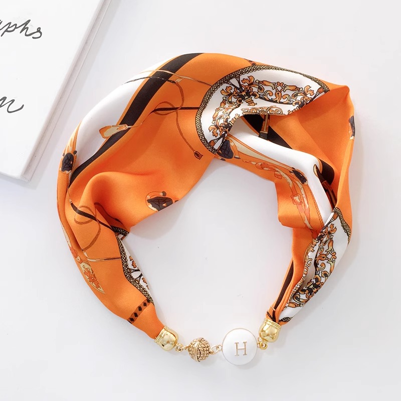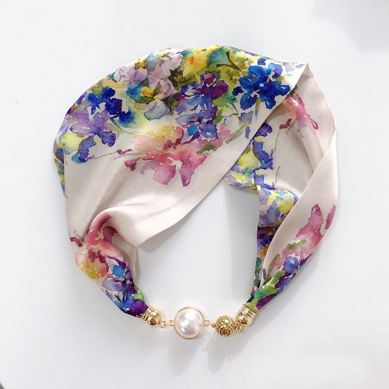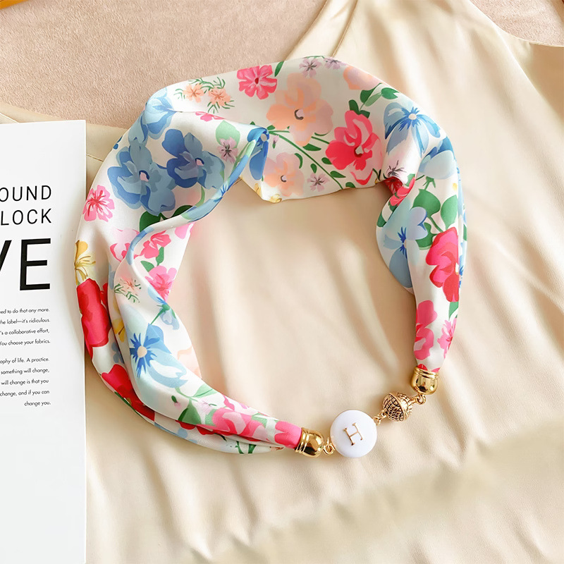 새로운 진주 자석 버클 긴 목걸이 작은 스카프 여성의 간단한 여름 장식 스카프 봄과 가을 빈티지 올 매치 스카프스토어 가기