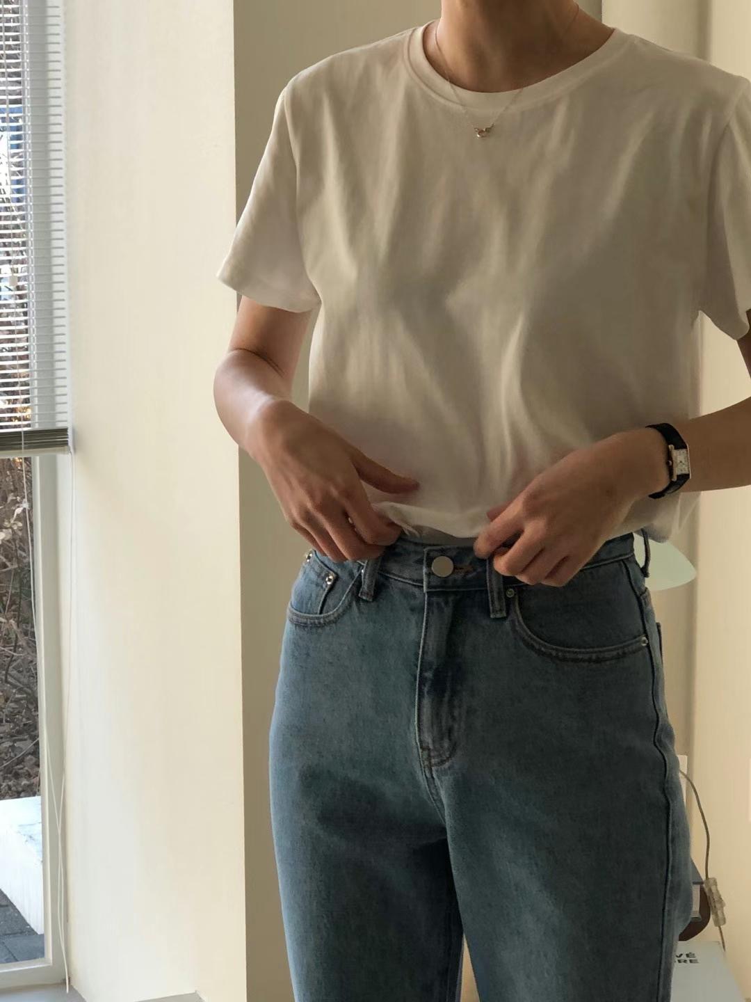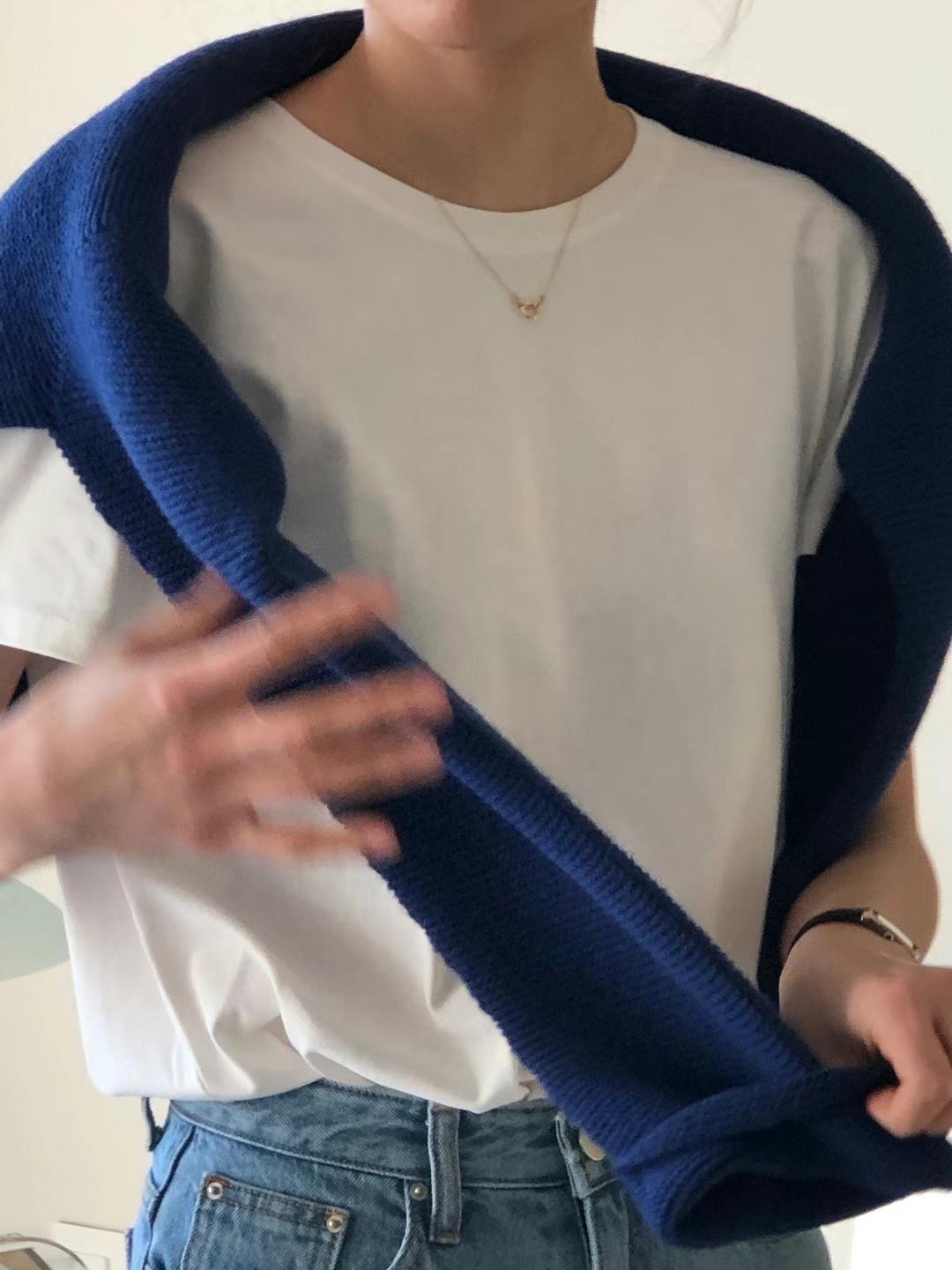 100 순면 봄/여름 기본 어깨 솔리드 컬러 반팔 티셔츠 여성 한국 스타일 캐주얼 올 매치 라운드 넥 풀오버 베이스스토어 가기
