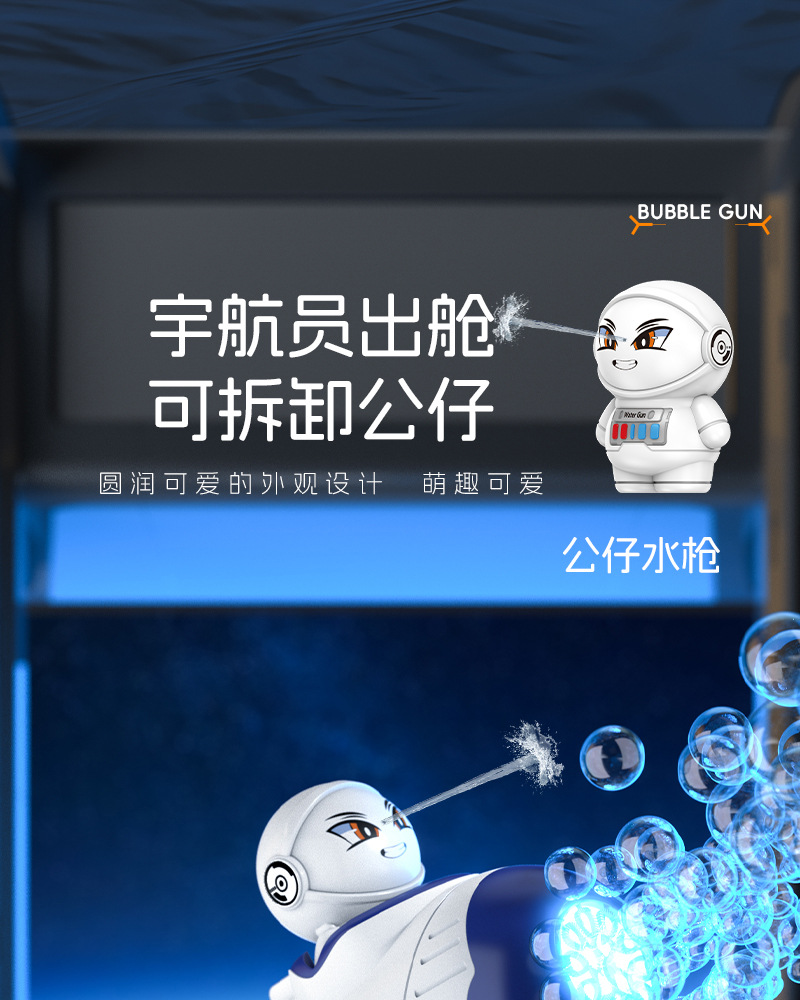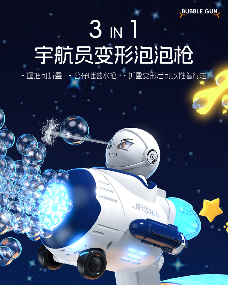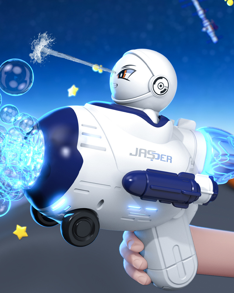 새로운 우주비행사 슬라이딩 버블 머신 물총 3-in-1 변형 가능한 어린이용 귀여운 전동 버블건 장난감스토어 가기