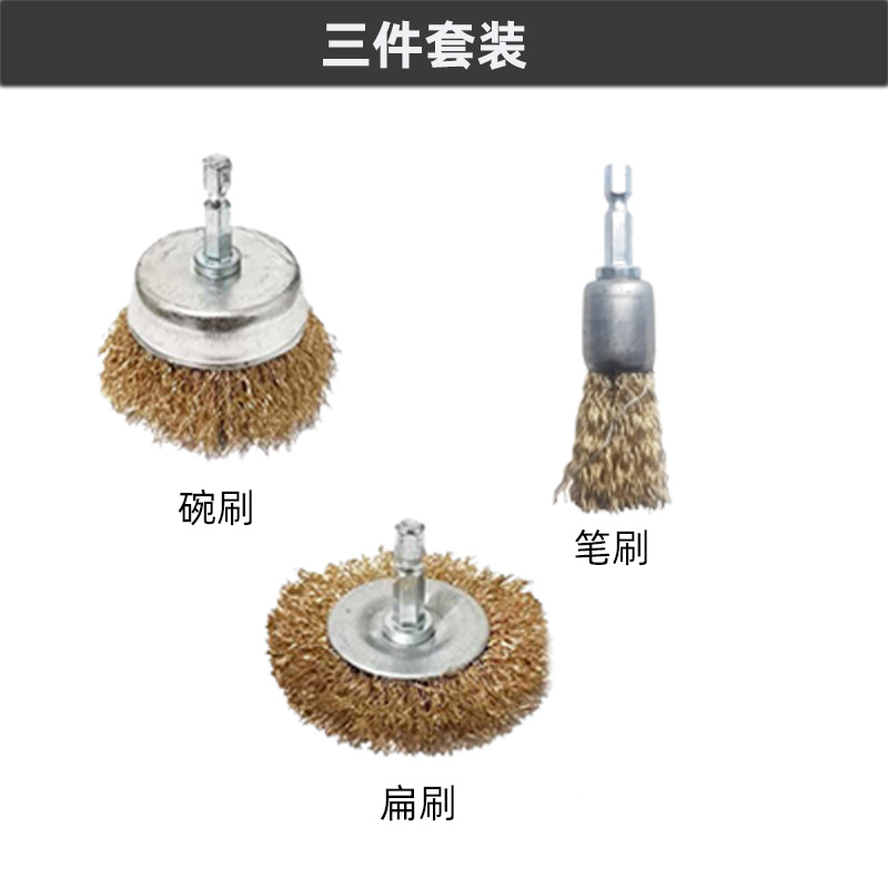 • 강철 와이어 3종 세트, 그릇 브러시 1개 + 플랫 브러시 1개 + 브러시 1개