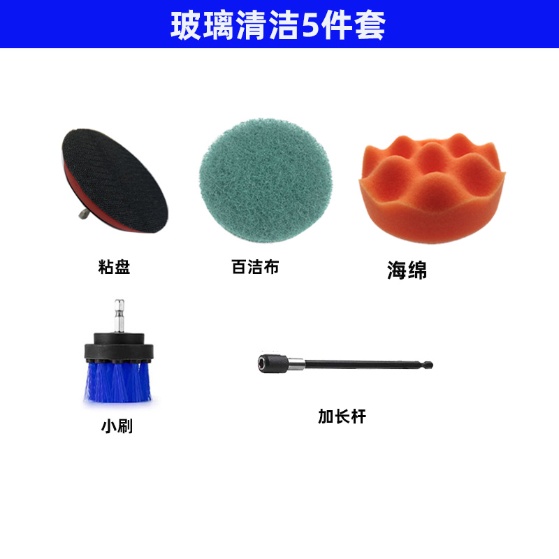 • 유리 5종 세트, 작은 솔 1개 + 흡착판 1개 + 수세미 1개 + 스펀지 1개 + 연장봉 1개