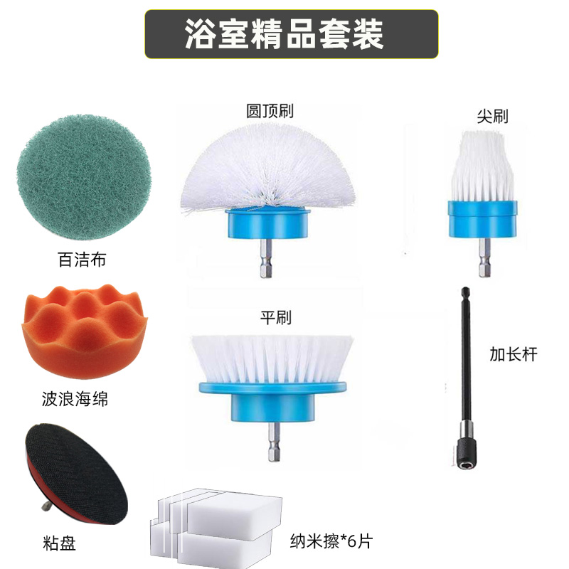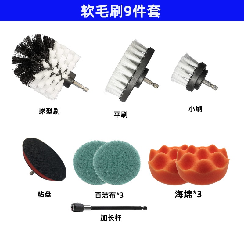 • 부드러운 강모 9종 세트 플랫 브러시 1개 + 볼 브러시 1개 + 소형 브러시 1개 + 흡입 컵 1개 + 수세미 2개 + 스펀지 2개 + 연장 막대 1개