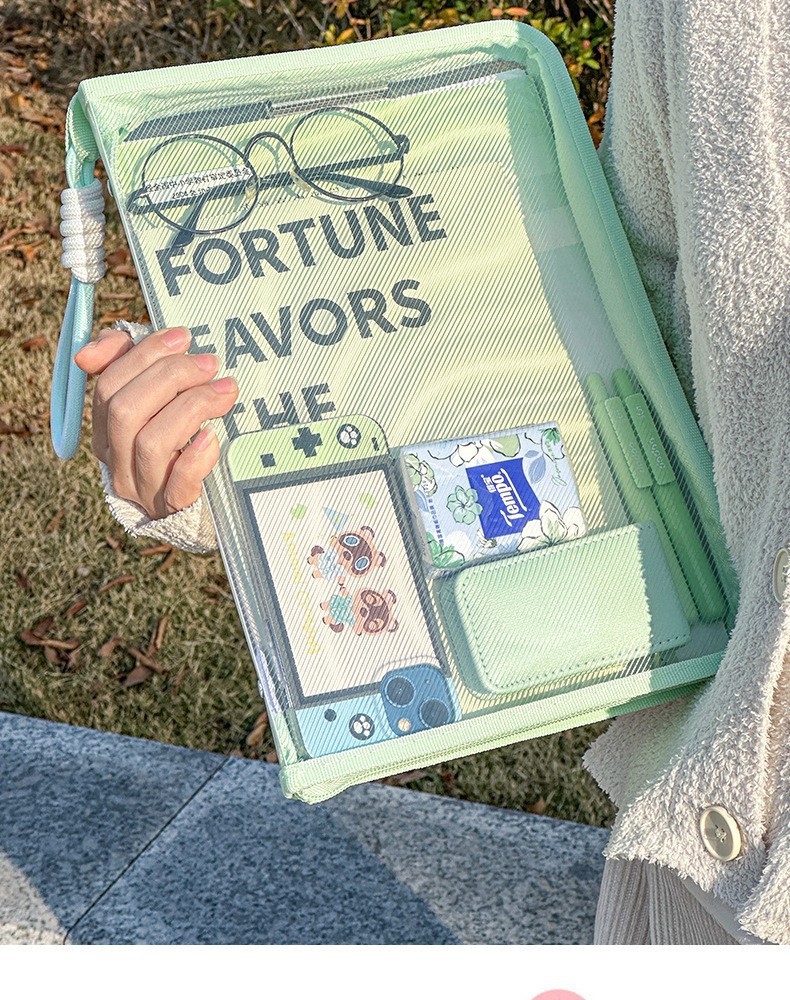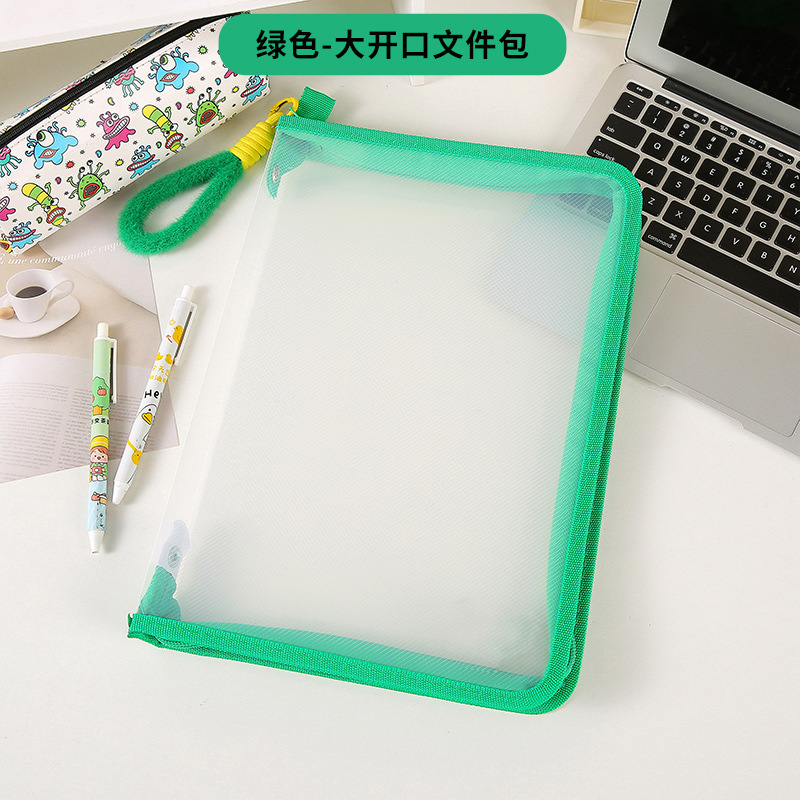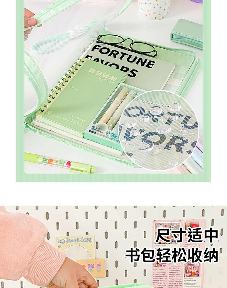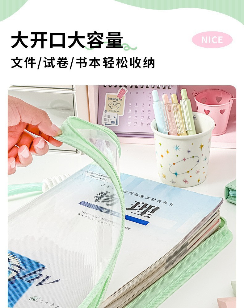Macaron 투명한 A4 파일 가방 대용량 교과서 지퍼 학생 휴대용 두꺼운 방수 보관 가방