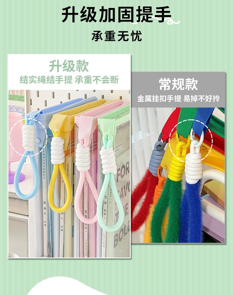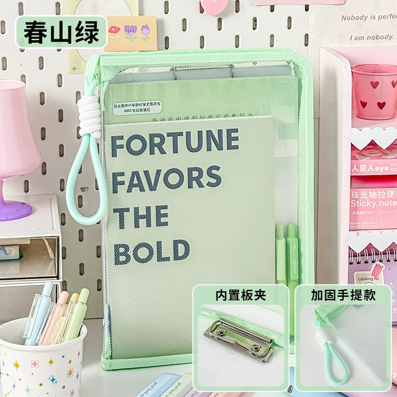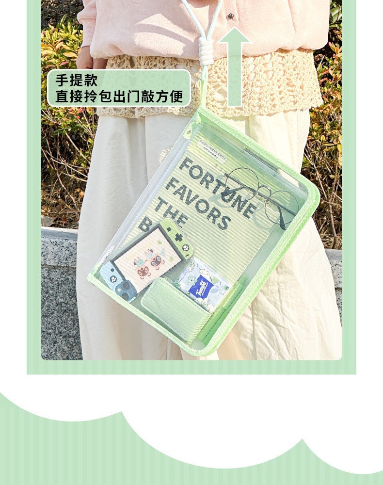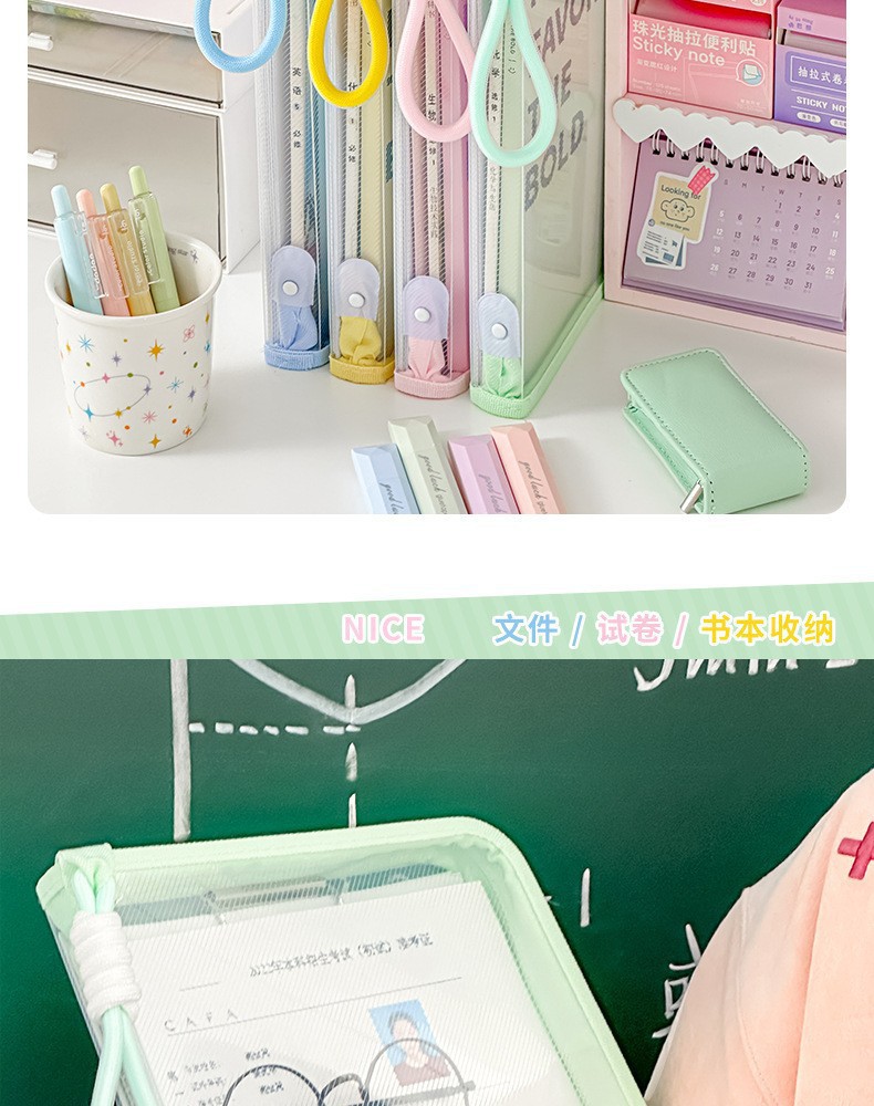 Macaron 투명한 A4 파일 가방 대용량 교과서 지퍼 학생 휴대용 두꺼운 방수 보관 가방스토어 가기