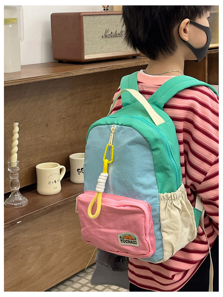 남학생과 여학생을위한 야외 어린이 여행 작은 배낭 초등학생을위한 콘트라스트 컬러 스쿨 백 경량 봄 외부 배낭스토어 가기