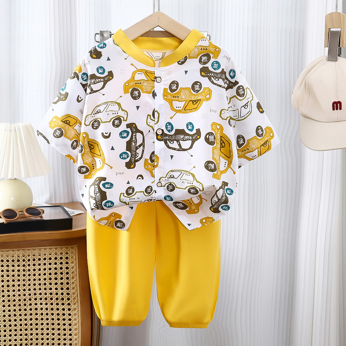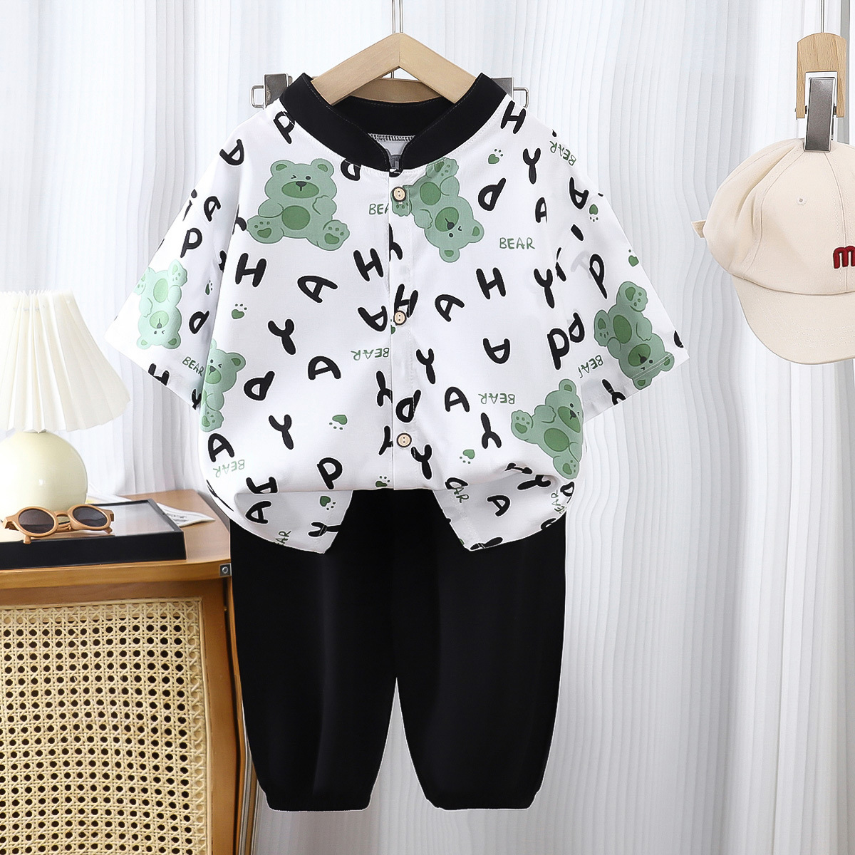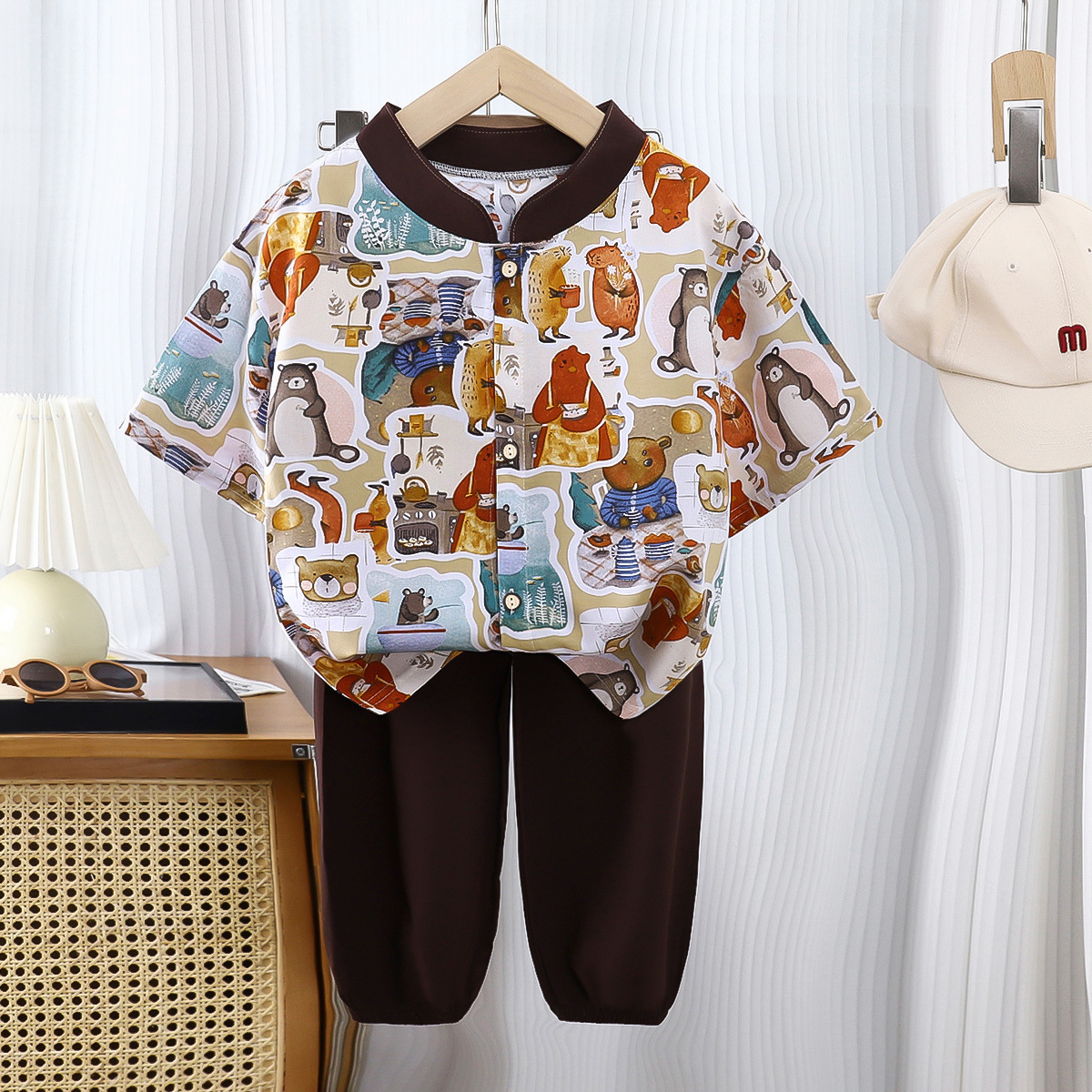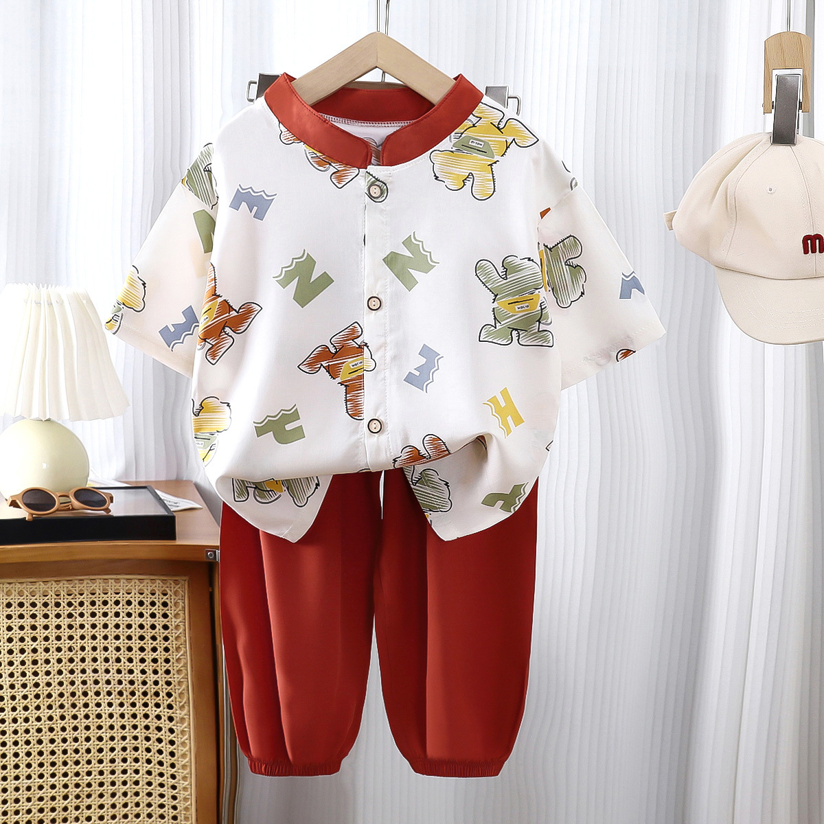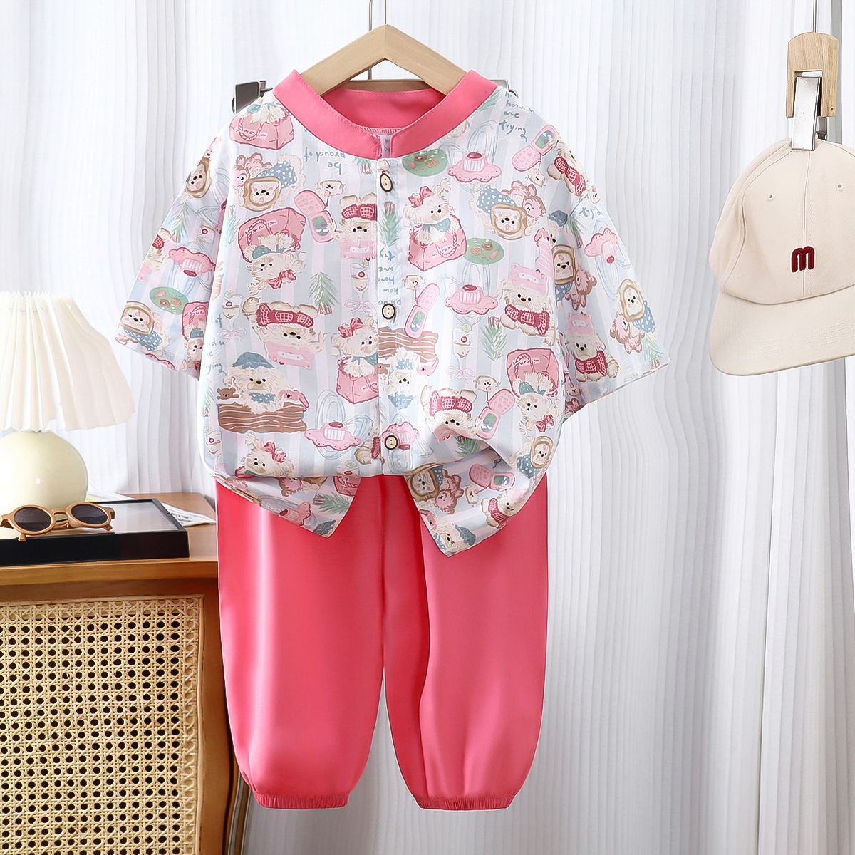 어린이 반팔 세트 셔츠 티셔츠 소년 여름 레즈비언 홈 옷 소녀 실크 파자마 투피스 세트