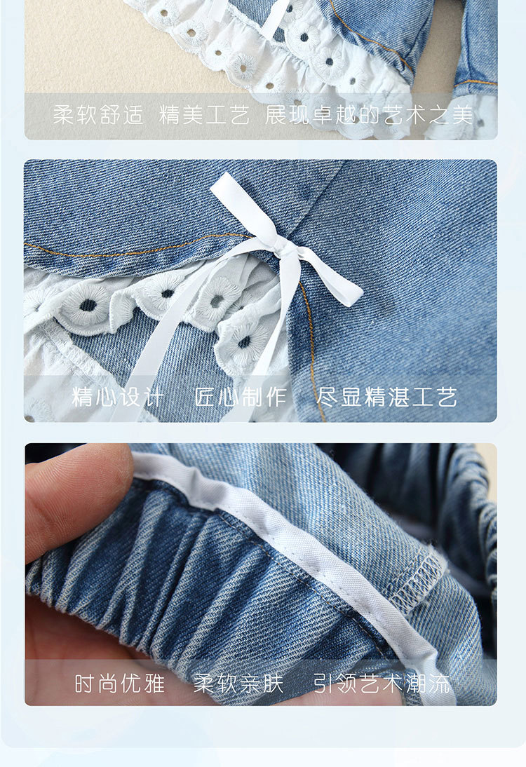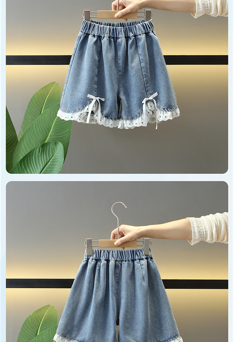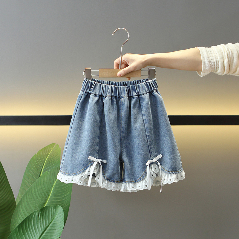 아동복 2025 소녀 반바지 여름 얇은 소녀 새로운 패션 데님 반바지 베이비 레이스 캐주얼 핫 바지