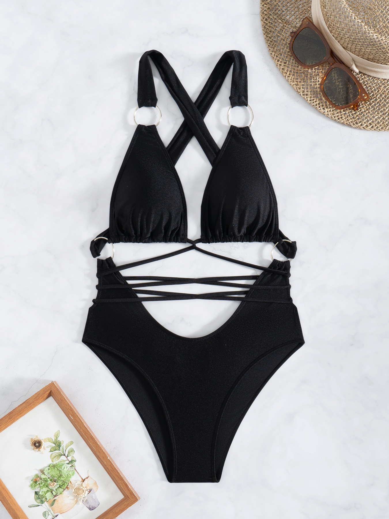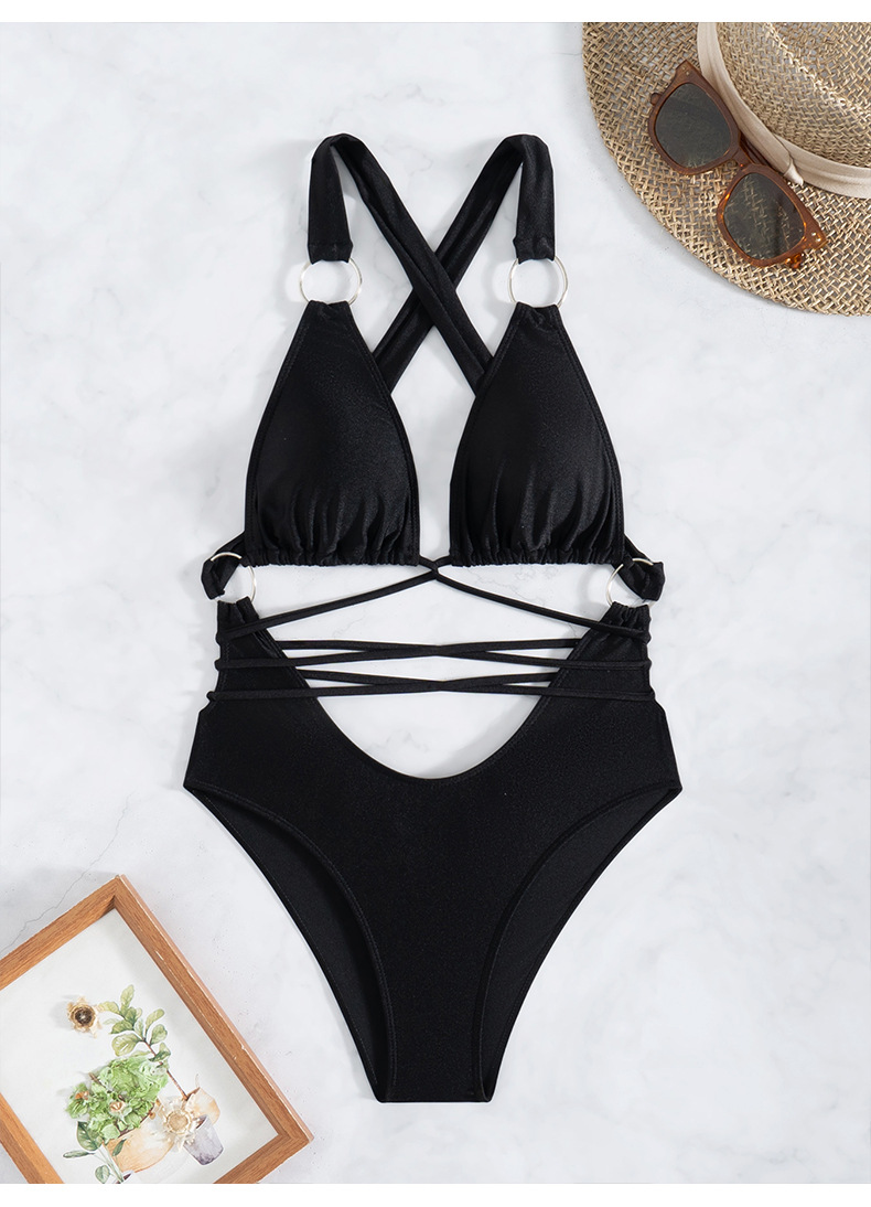 아마존 원피스 수영복 여성 섹시한 솔리드 컬러 중공 레이스 업 비키니 비치 스파 여성을위한 국경 간 대외 무역 수영복스토어 가기