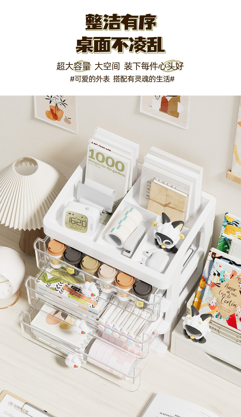 도매 데스크탑 스토리지 박스 데스크 스토리지 다기능 뚜껑 메이크업 스토리지 박스 학습 문구 마무리 스토리지 랙