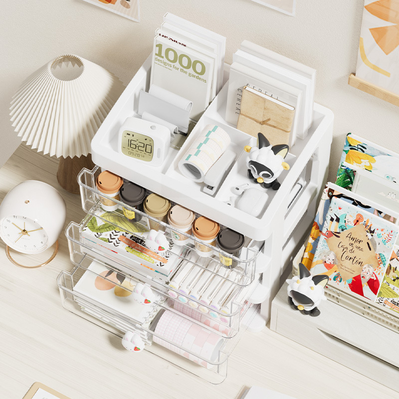 도매 데스크탑 스토리지 박스 데스크 스토리지 다기능 뚜껑 메이크업 스토리지 박스 학습 문구 마무리 스토리지 랙스토어 가기