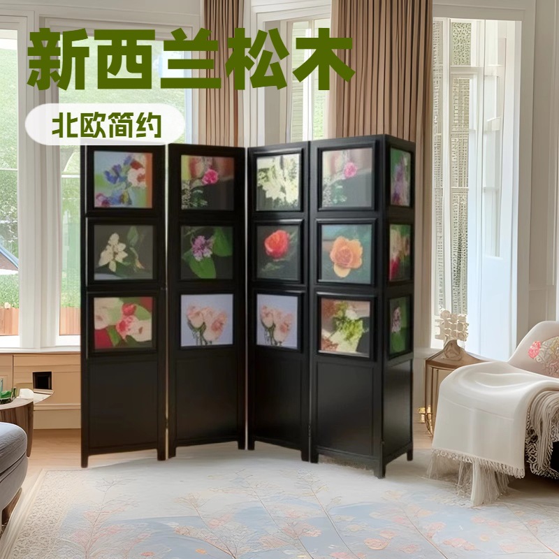 액자형 스크린 칸막이, 거실 현관용 맞춤형 접이식 이동식 뉴질랜드산 소나무 원목 이동식 칸막이