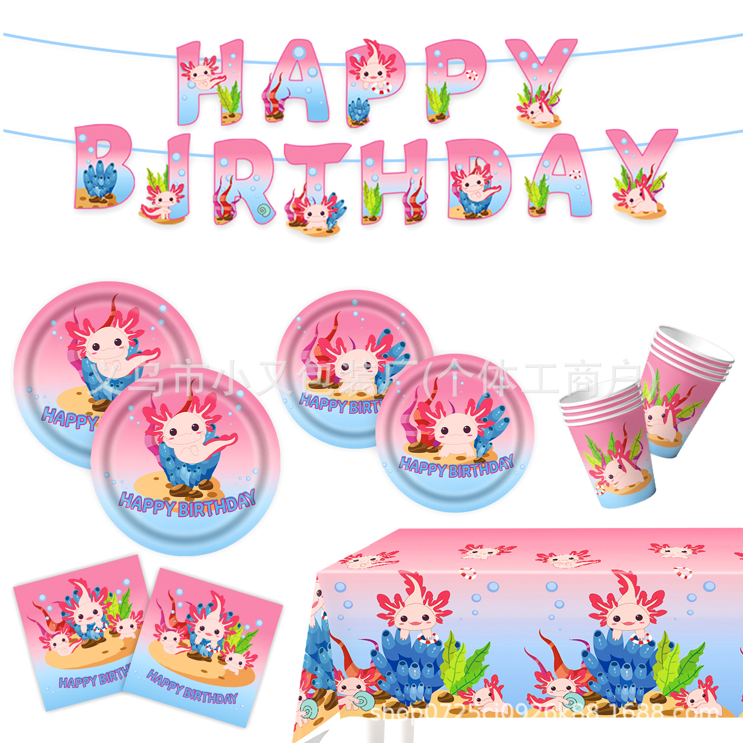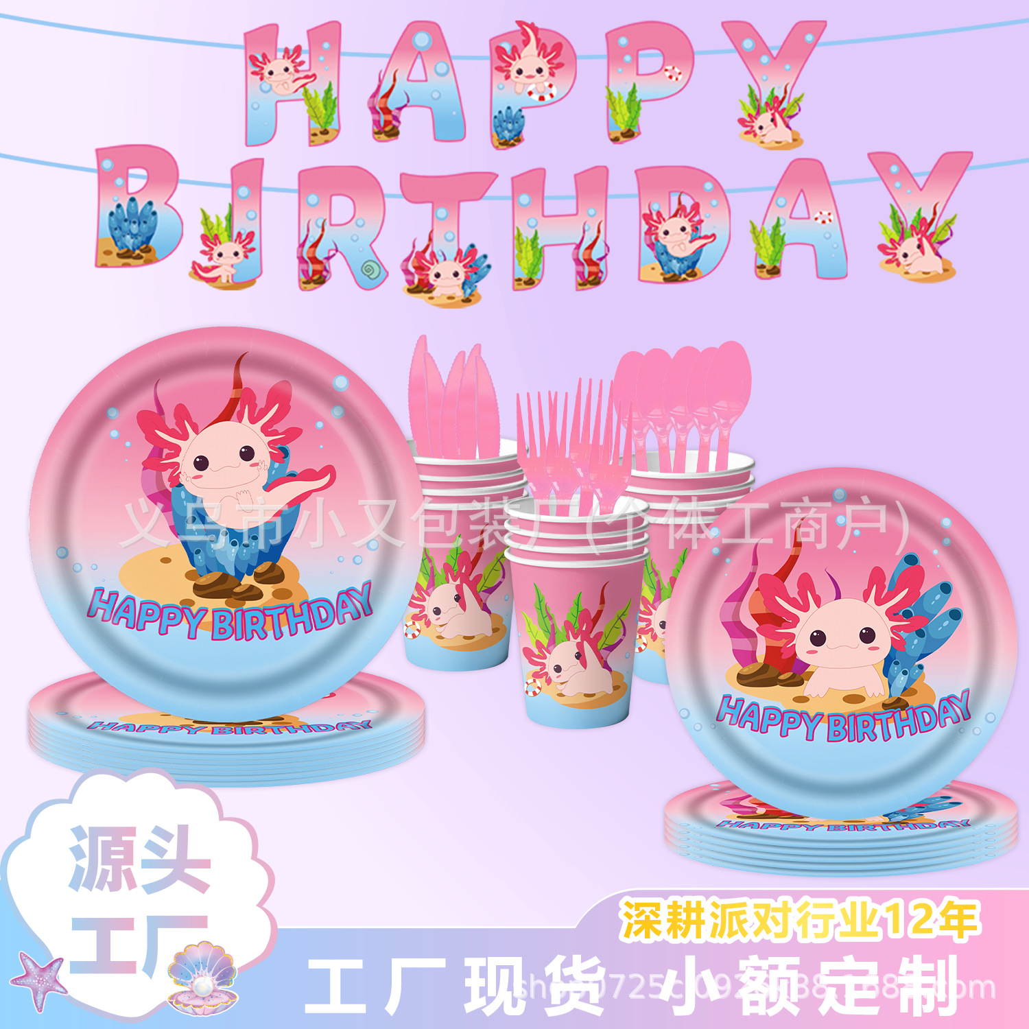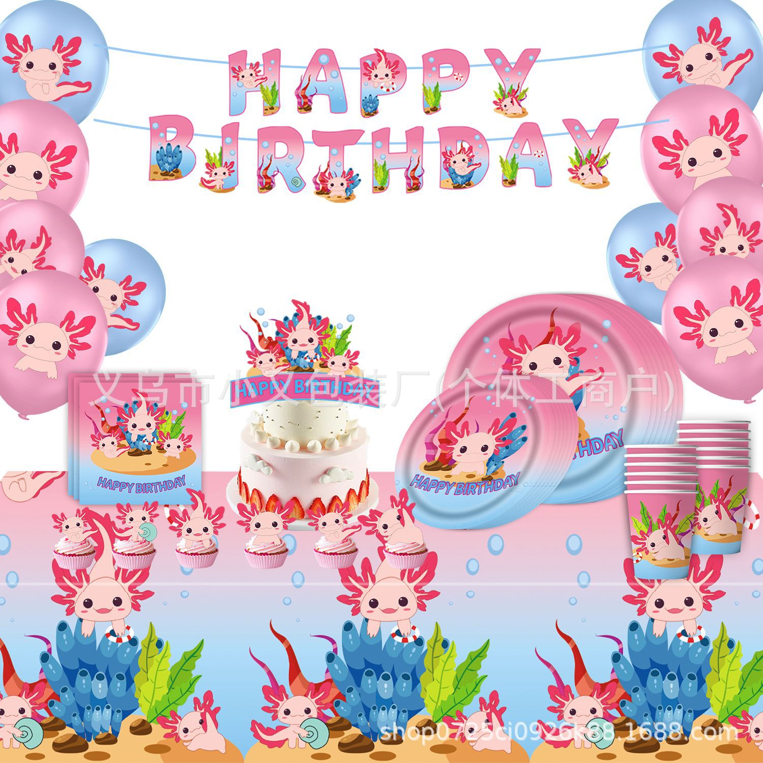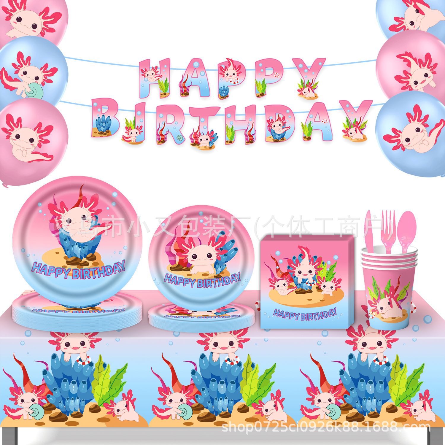 국경 간 새로운 만화 도롱뇽 테마 어린이 생일 파티 식기 종이 트레이 종이 컵 깃발 식탁보 풍선 용품스토어 가기