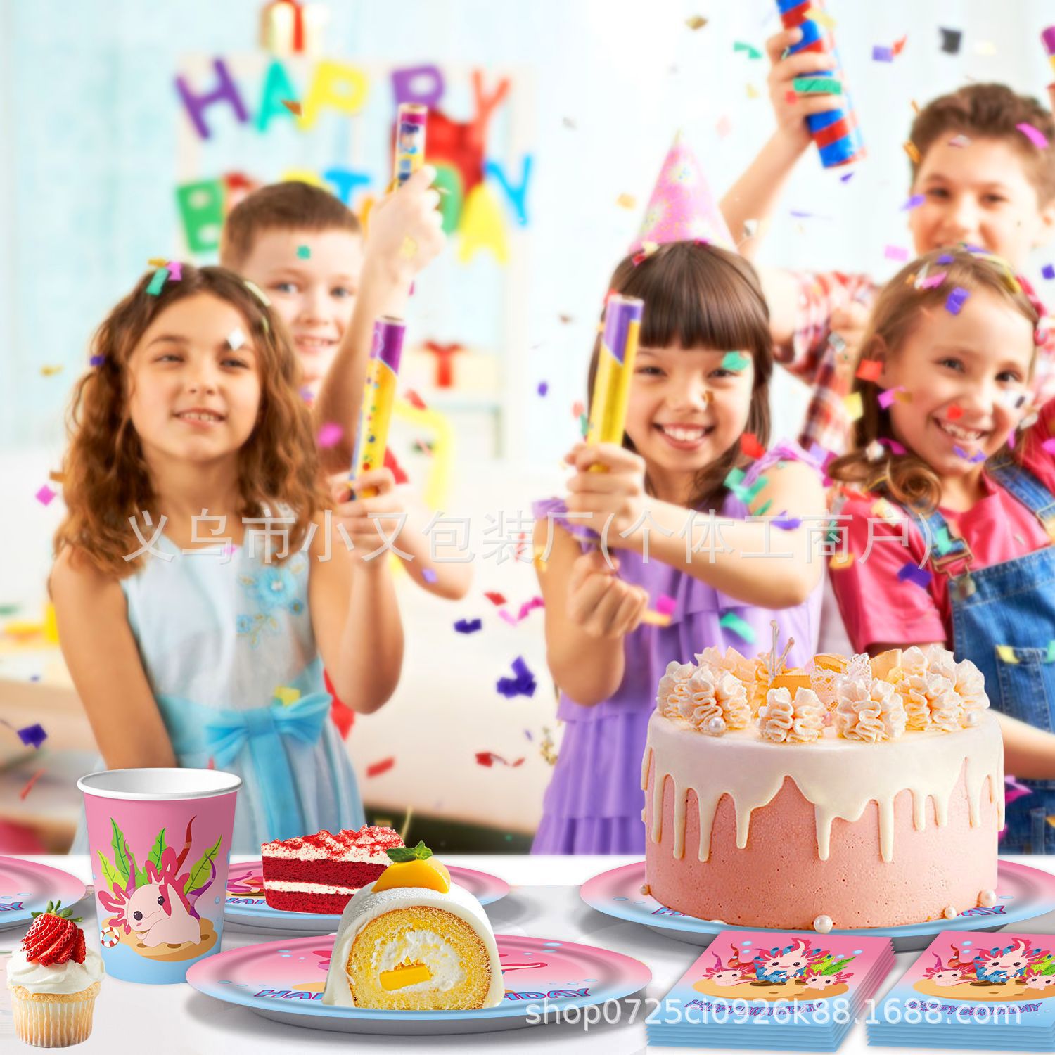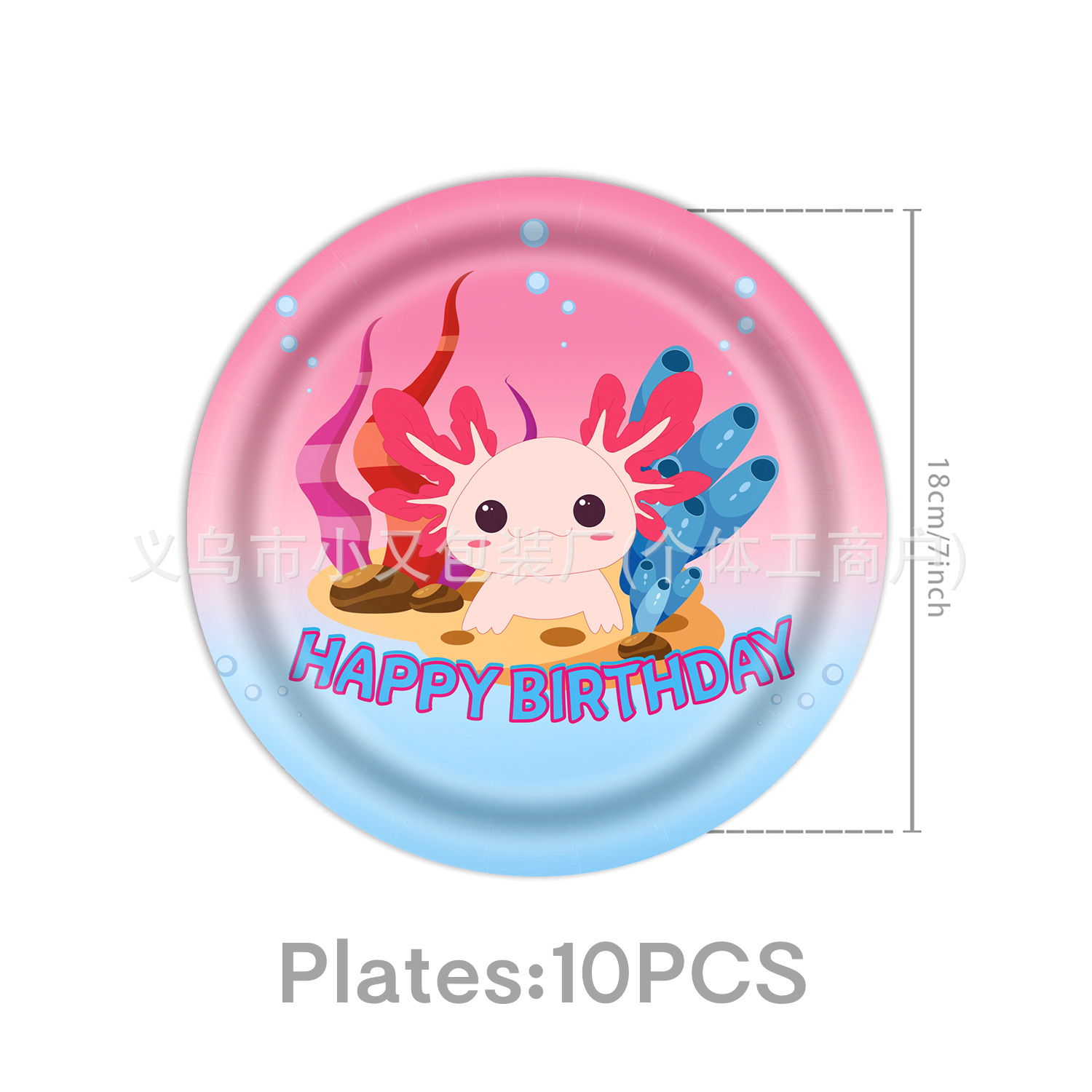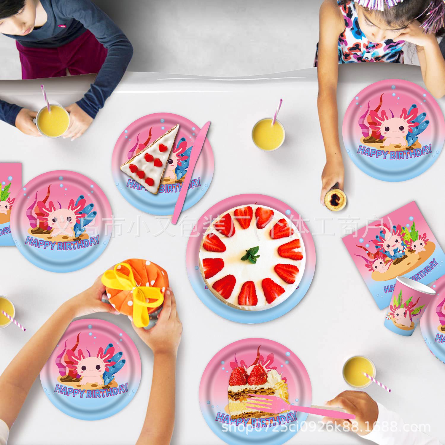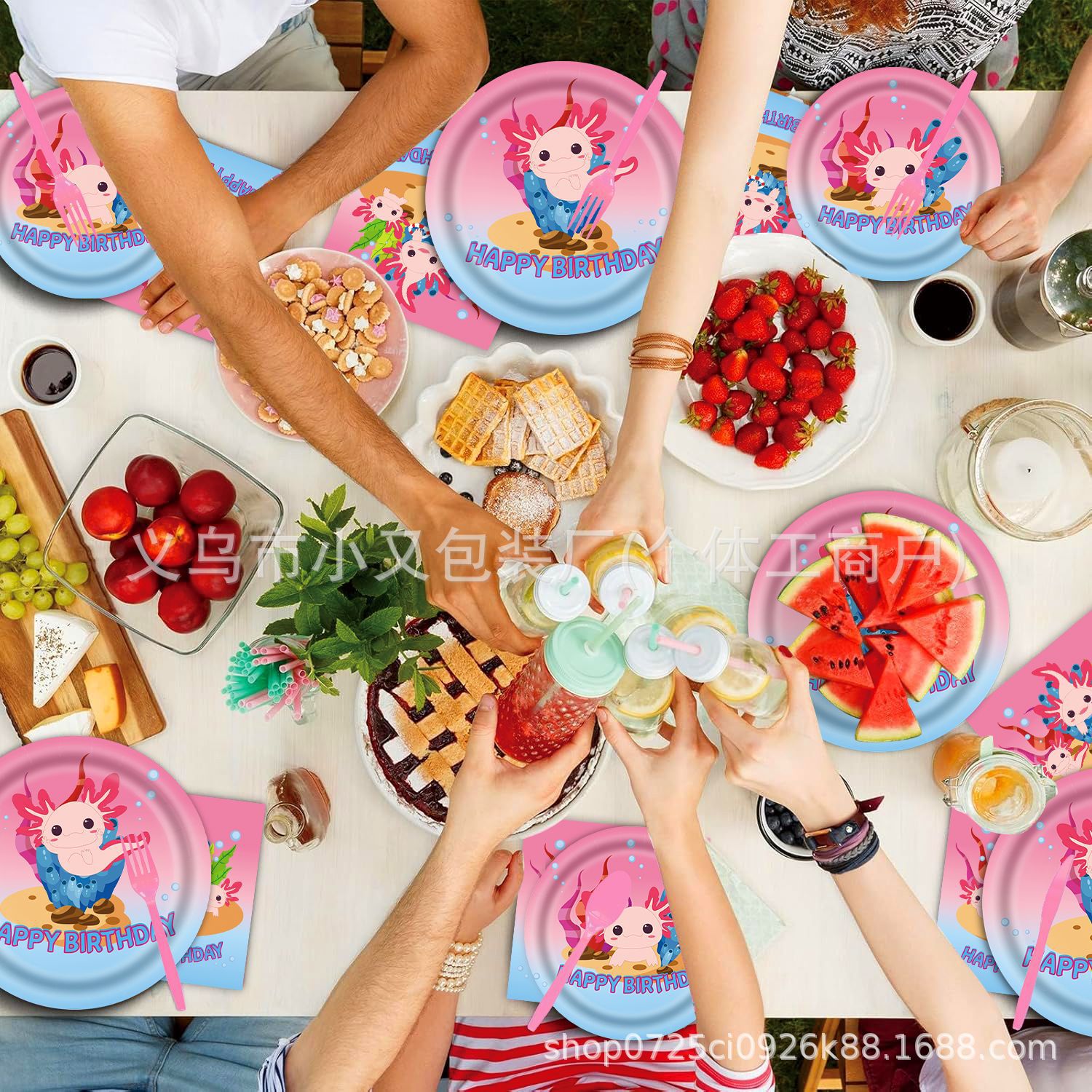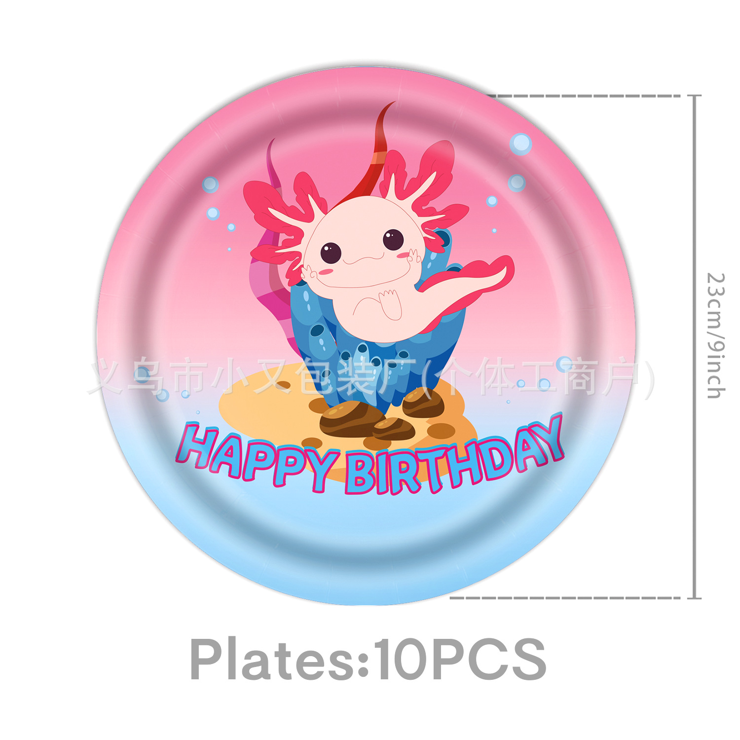 국경 간 새로운 만화 도롱뇽 테마 어린이 생일 파티 식기 종이 트레이 종이 컵 깃발 식탁보 풍선 용품스토어 가기