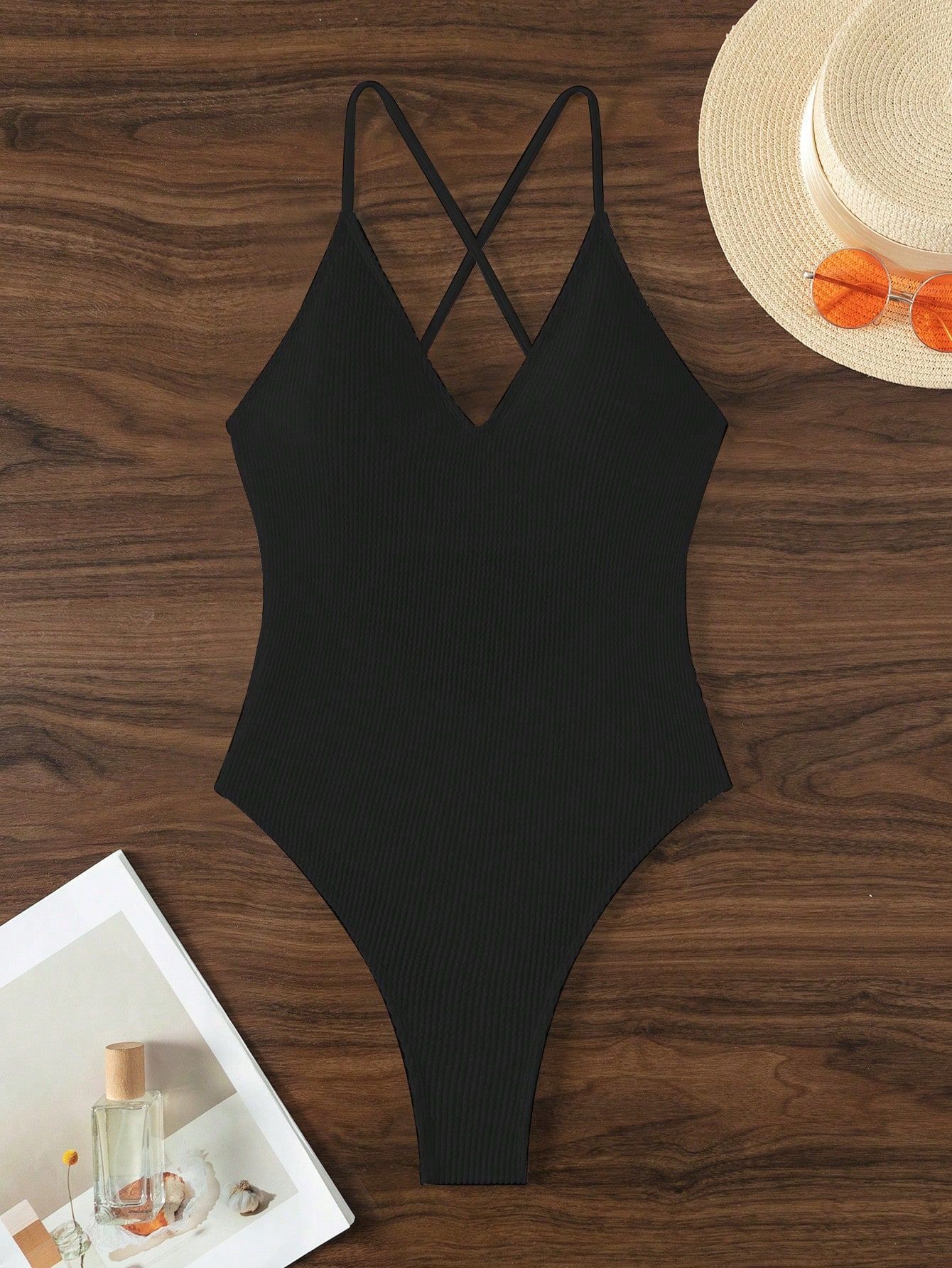 2025 새로운 유럽과 미국의 대외 무역 원피스 수영복 섹시한 꽉 단색 백리스 레이스 업 수영복 여성 재고 있음스토어 가기