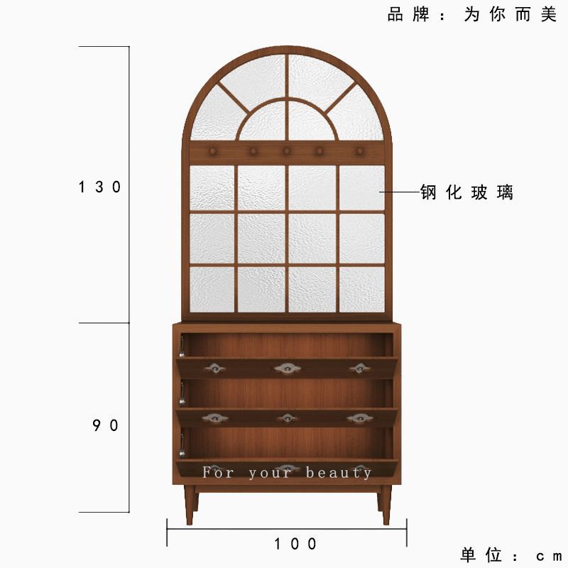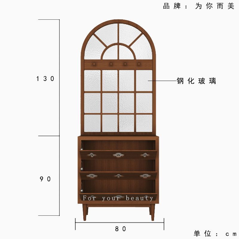 프랑스 복고풍 단단한 나무 물결 무늬 유리 입구 문 스크린 파티션 거실 신발 캐비닛 현관 캐비닛 미국 가정용 차단