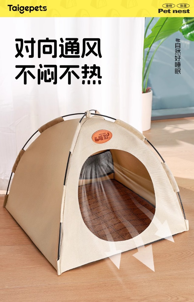 여름 애완 동물 둥지 분리 가능하고 빨 수있는 반 폐쇄 텐트 고양이 둥지 둥지 접이식 통기성 애완 동물 매트 여름 매트