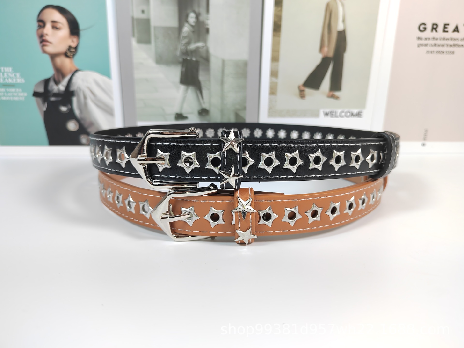 여자 스타 풀 홀 벨트 레이디 데님 중공 패션 얇은 벨트 펀치 프리 핀 버클 벨트 여성용 벨트스토어 가기