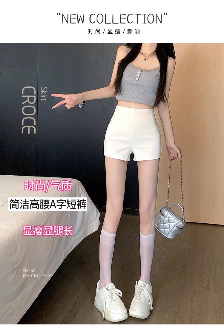 얇은 가을 하의 핫팬츠, 노출방지 슬리밍 반바지, 여성용 화이트 슈트, 하이웨이스트 A라인 아우터, 안전한 핫걸스토어 가기