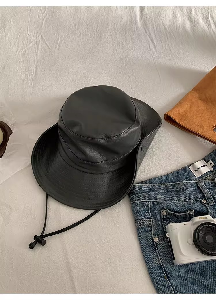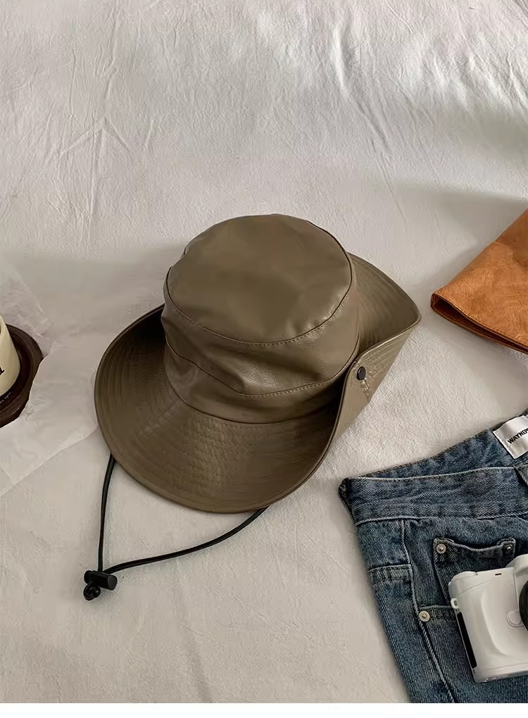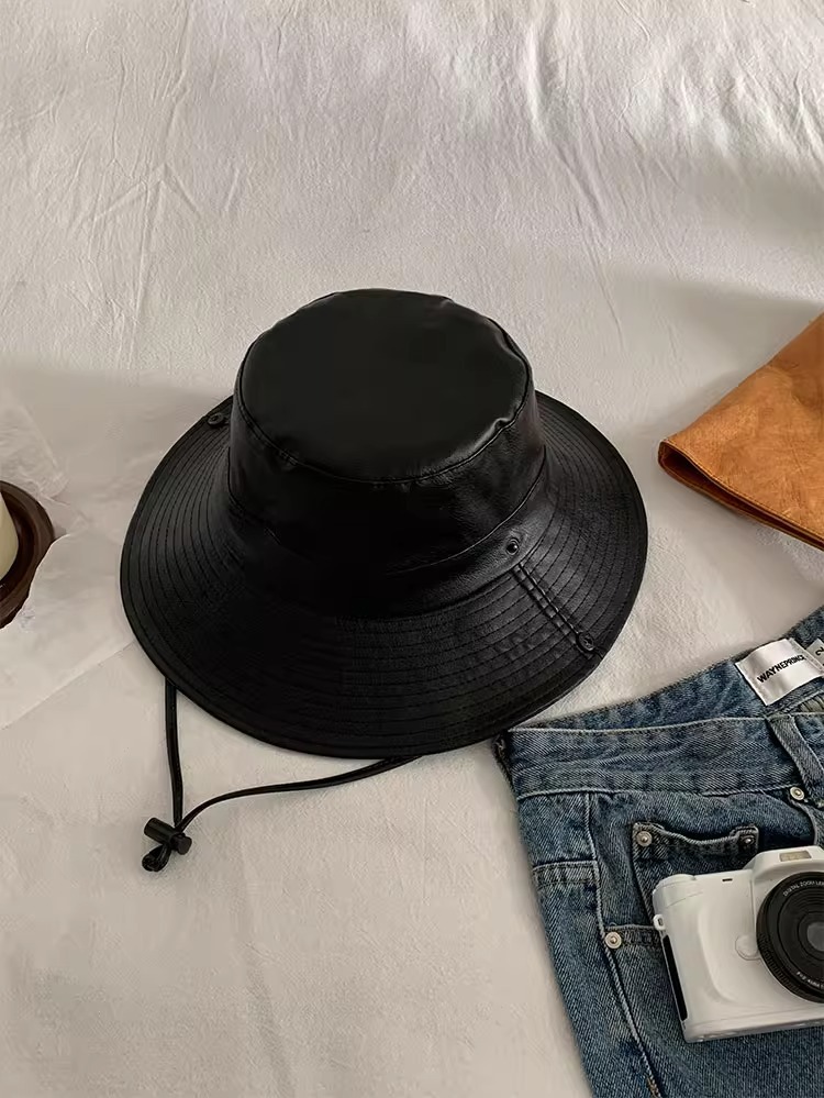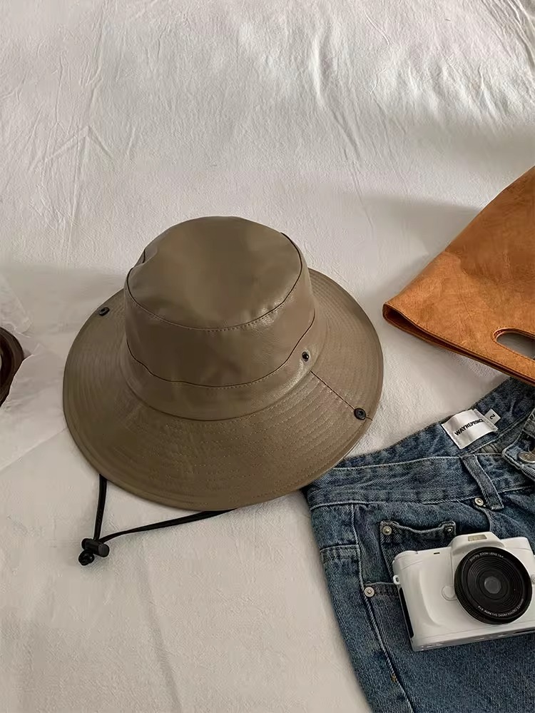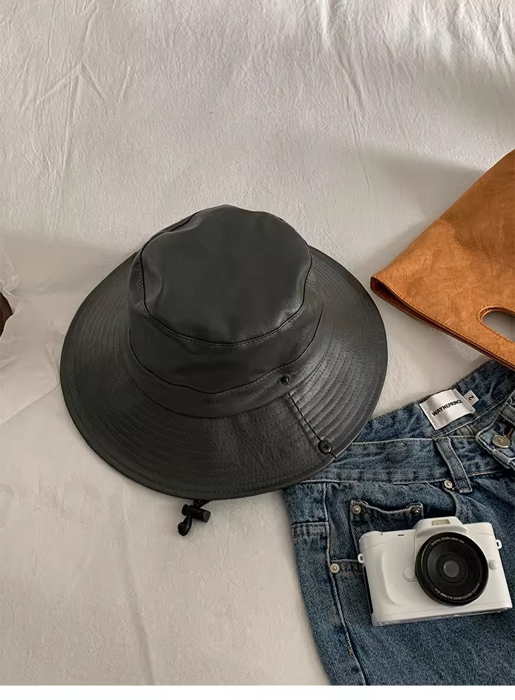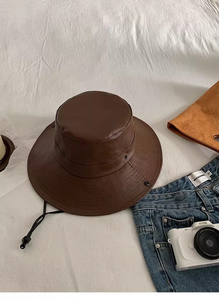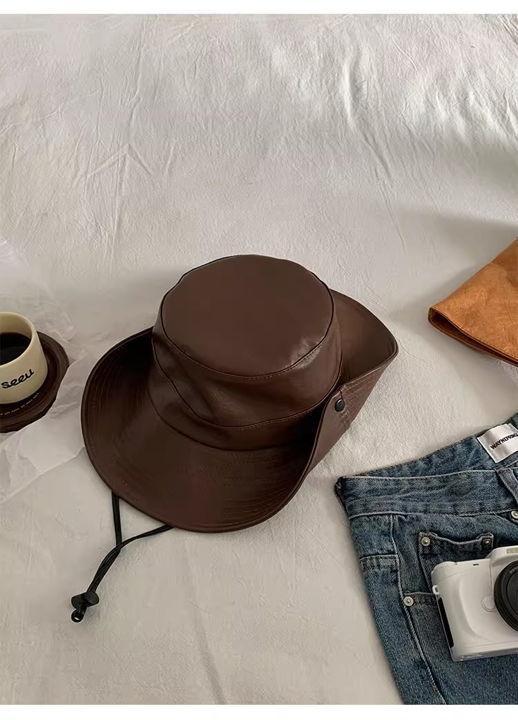 여성용 다용도 PU 가죽 서양 카우보이 모자, 야외 하이킹, 캠핑 및 등산 모자, 챙이 큰 어부 모자