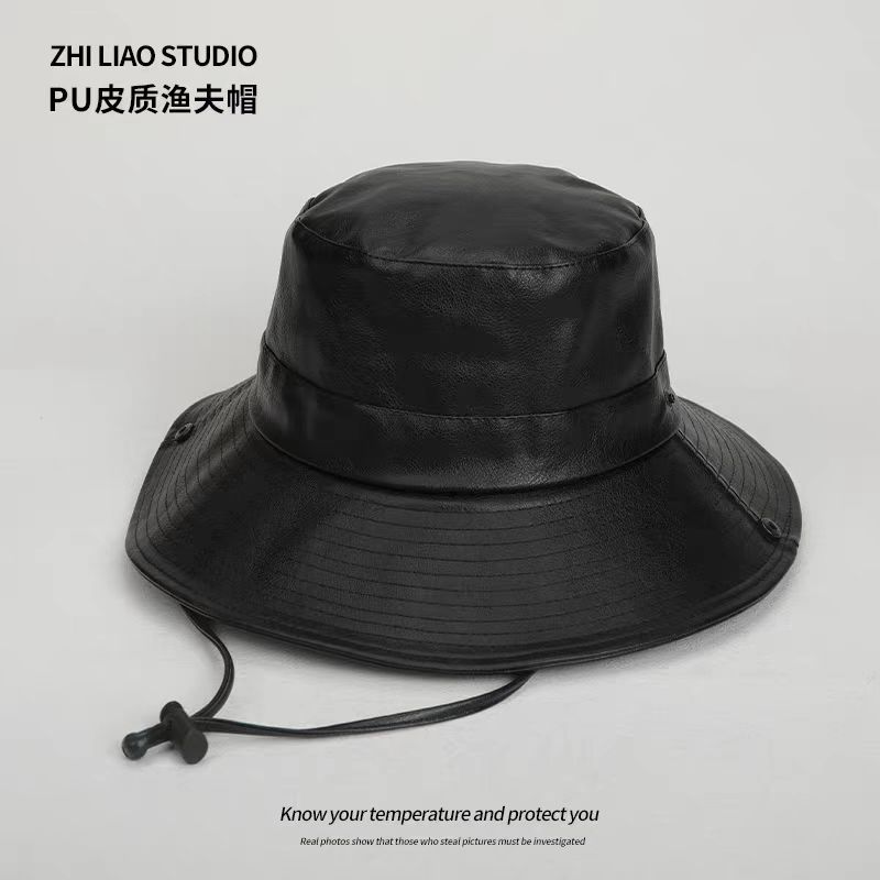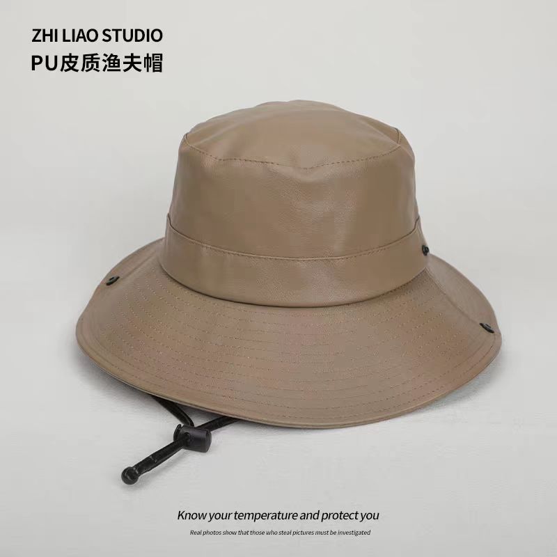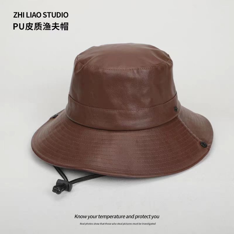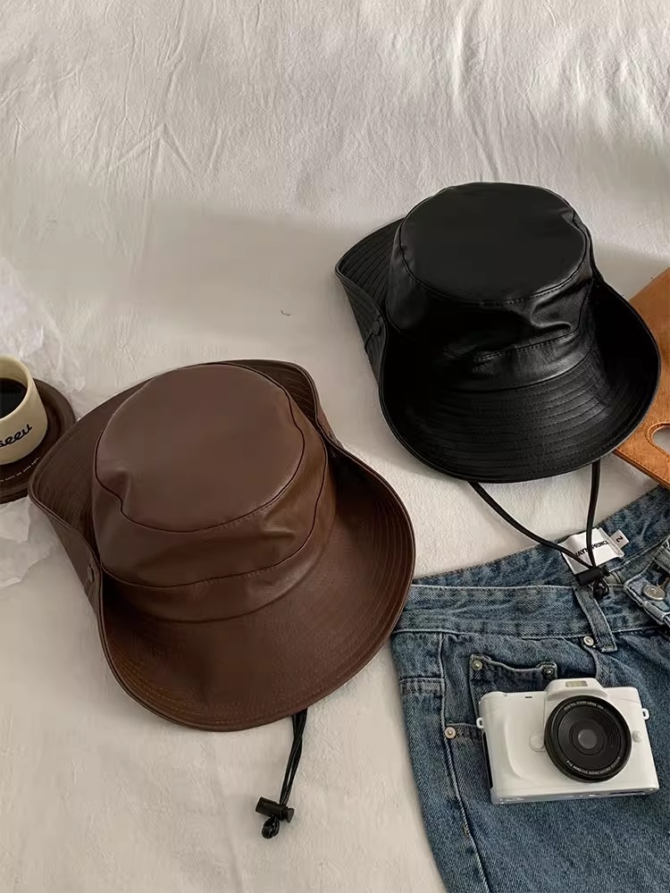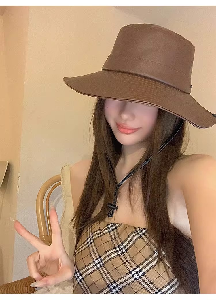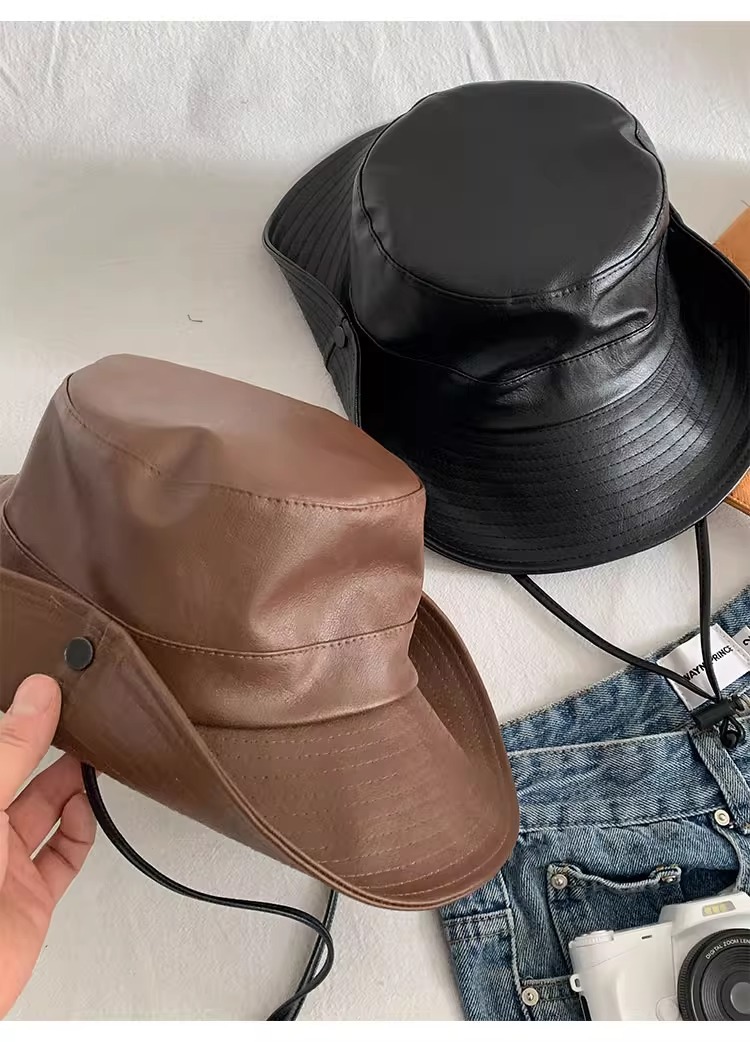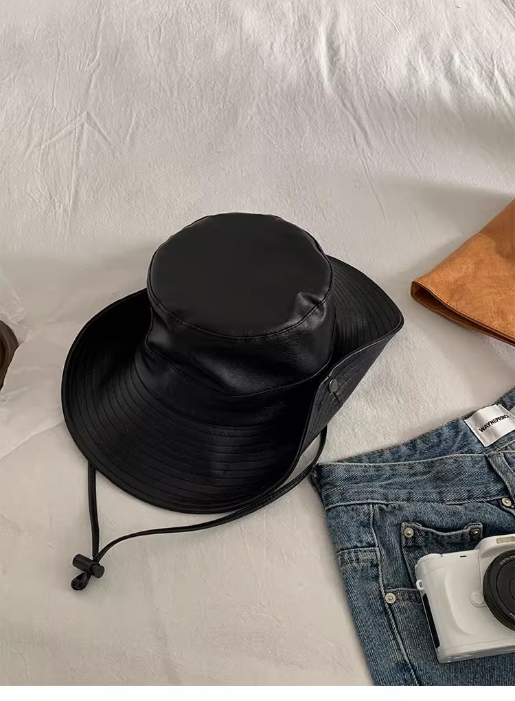 여성용 다용도 PU 가죽 서양 카우보이 모자, 야외 하이킹, 캠핑 및 등산 모자, 챙이 큰 어부 모자