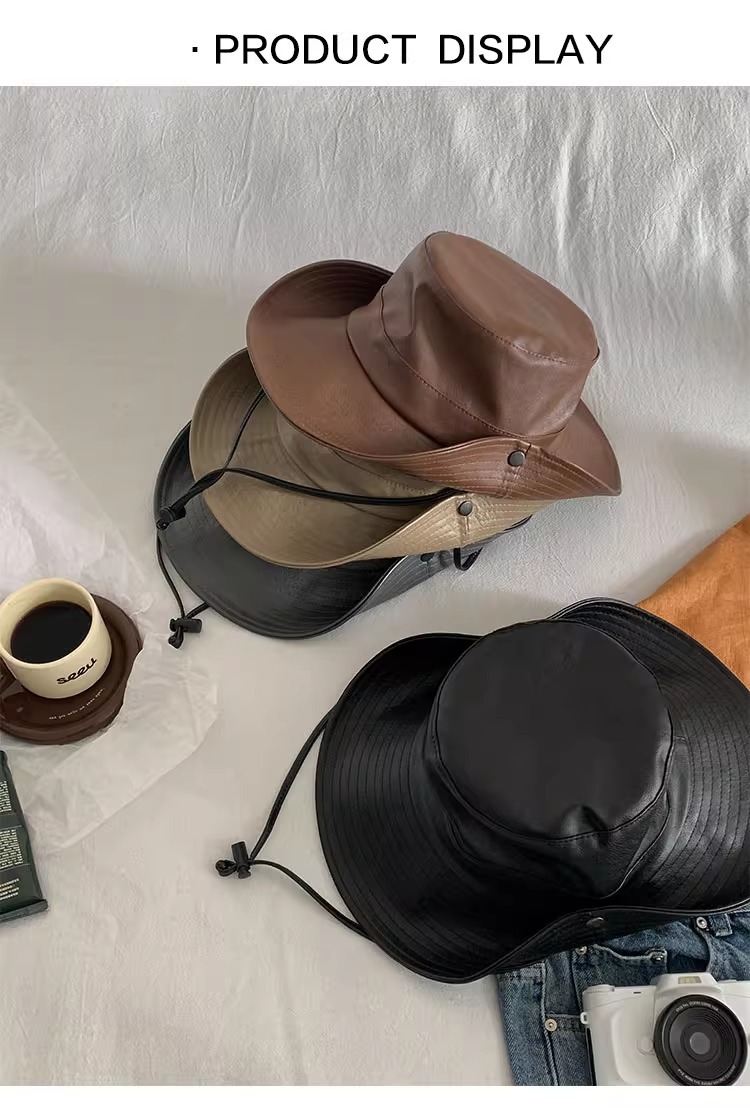 여성용 다용도 PU 가죽 서양 카우보이 모자, 야외 하이킹, 캠핑 및 등산 모자, 챙이 큰 어부 모자스토어 가기