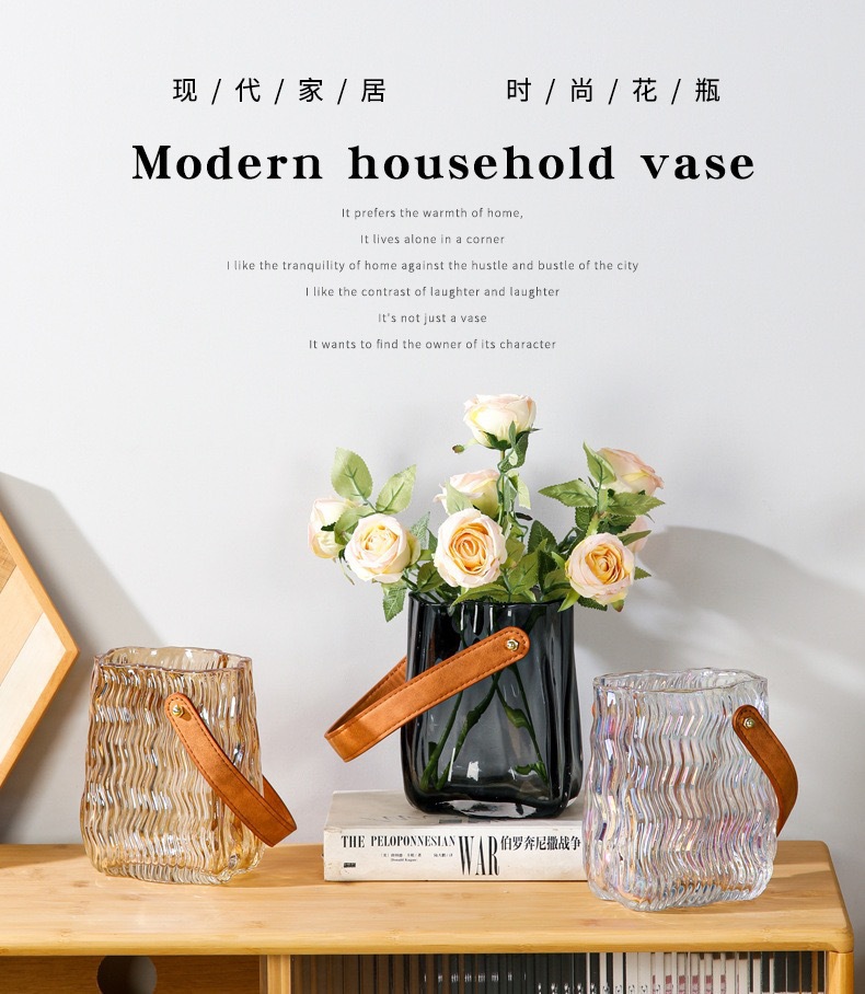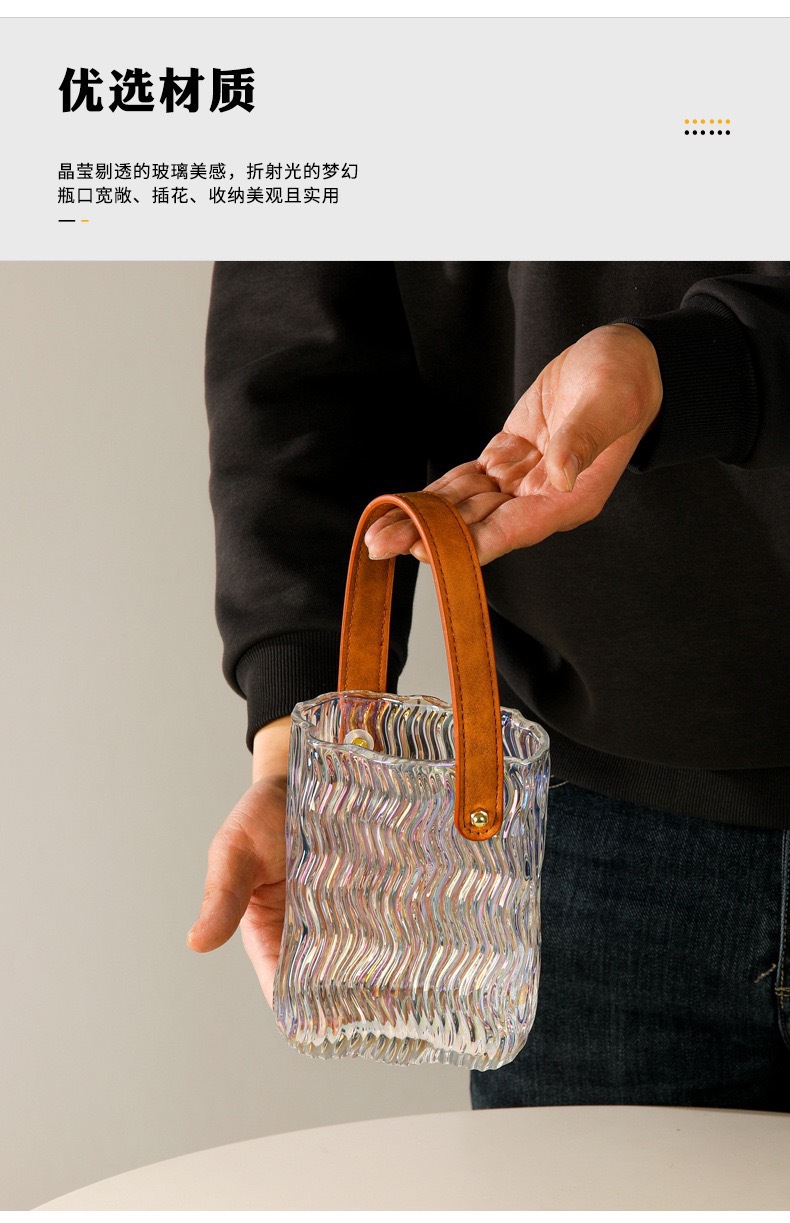 유럽식 휴대용 유리 꽃병, 고급 인터넷 연예인 가방, 꽃, 녹색 식물, 수경병, 거실 입구 장식 장식품스토어 가기