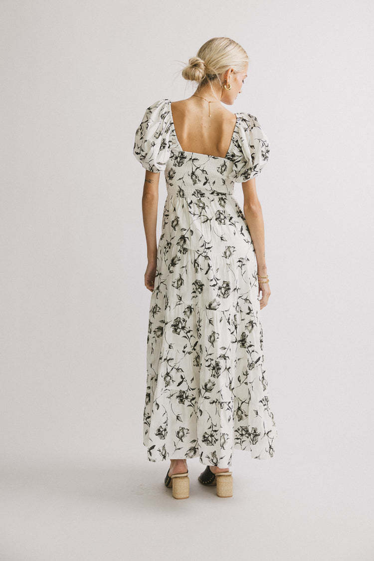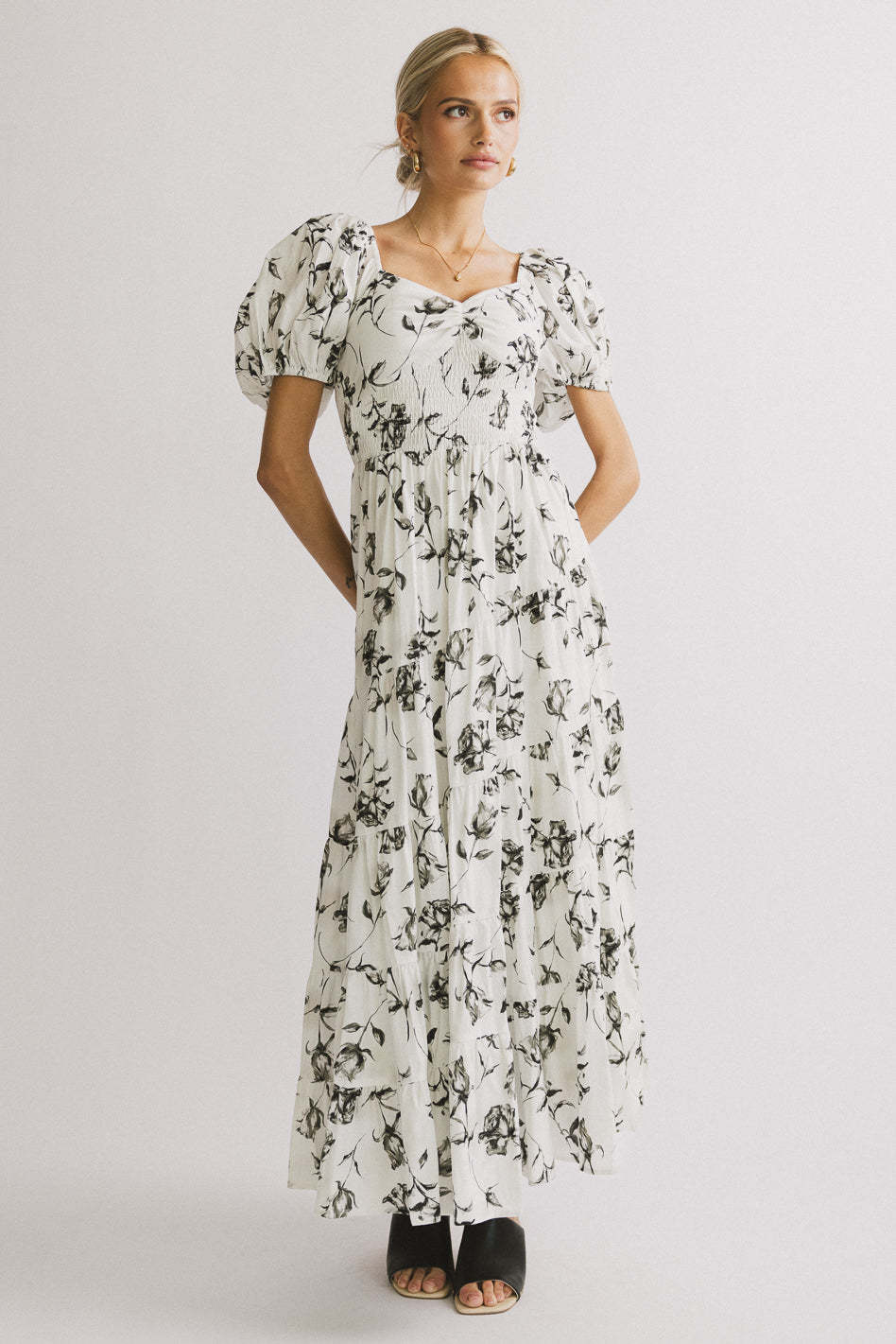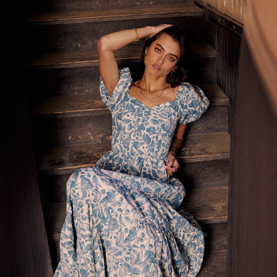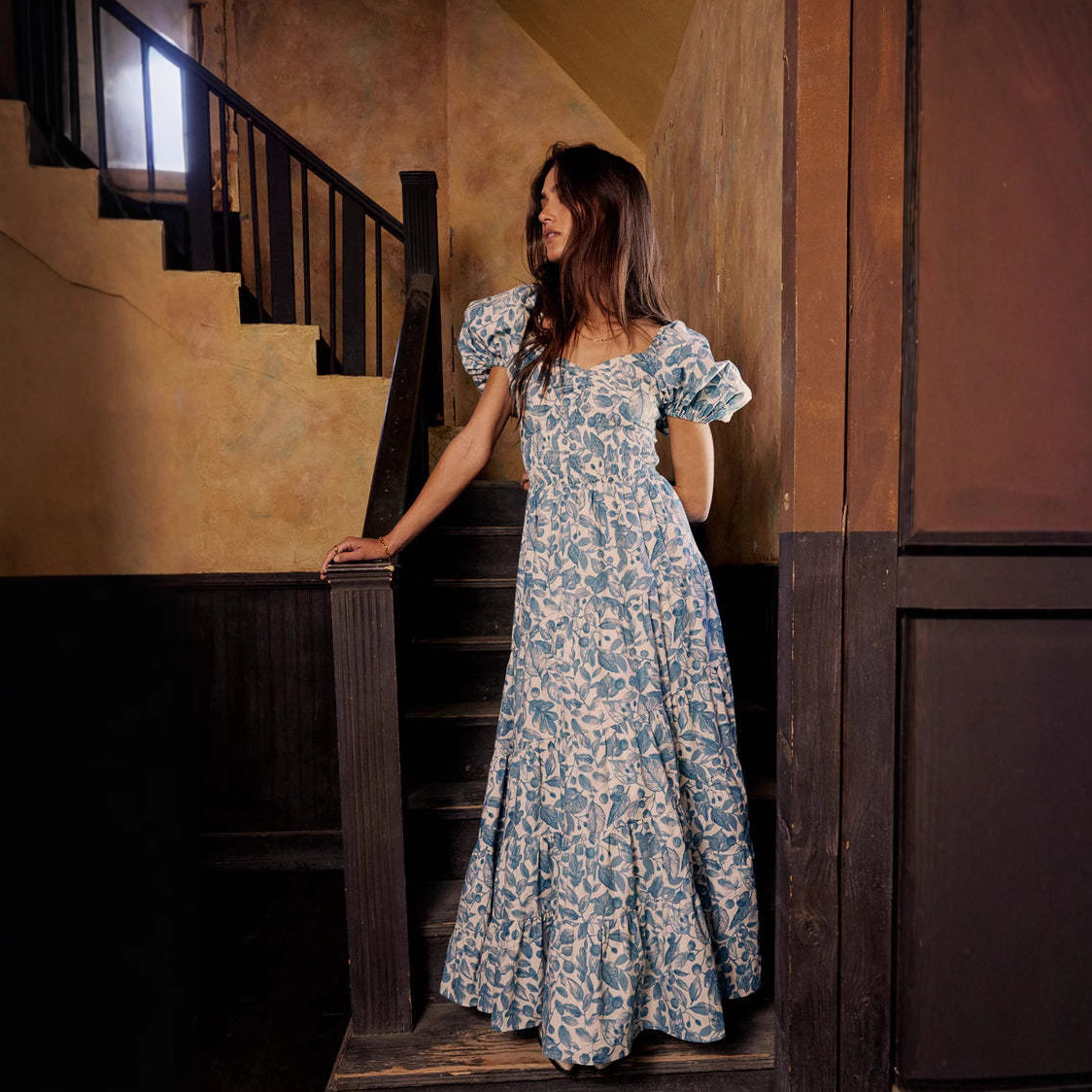 국경 2025 AliExpress 유럽과 미국 여성의 여름 새로운 프랑스 퍼프 소매 빈티지 인쇄 스티칭 원피스