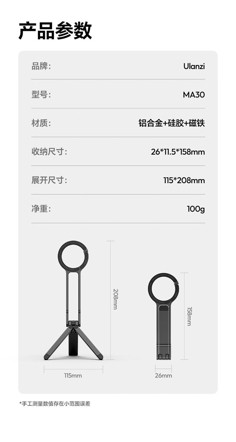 울란지 MA88 MA60 포켓 카라비너 휴대폰 사진 삼각대 양면 자석 셀카봉
