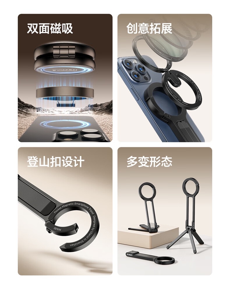• 【인기 폭발】【카본 블랙】MA30 등산용 고리 휴대폰 촬영 삼각대