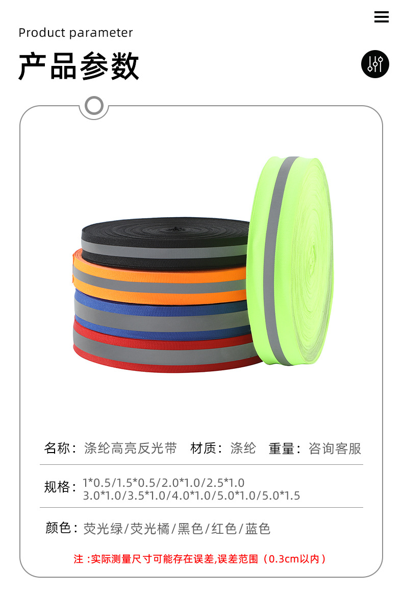 • 1.5*0.5 형광 녹색 폴리에스테르 반사 테이프