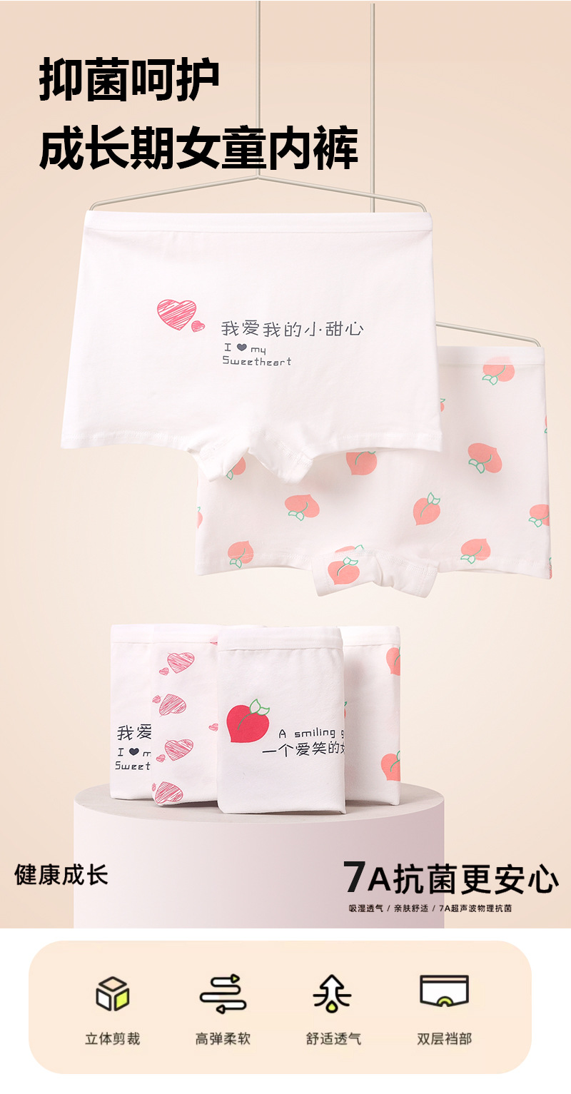 뚱뚱한 소녀 속옷 중간 허리 통기성 발달 기간 사각형 반바지 중학생 만화 노출 방지 순수 코튼 사각형 팬티스토어 가기