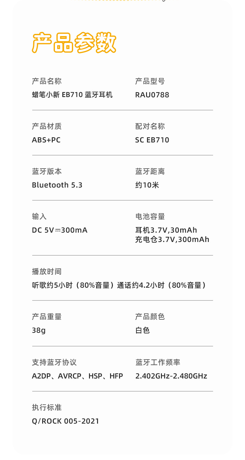 크레용 신짱 공동 브랜드 EB710 블루투스 헤드셋 세미 인 이어 미니 스포츠 게임 음악 스테레오 헤드셋