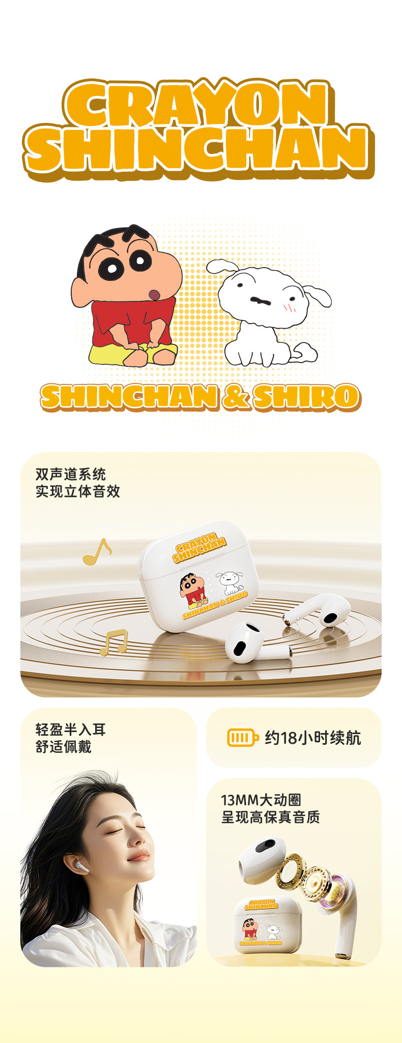 • [화이트] 크레용신짱 블루투스 헤드셋