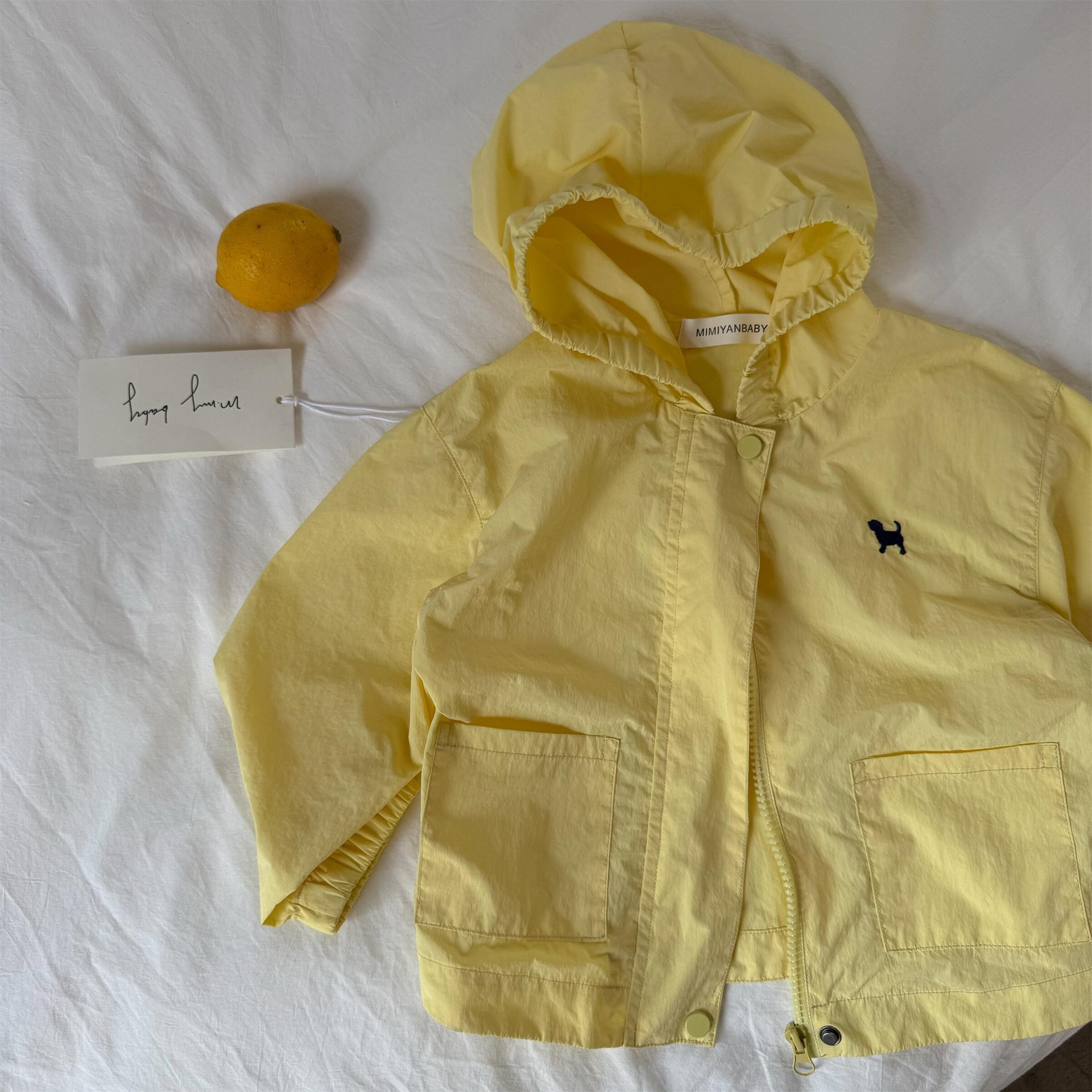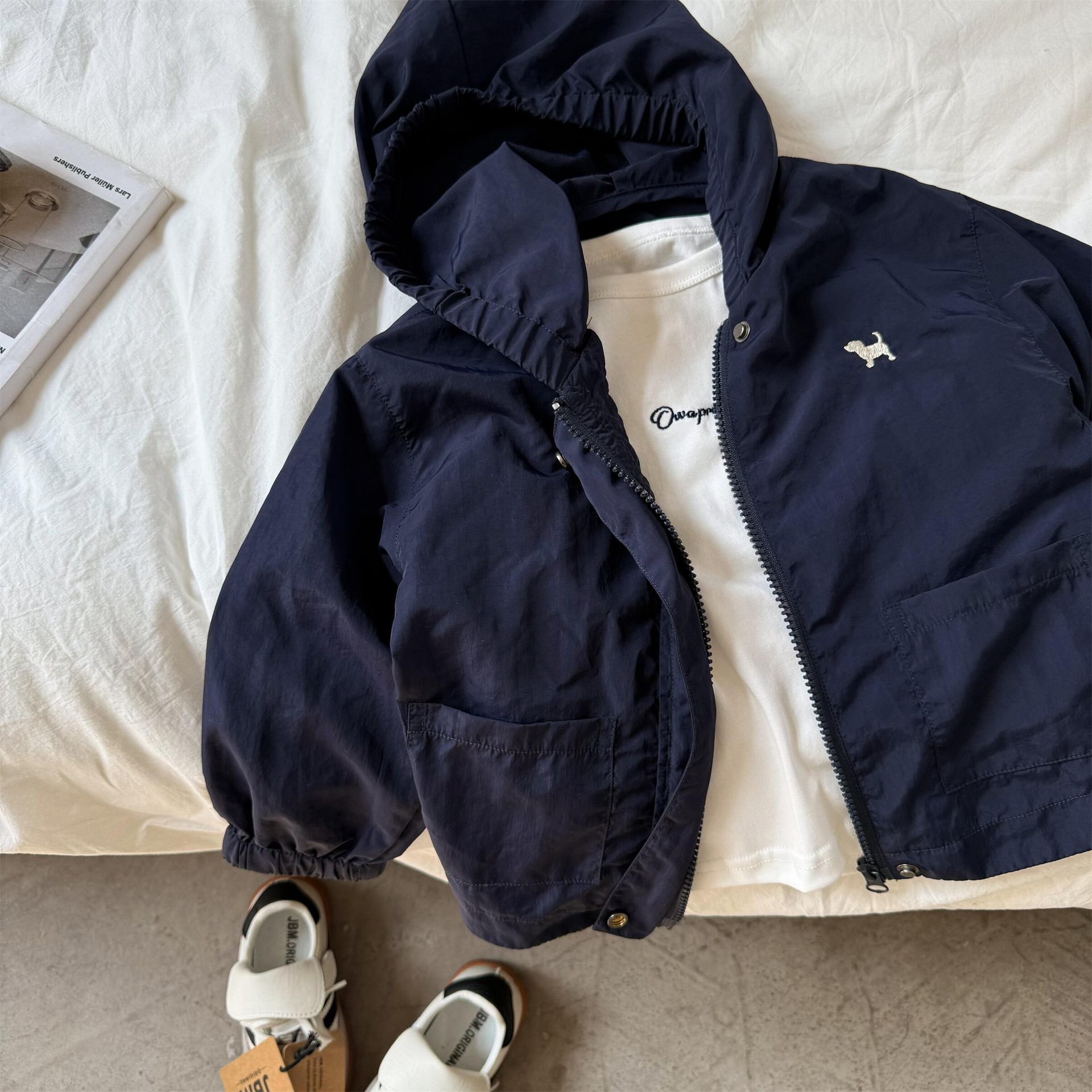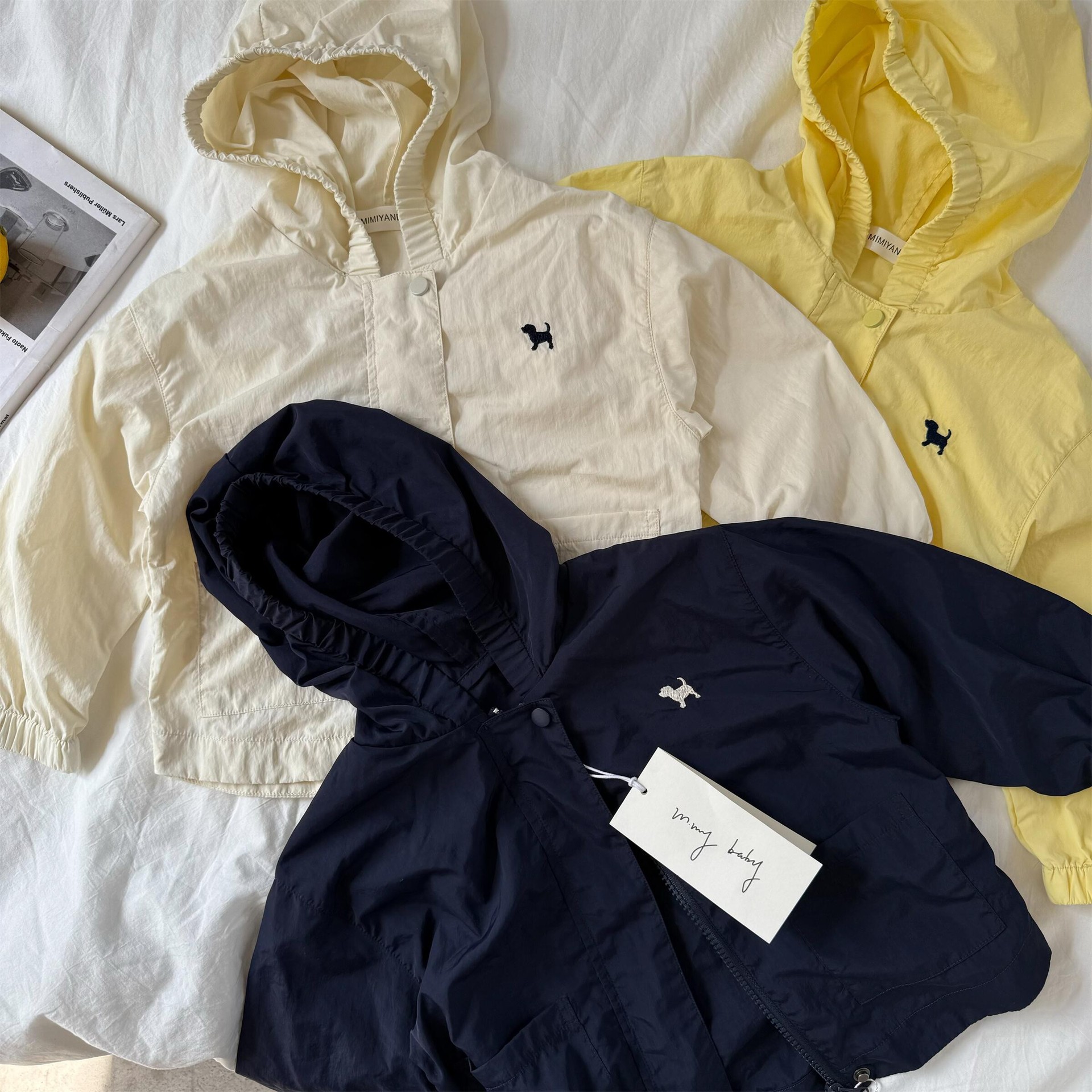 Chen Ma Children's Coat 2025 봄과 여름 소년과 소녀 일본 블루 도그 수 놓은 선 스크린 아기의 서양식 후드 탑