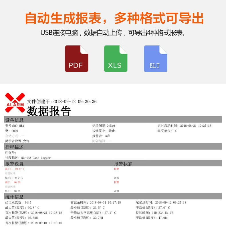 Jingchuang elitech 온도 레코더 GSP 콜드 체인 약국 USB 자동 연속 습식 온도계 RC-4 버저